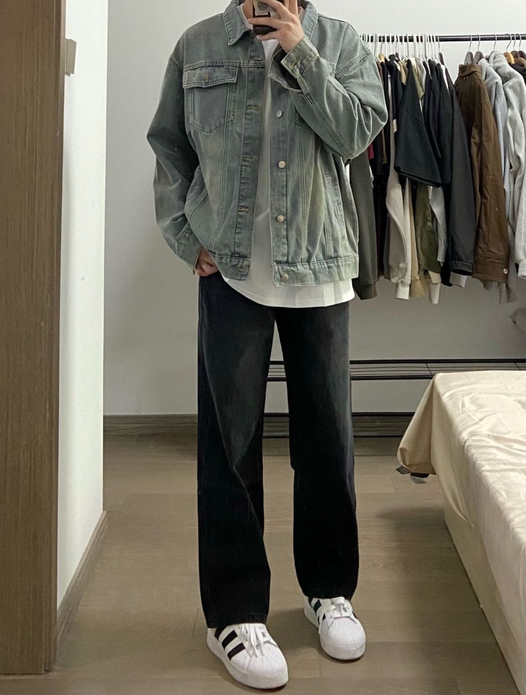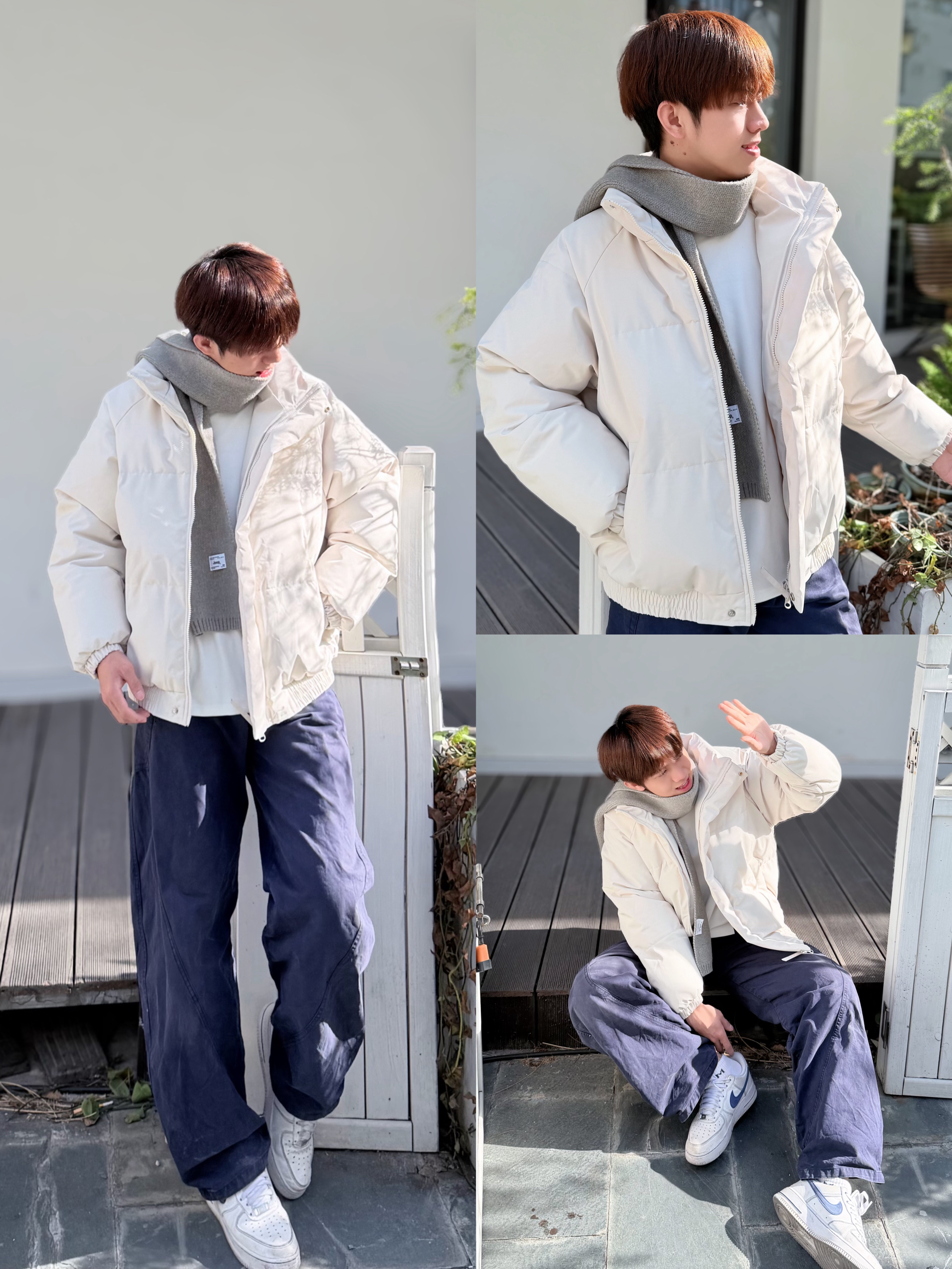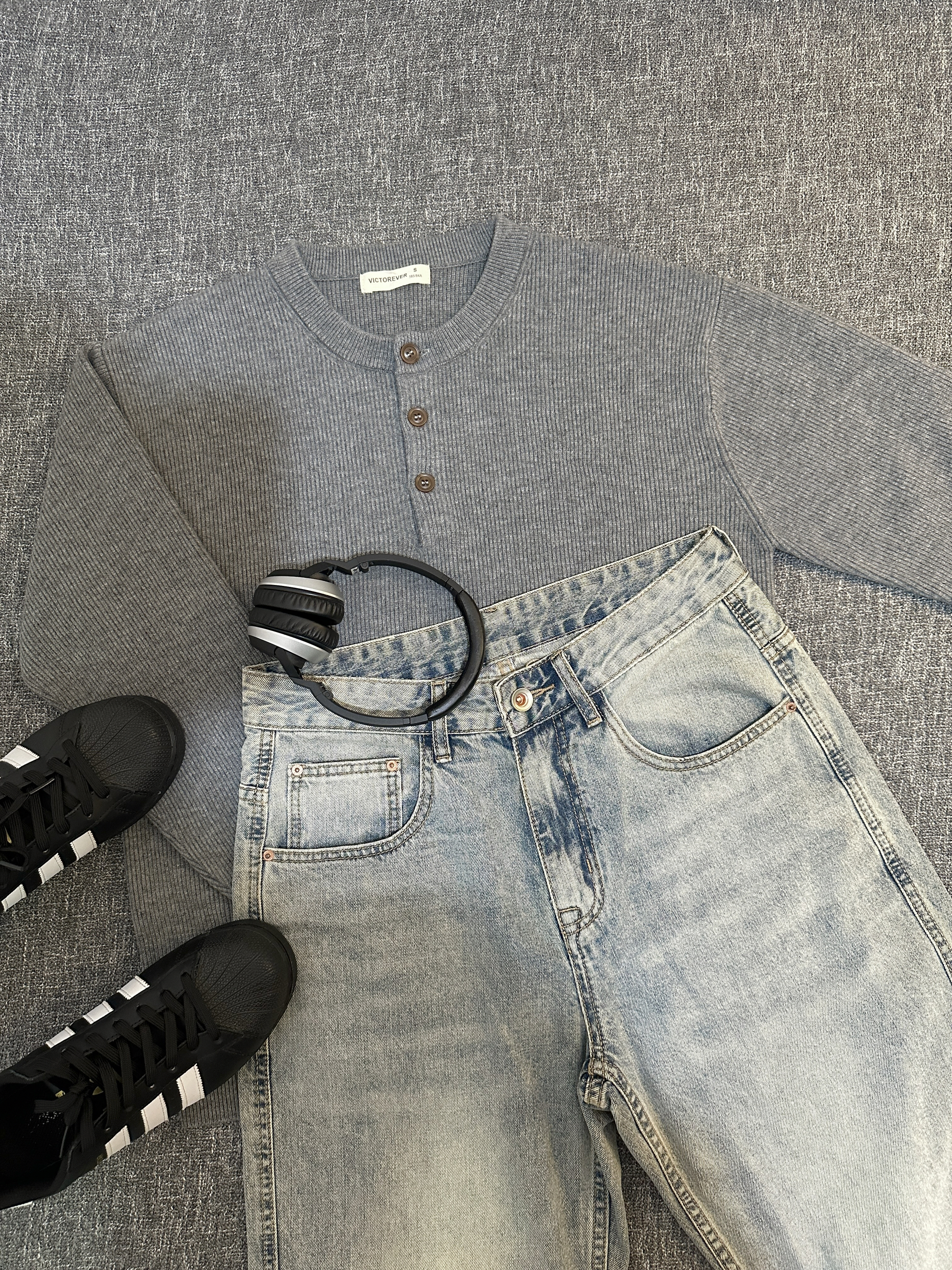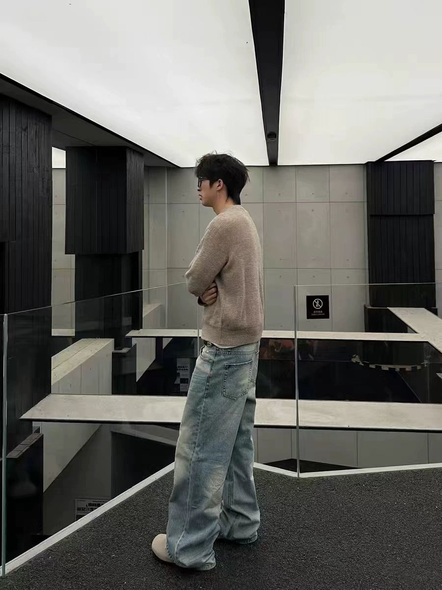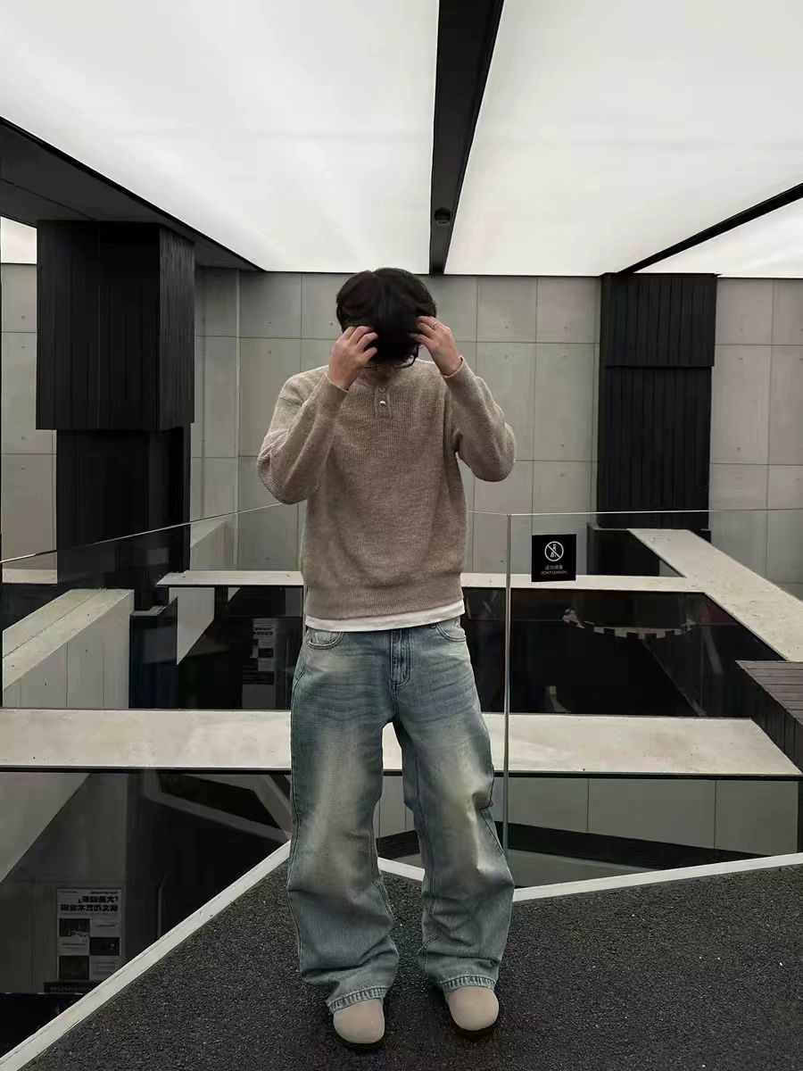 浅卡其亨利领毛衣+浅蓝做旧阔腿牛仔裤=秋日氛围感天花板!毛衣选了微宽松版型,亨利领比普通圆领更有设计感,单穿内搭都绝绝子~裤子是高腰拖地款,裤脚微喇修饰腿型,做旧水洗工艺自带复古滤镜,搭配毛衣瞬间韩剧男主即视感! 米白德比鞋呼应毛衣色系,整体低饱和穿搭高级又舒适~配饰只戴了细框眼镜和银戒指,简约中带点斯文败类感谁懂! 通勤上学/约会拍照都适配,轻松get松弛感男友风!秋冬就要穿得软软糯糯~