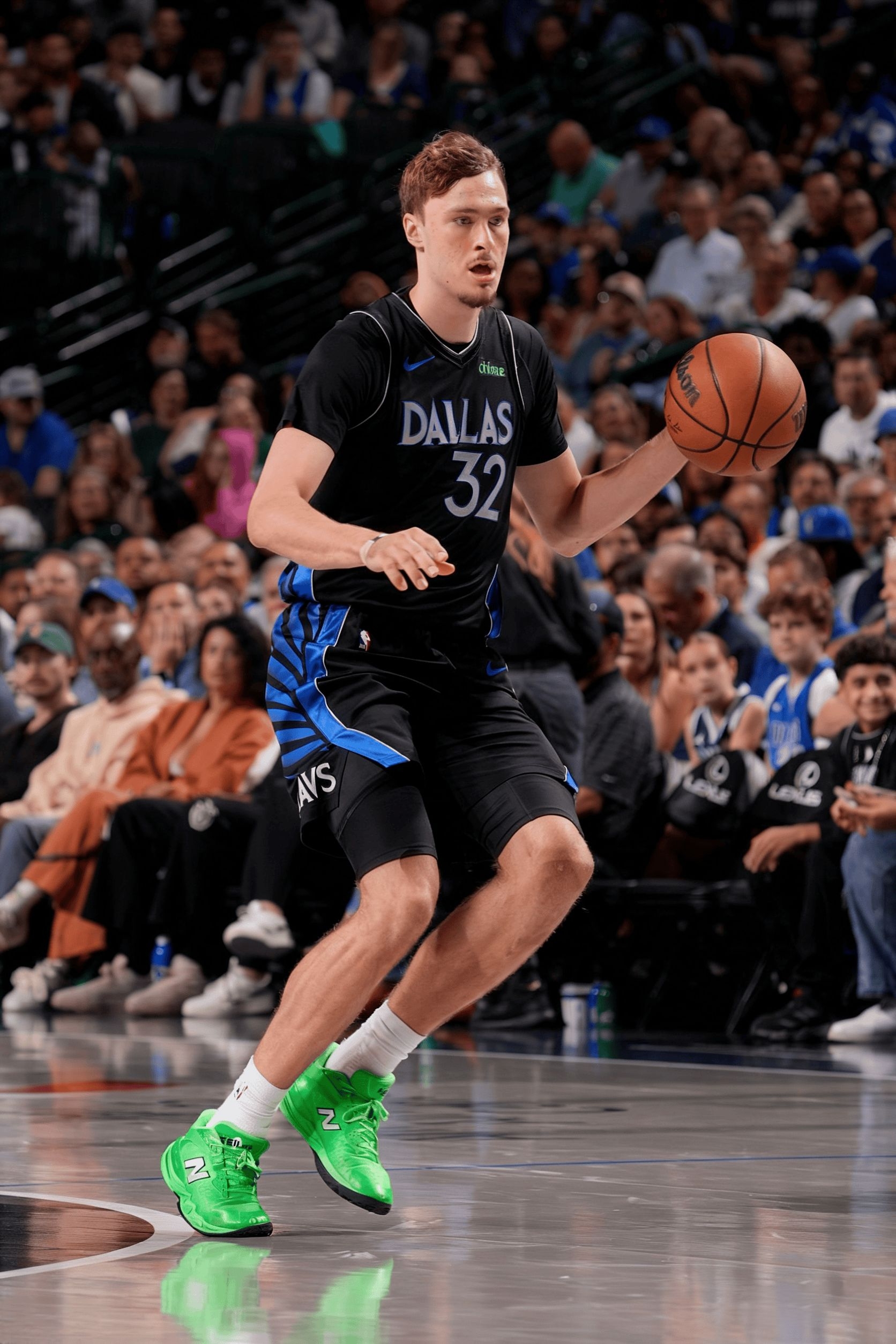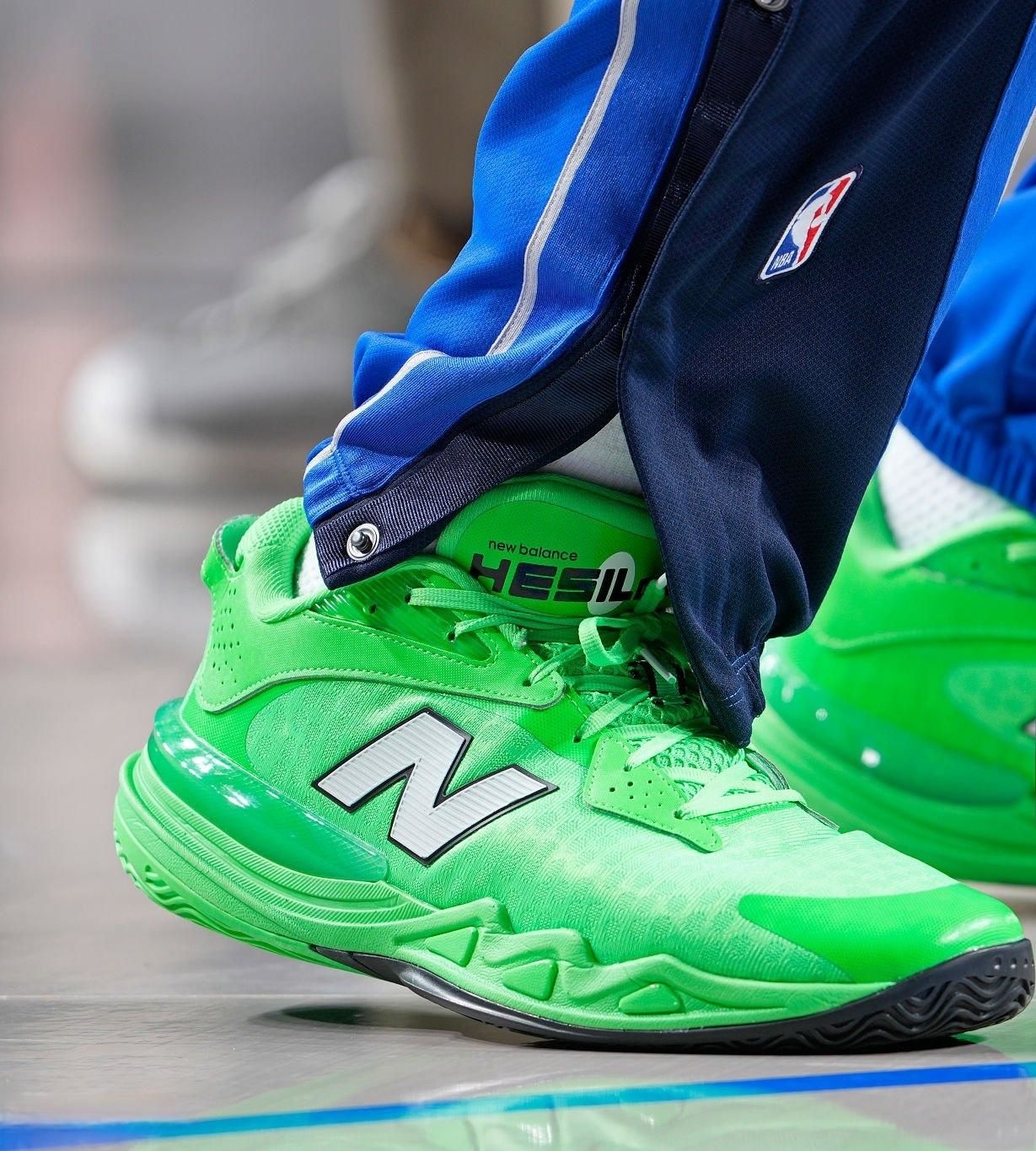 最近独行侠的库珀·弗拉格真是杀疯了,不光球技惊艳,脚下这双New Balance Hesi Low v2也跟着刷足了存在感。正好借着这些高清赛场图,咱们从NBA实战的角度,聊聊这双鞋的直观感受。 1. 性能与实战反馈: 从特写图能看出,鞋面材质不是那种光滑的廉价漆皮,应该是有一定韧性的工程网布或者合成革,在需要发力的部位有热熔加固。侧墙那个巨大的“N”字Logo,看着是装饰,实际在弗拉格变向、...