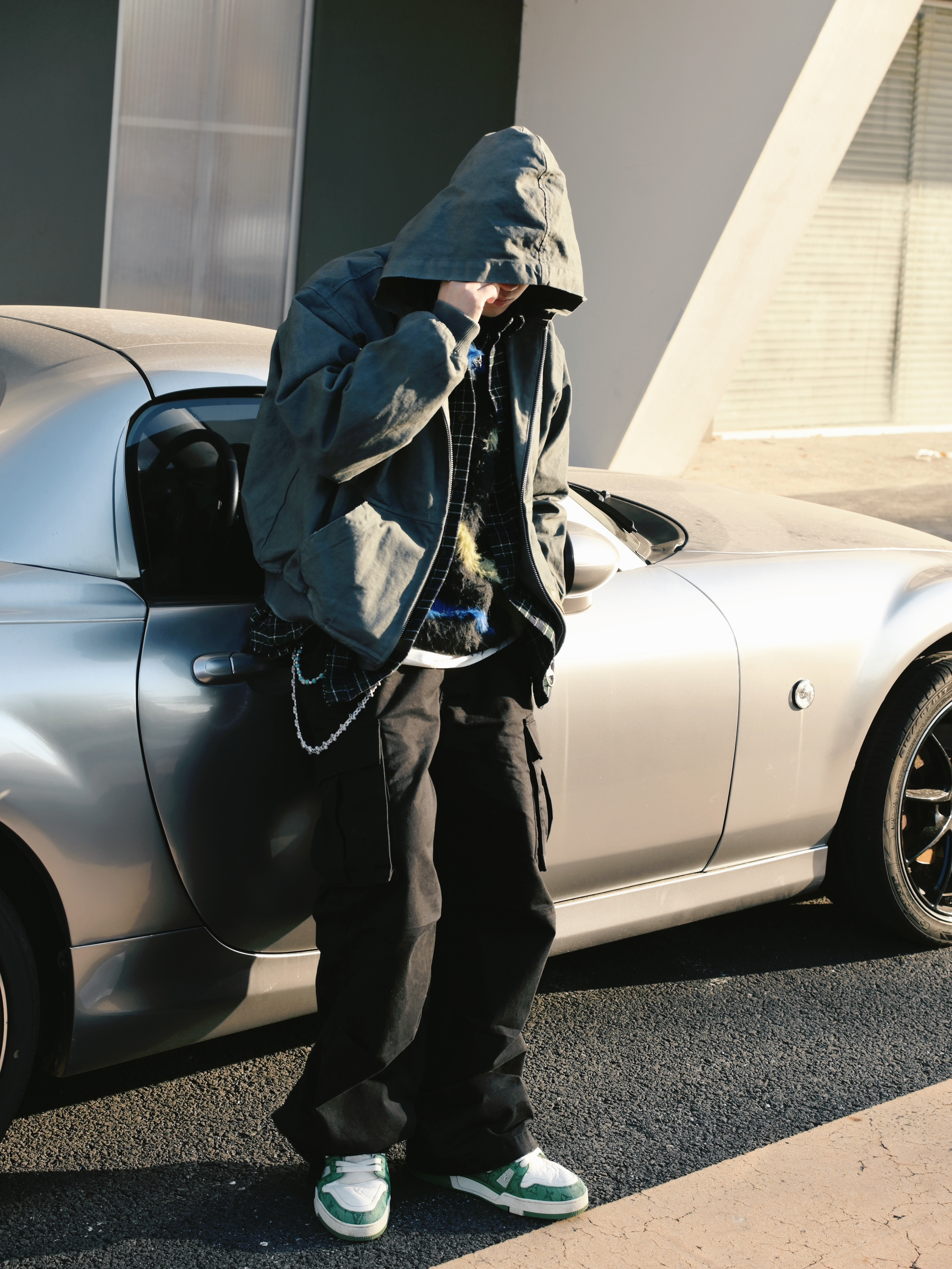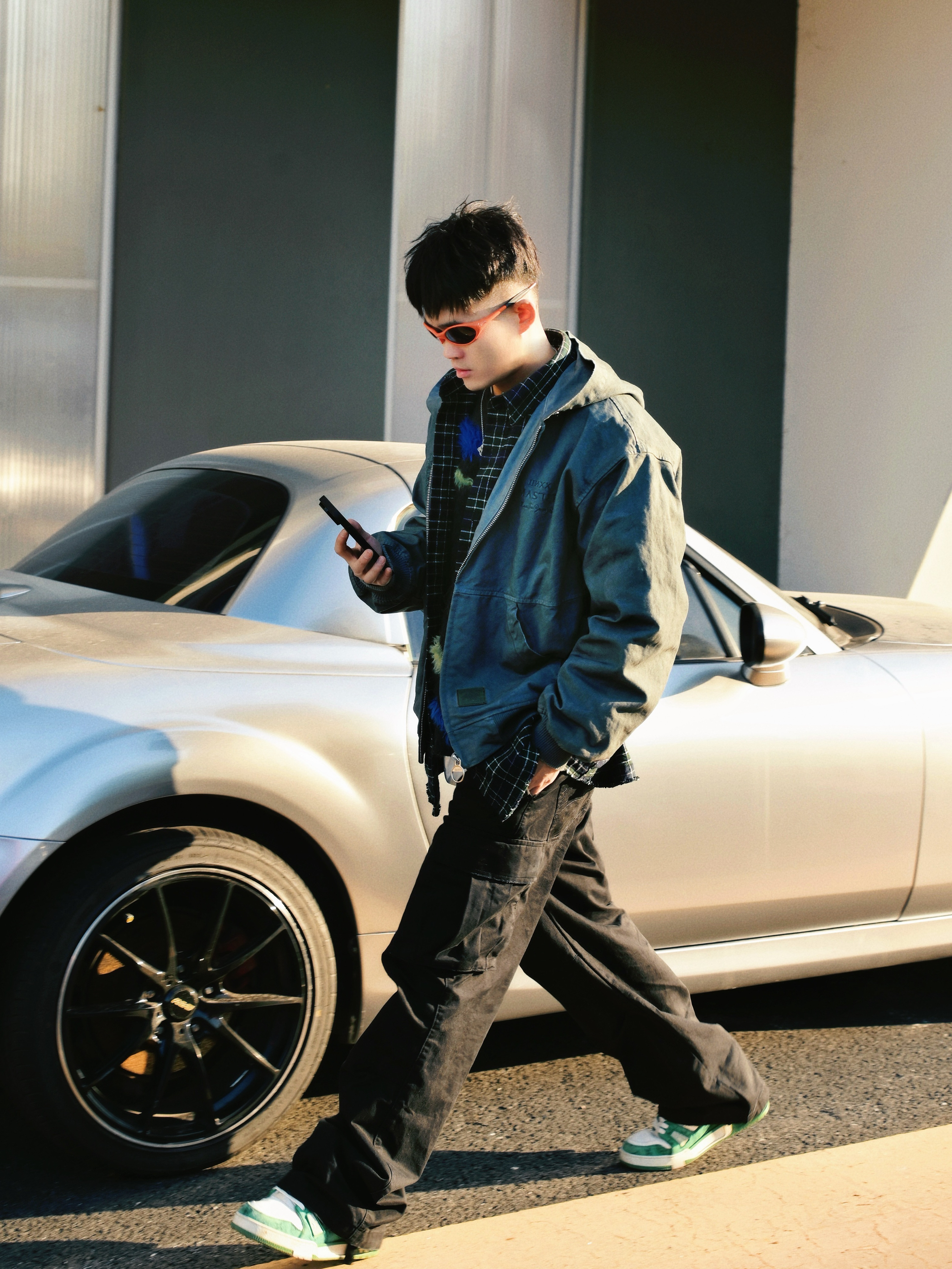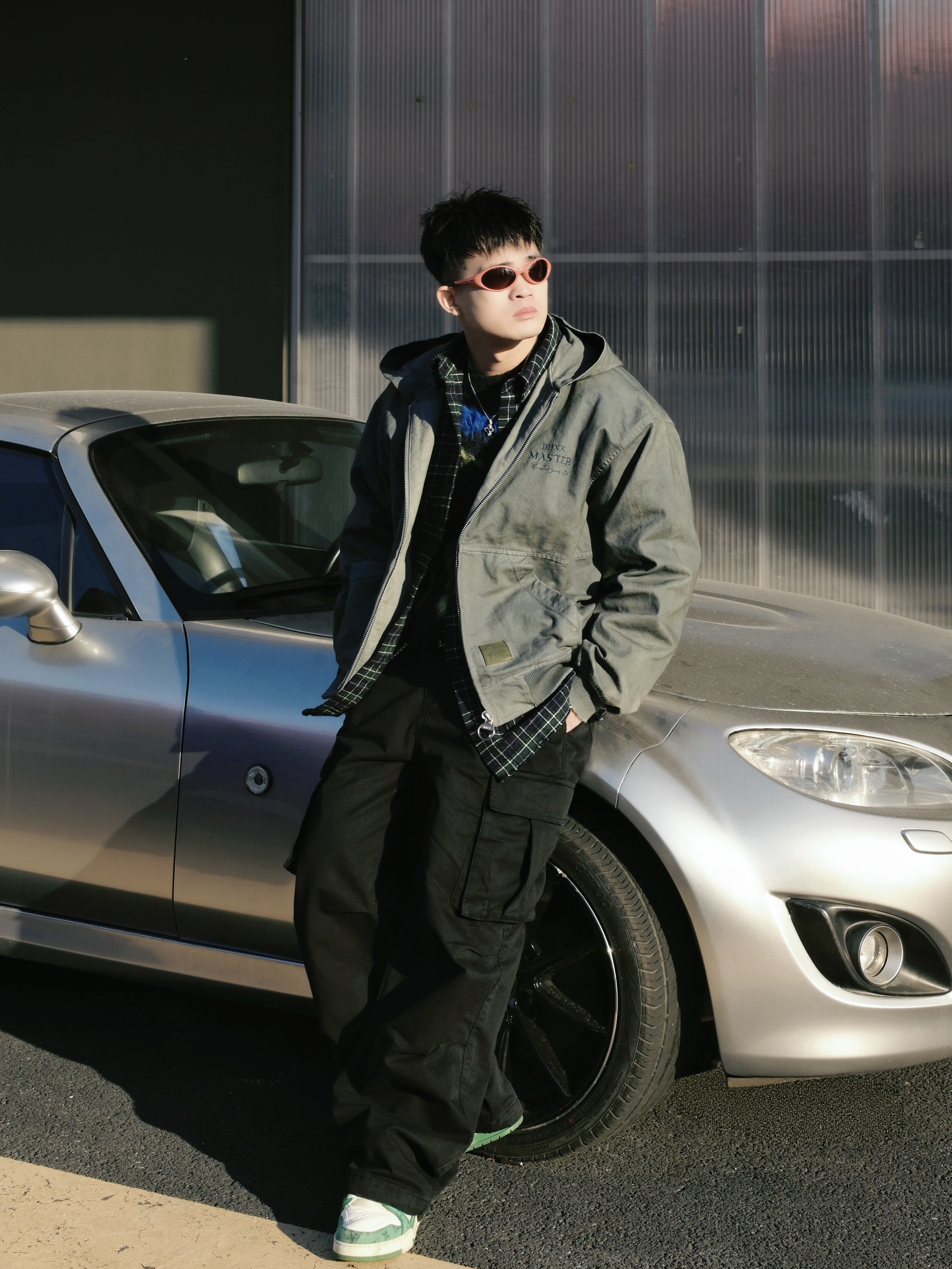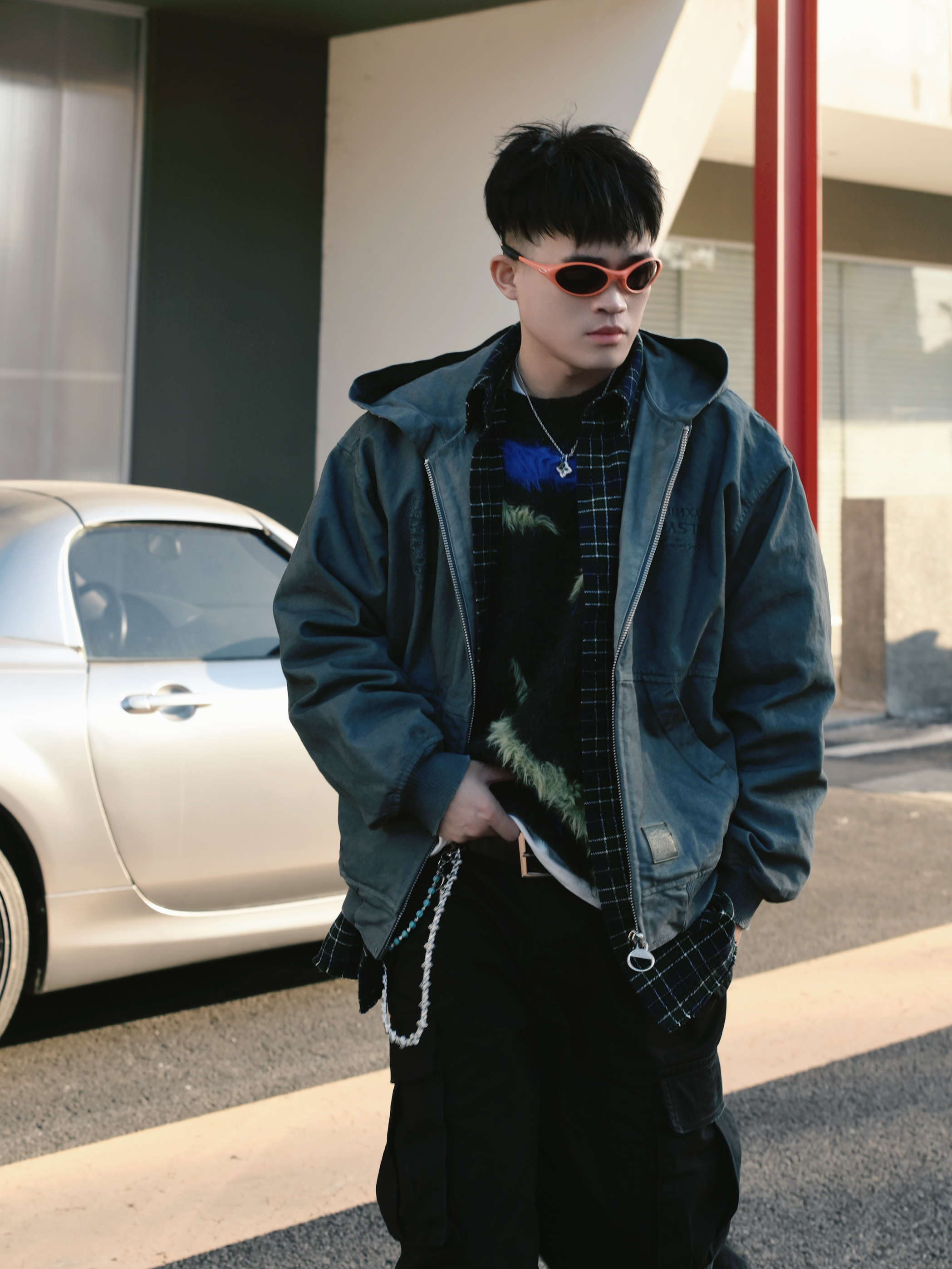 最近降温终于能玩叠穿了! 用衣柜里都有的基础款搭出层次感👇 风格:休闲街头风🧢+一点复古细节 公式解析: ▪️外层:灰色/深蓝连帽外套(挡风又百搭) ▪️中层:格子衬衫+毛衣/卫衣(保暖+露领口层次) ▪️内层:纯色打底T恤(避免杂乱) ▪️下装:黑色工装裤(遮肉显腿直) ▪️配饰:金属链条⛓️+彩色墨镜🕶️(点睛不夸张) ▪️鞋子:绿白配色运动鞋👟(清爽提亮整体) 小Tips: 1. 毛衣选略大...