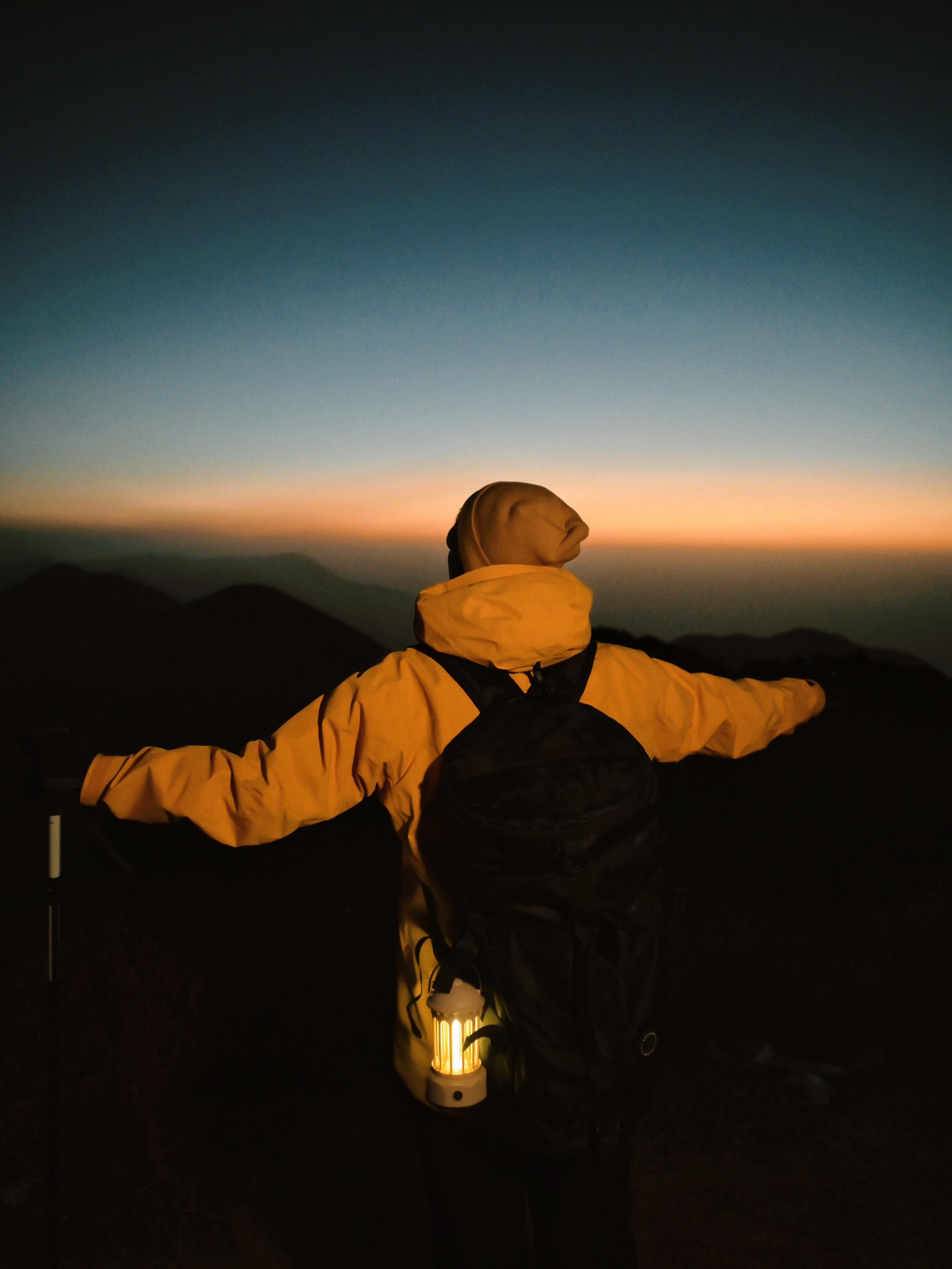 场景:一日徒步|低难度登山|日落前后微凉天气 风格:户外机能风 × 层次感叠穿 关键单品: • 🧥 亮黄色防风冲锋衣(醒目又安全) • 🧶 基础款圆领毛衣(贴身保暖不扎) • 🎒 黑色大容量背包(水/干粮/杂物全收纳) • 🧤 防滑手套 + 登山杖(省力防刮蹭) 体验细节: ► 山顶温差大,毛衣+冲锋衣叠穿刚好抗风,热了脱外套也不尴尬。 ► 亮色外套在树林/黄昏时特别显眼,拍照出片又安全📸 ► ...