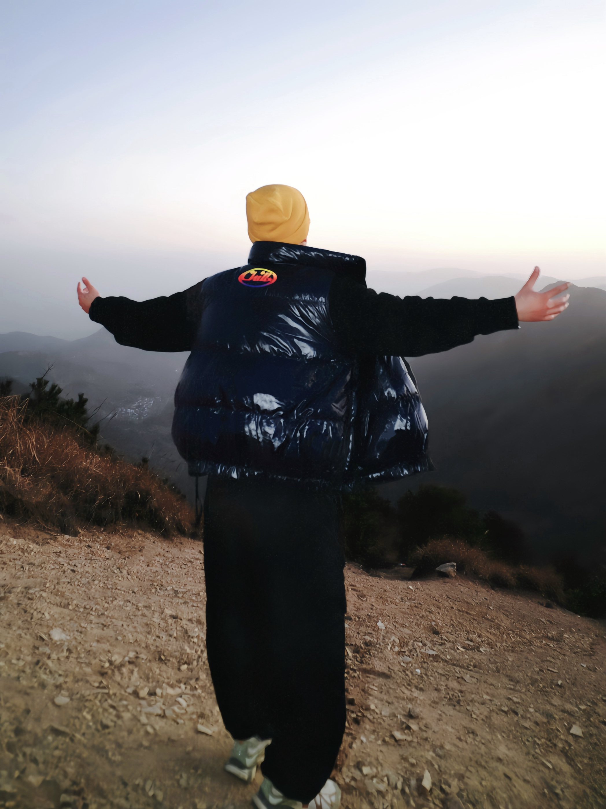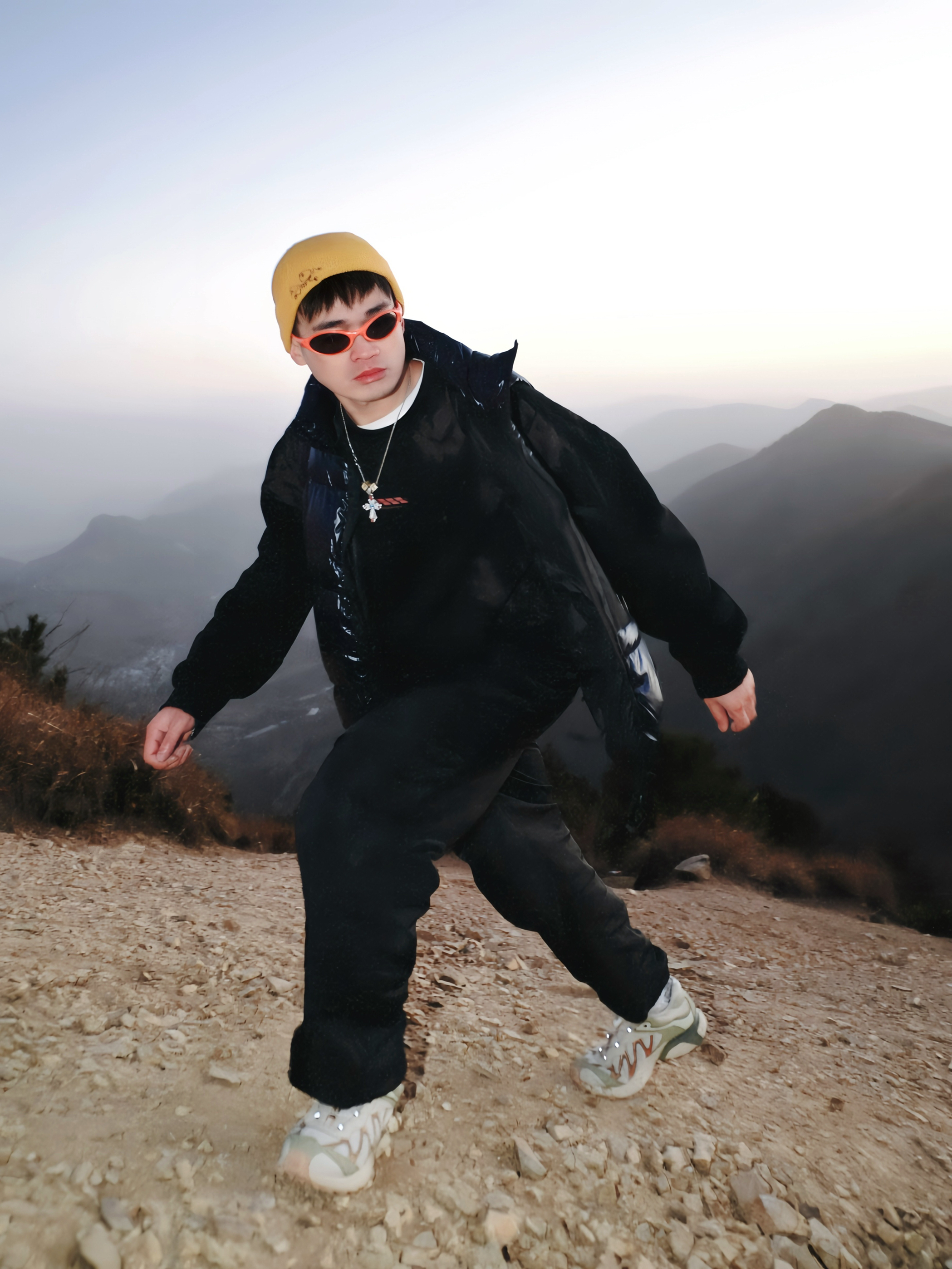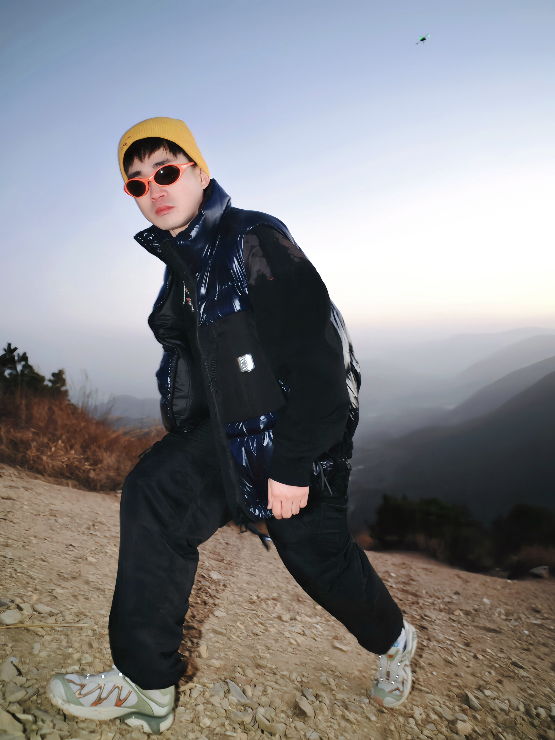 最近发现的宝藏穿法 降温爬山也能又暖又好看 关键是真的无束缚! 🧥穿搭公式: ▫️内搭:黑色高领/卫衣(贴身基础款) ▫️中层:亮面羽绒马甲(选绗缝不臃肿的) ▫️配饰:黄色针织帽+橙框墨镜(点睛之笔) ▫️下装:黑色阔腿裤(里面还能藏秋裤) ▫️鞋子:灰白配色运动鞋(防滑底很重要) 💡体验亮点: → 马甲保核心温度又不束缚手臂活动 → 亮色配饰打破暗沉 拍照很出片 → 三层叠穿适合温差变化 热...