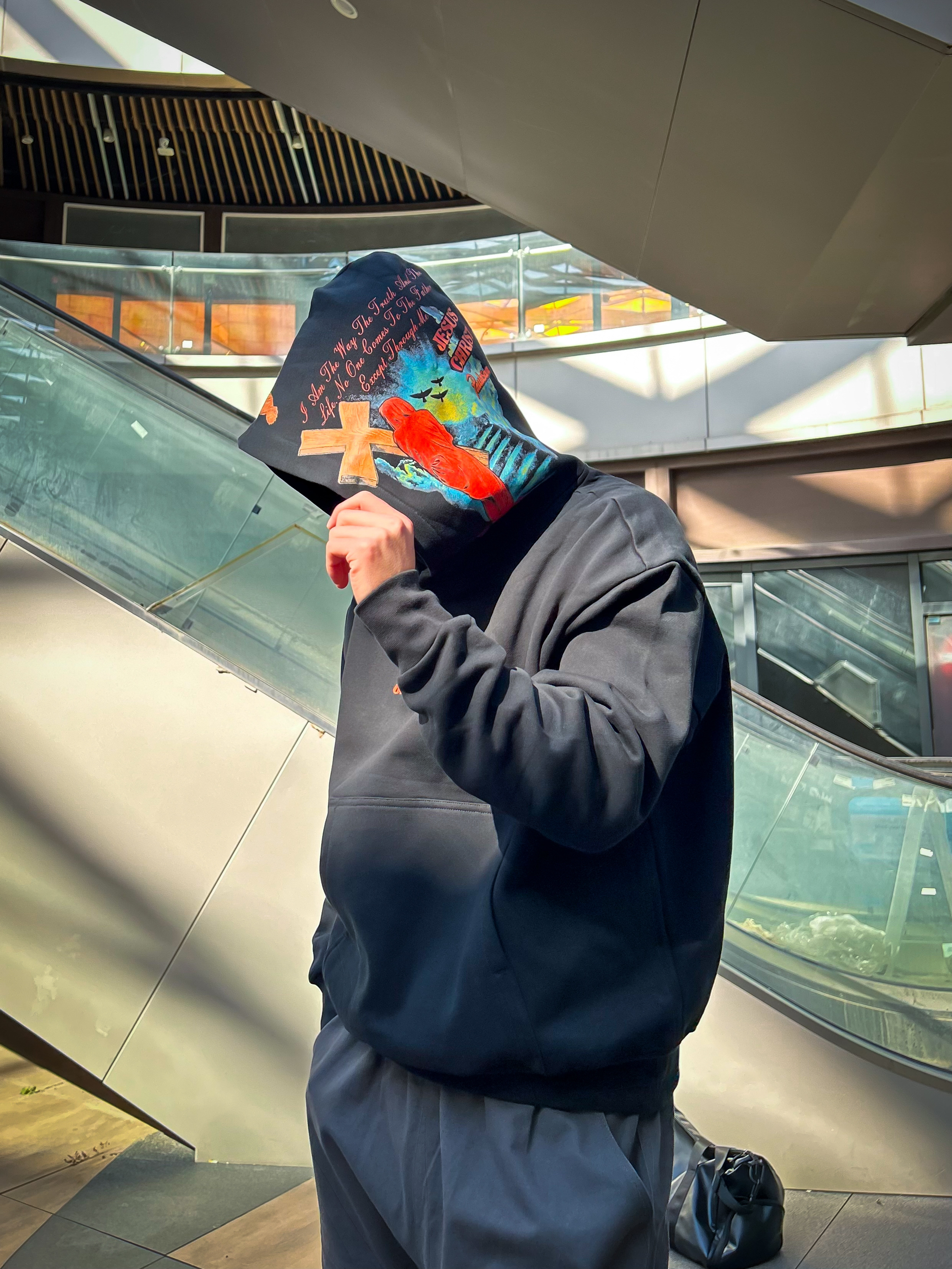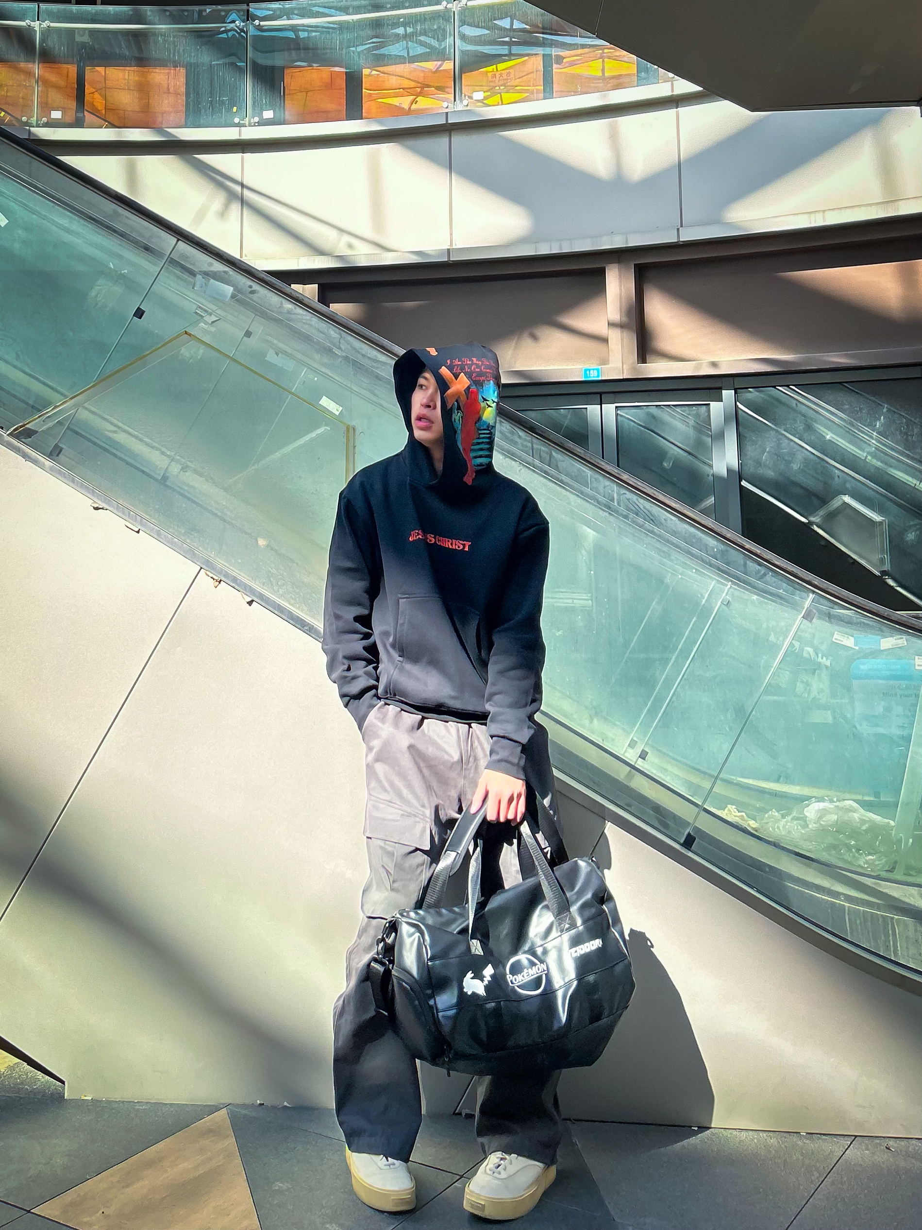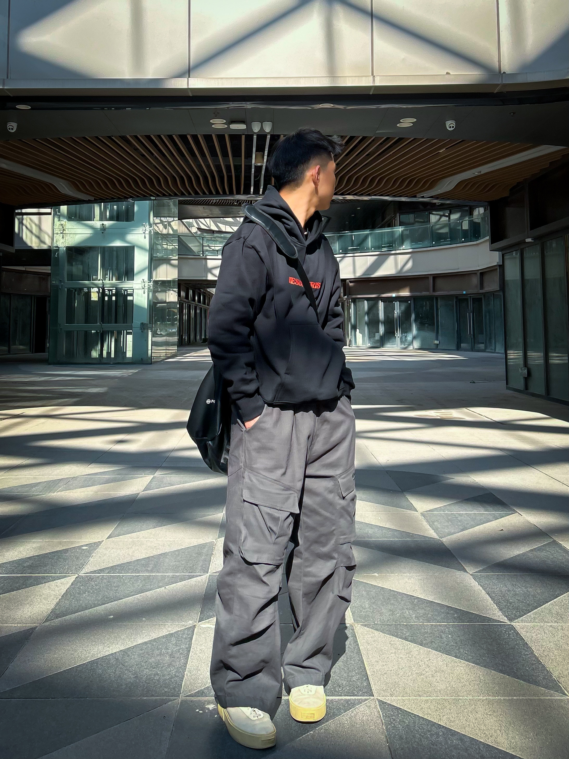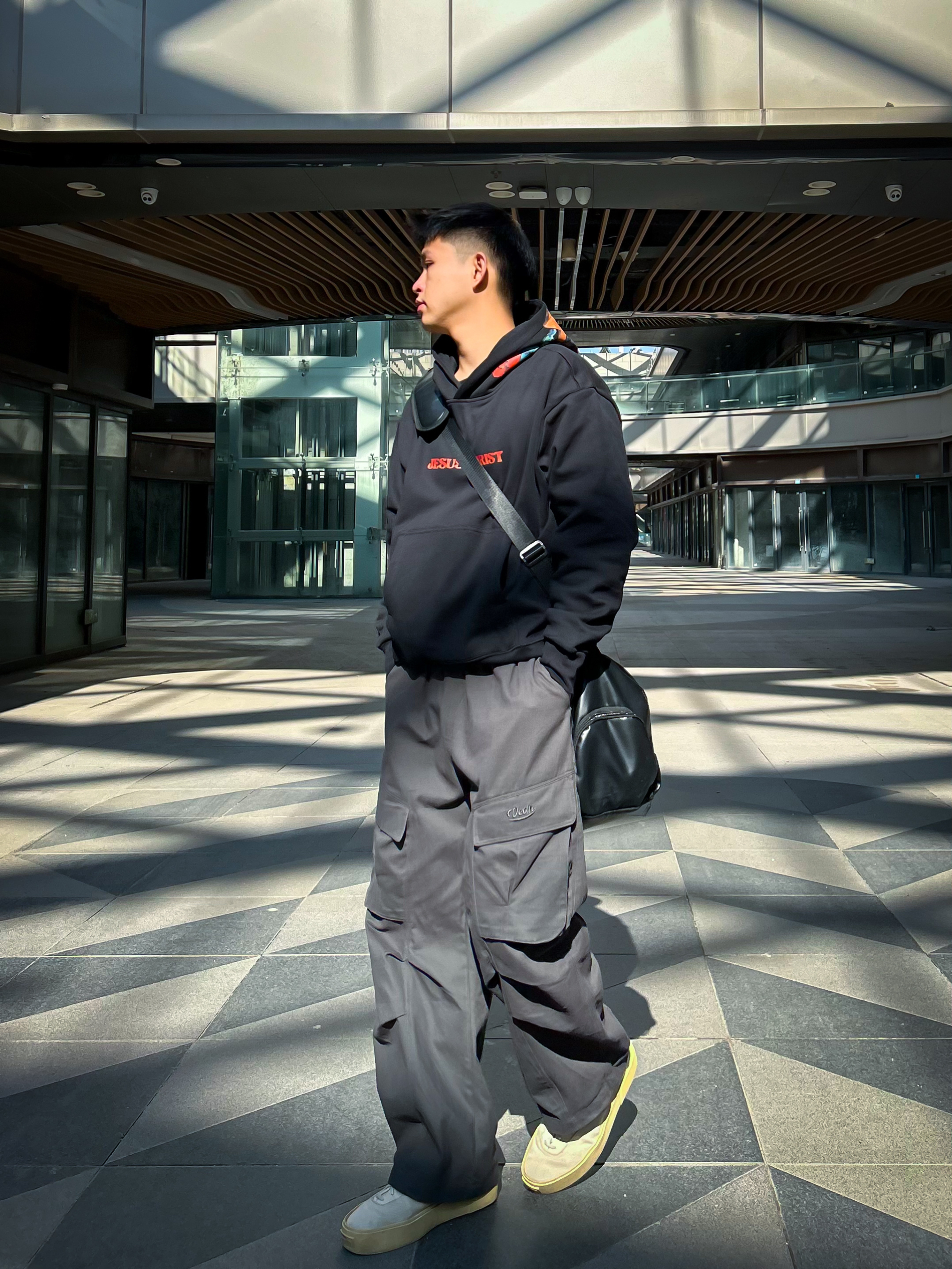 哈咯,这里是爱打球爱穿搭的卢_SG 年度穿搭秋日街头潮酷风穿搭! 上身穿的是 PAULASARA 客西马尼园的祷告卫衣 帽身撞色涂鸦+胸前字母印花,暗黑系艺术! 潮感直接拉满,连帽一戴自带街头氛围感 高克重面料柔软舒服,内里抓绒很亲肤! 秋冬很适合,保暖效果杠杠的! 下身搭配一条深灰色工装阔腿长裤 搭配一双做旧板鞋+同色系挎包,整体暗黑系色调!