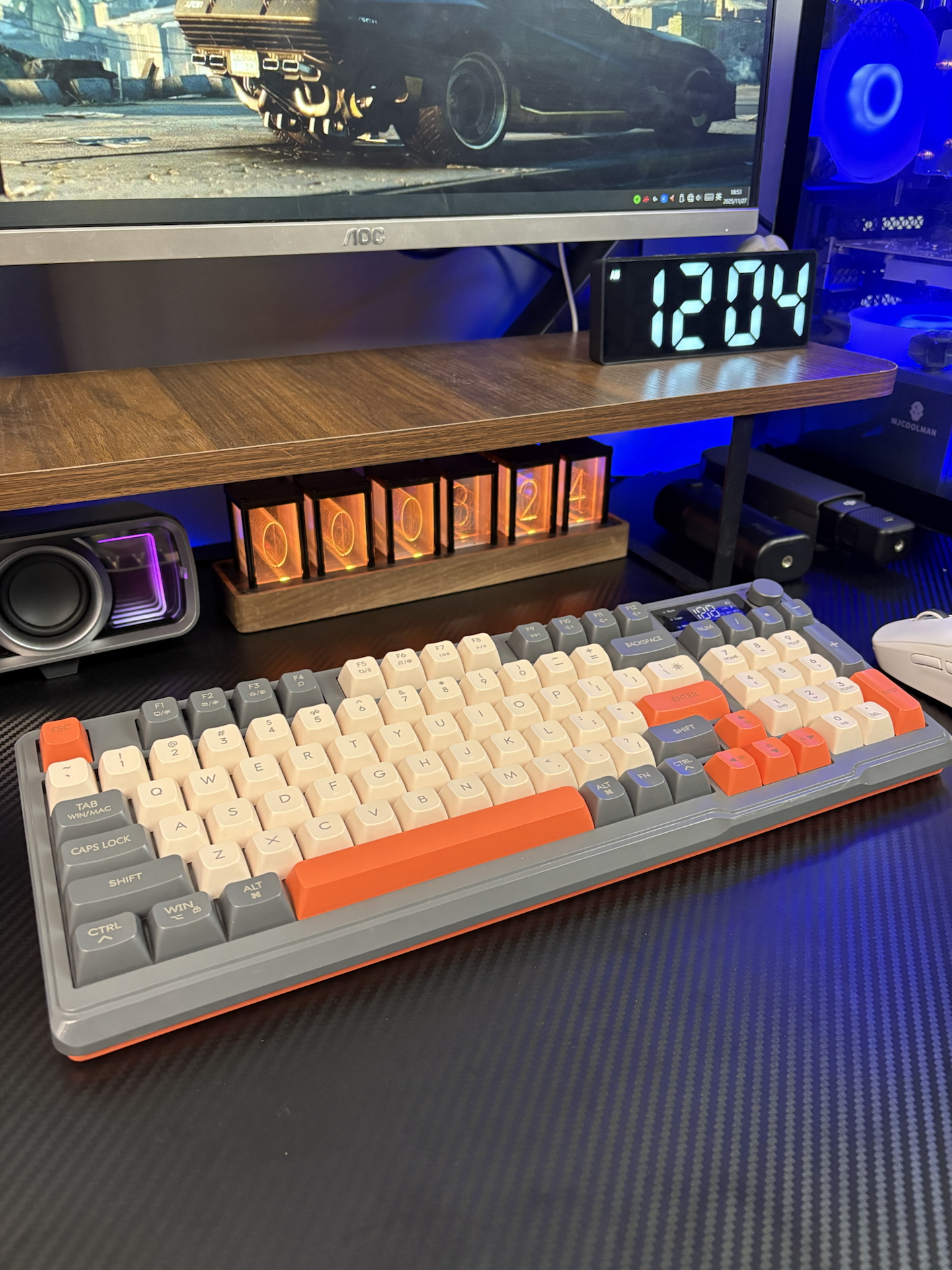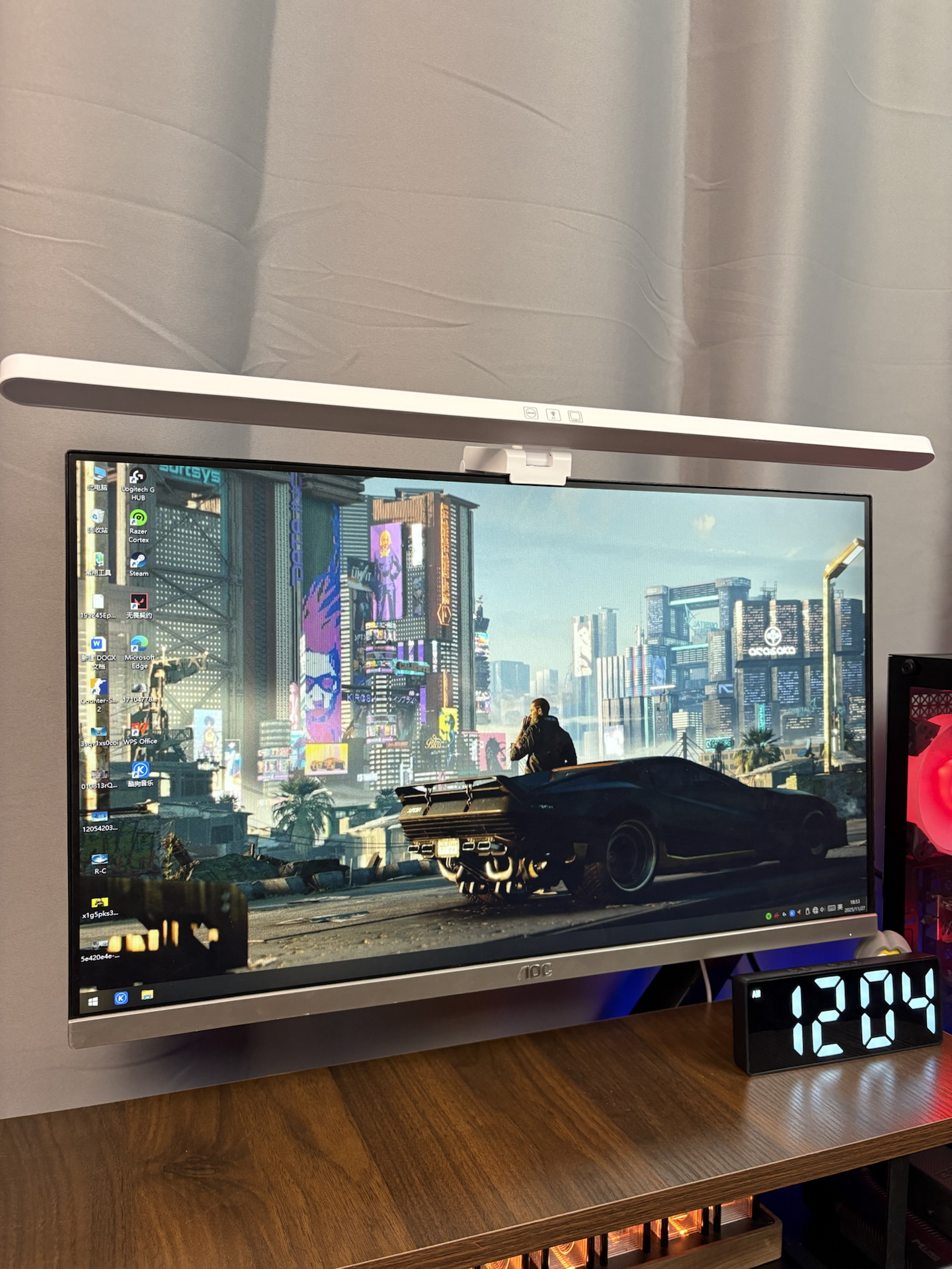 家人们谁懂啊!想搞氛围感电竞桌搭,把灯光留给主机后,我选了AOC显示器~23.8英寸大小正合适,和罗技GPW二代鼠标、M96双模键盘搭一起,电竞感拉满还不失简约感!唯一小遗憾是我桌面空间有限,壁挂功能暂时没用到🤣