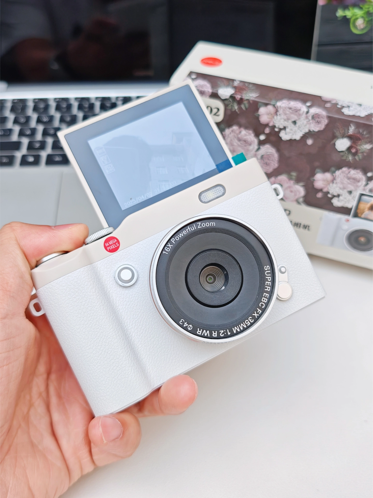 我入了台复古小白相机~白色机身好耐看!6400W像素拍照录像都清晰,16X变焦构图轻松。操作简单,我这种小白也能快速上手~就是传手机得用配件转接,稍麻烦,但用来记录生活足够啦🥰