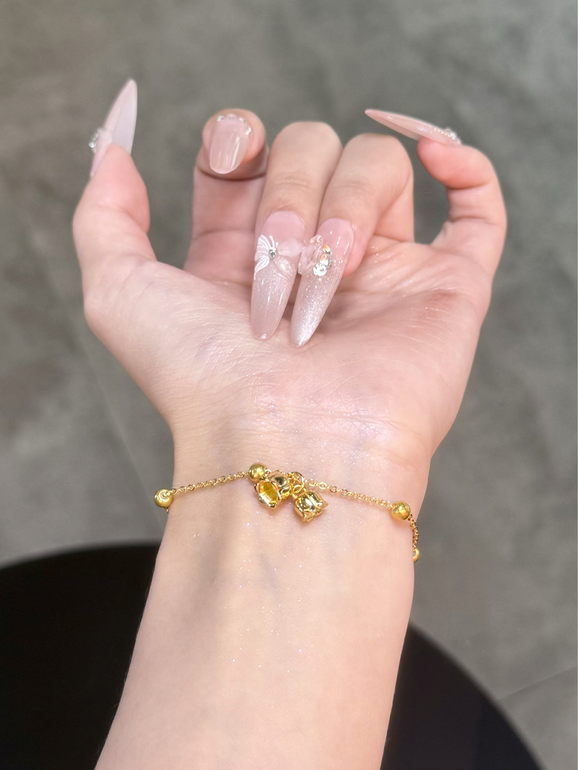 喜欢了好久的黄金手链,前段时间太贵,一直没舍得买,终于等到金价回调了 往后的日子发发发,今天就买了个小花花 老凤祥他家的这个手链质感也是没得说,在光下bling bling的闪 赶紧趁现在不太贵奖励一下自己叭~