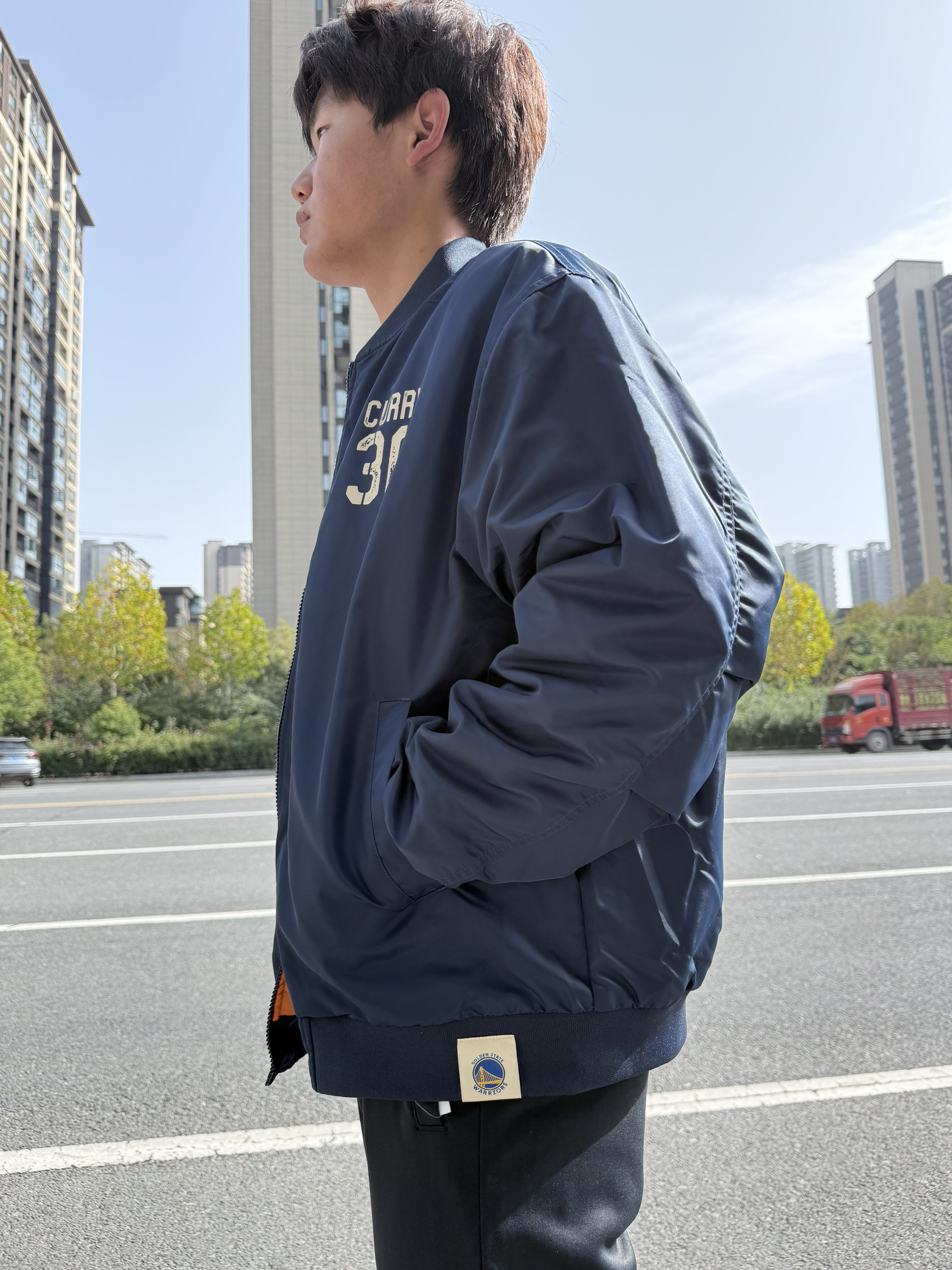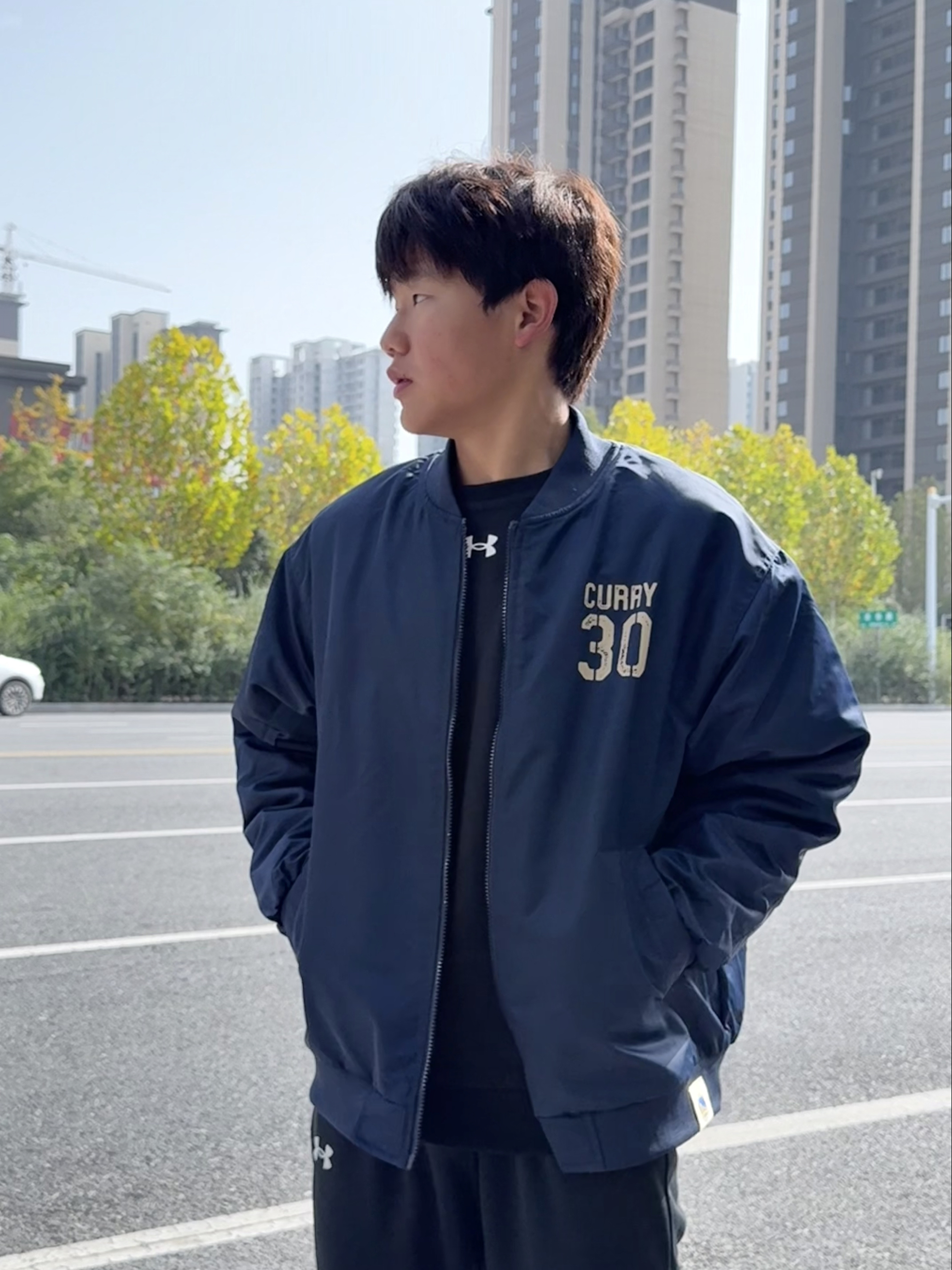 这款 NBA飞行夹克🌸是库里30号 深蓝主色+胸前金色“CURRY 30”刺绣 运动感满满,加厚的面料秋冬穿刚好 拉链开合+袖口和下摆松紧设计,保暖又舒适 日常休闲或运动都OK,适合各种体型 搭配运动裤、休闲裤都很出彩 面料是高效透气,又防水的 也可以做情侣装