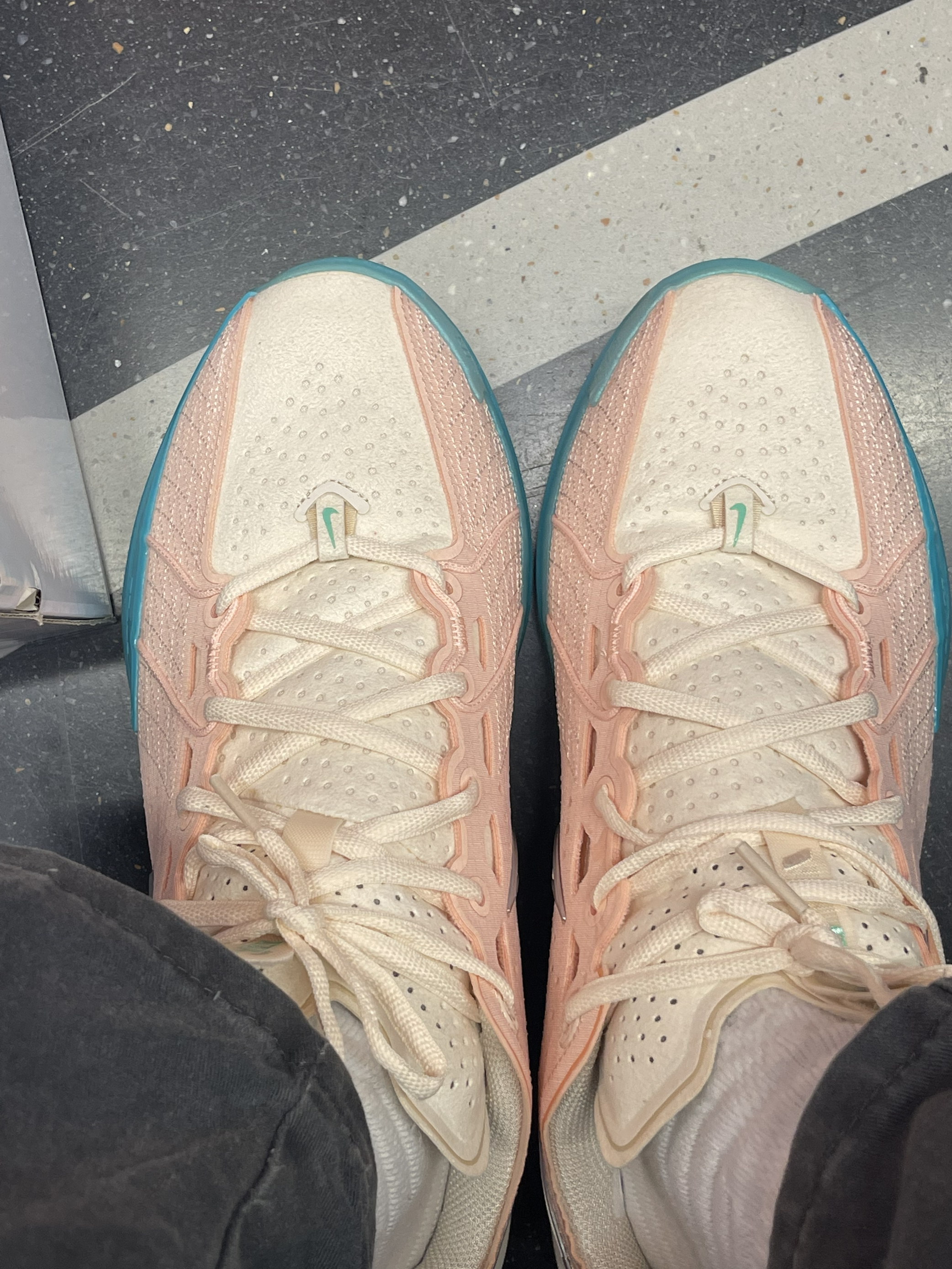 整体颜色:鞋身以「水洗珊瑚粉」为主调,穿孔网布,中底/外底渐变过渡 配置方面:1、ZOOMX中底泡绵+前掌气垫 2、穿孔鞋面+镂空鞋舌 3、水晶大底,支持室内场地,室外有点太浪费了