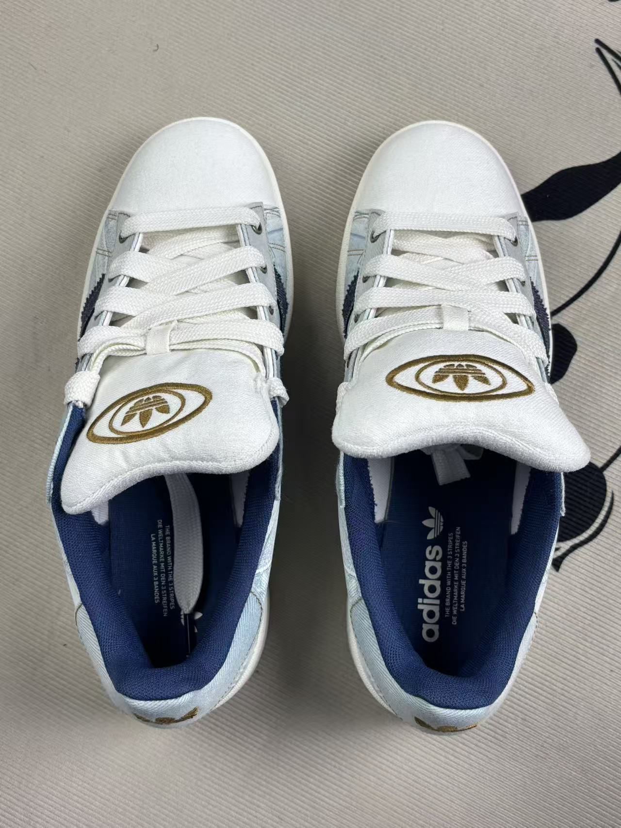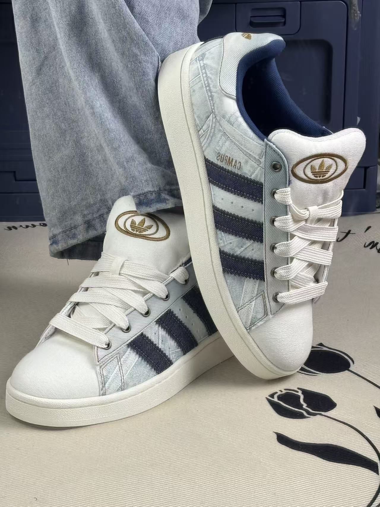 这双Campus 00s是最近揣篮球包边上的常穿鞋👟。浅蓝牛仔纹理搭校服裤/牛仔裤都不违和,不用费脑想穿搭,上课塞书包侧袋换着也方便。 脚感是软的,但底比篮球鞋薄,打半场随便投投还行,跑跳多了脚底板会有点酸🌚。鞋面是水洗布+皮质拼接,好看是好看,但沾了球场的灰要拿湿纸巾擦半天,没篮球鞋耐造。 低帮不卡脚踝,不过新鞋鞋舌有点硬,磨了两次后跟才顺脚。平时通勤+偶尔投投篮够用,就是别指望它当正经实战鞋—...