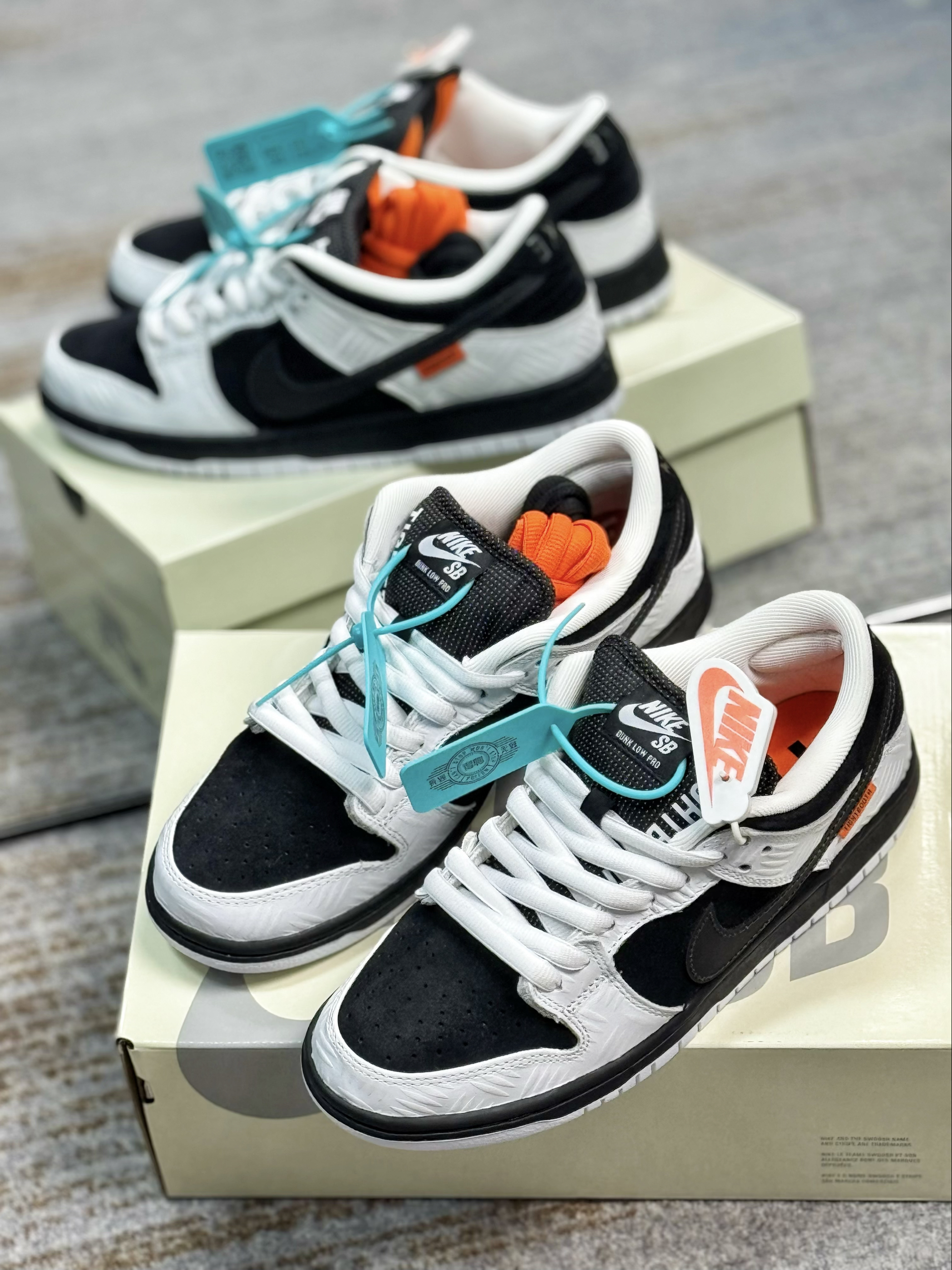 黑白熊猫配色一直是时尚百搭利器 反转黑白配色颜值依然是很能打 这双联名款细节质感上比普款好太多了 麂皮和皮革拼接,白色皮质上还有压印纹理 侧边的Swoosh还有3M反光效果 鞋身的橙色点缀也是增添了活力感 DunkSB鞋垫有气垫,脚感上也不会特别硬 穿起来舒适透气,整体包裹感也相当足 日常通勤出街有这一双就足够了 尺码方面偏小,建议选大一码 这双反转黑白配色颜值,大家能打几分呢?