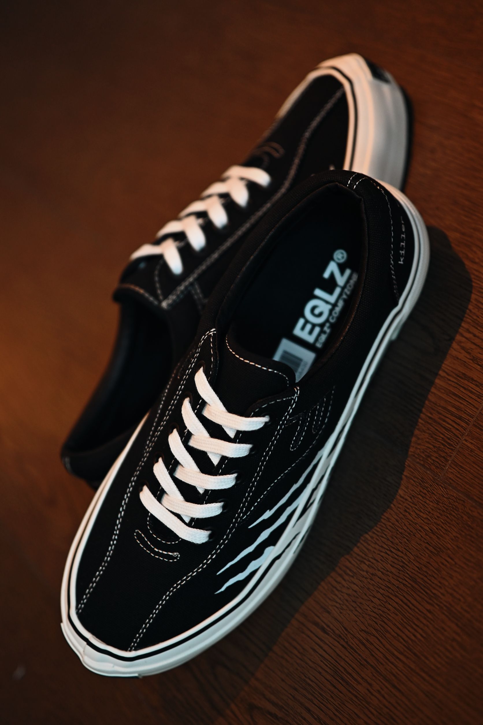 如果觉得黑白的基础板鞋太单调 不妨试试这回EQLZ和HYPERKILLER的联名 两侧的"抓痕"趣味性满满 百搭的版型,非常适配日常场景,随手搭调牛仔裤或者休闲裤就可以出门 穿起来也蛮舒服的,通勤一天也没啥问题 现在两张不到的价格性价比也非常高了
