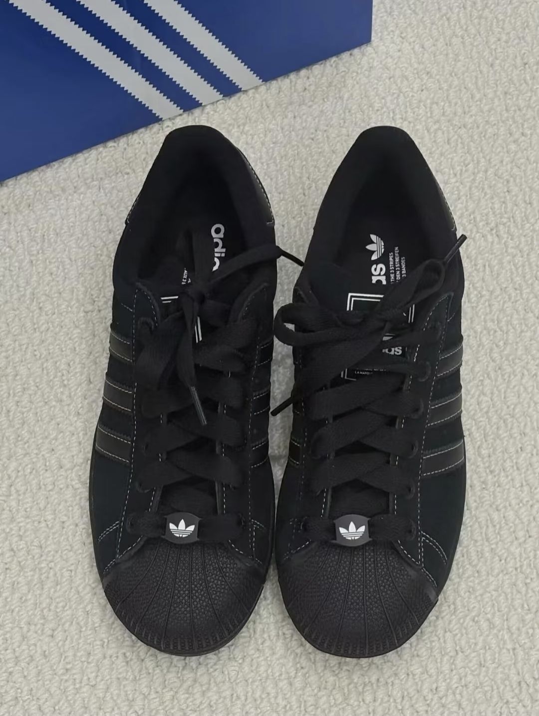 百搭款还要看adidas的贝壳头😍 这个黑武士真的无敌超绝 全黑的款根本不挑搭配 什么都能搭 这双还是麂皮的材质✨ 质感特别特别好✨ 很适配秋冬~