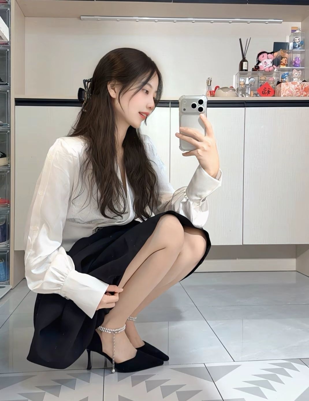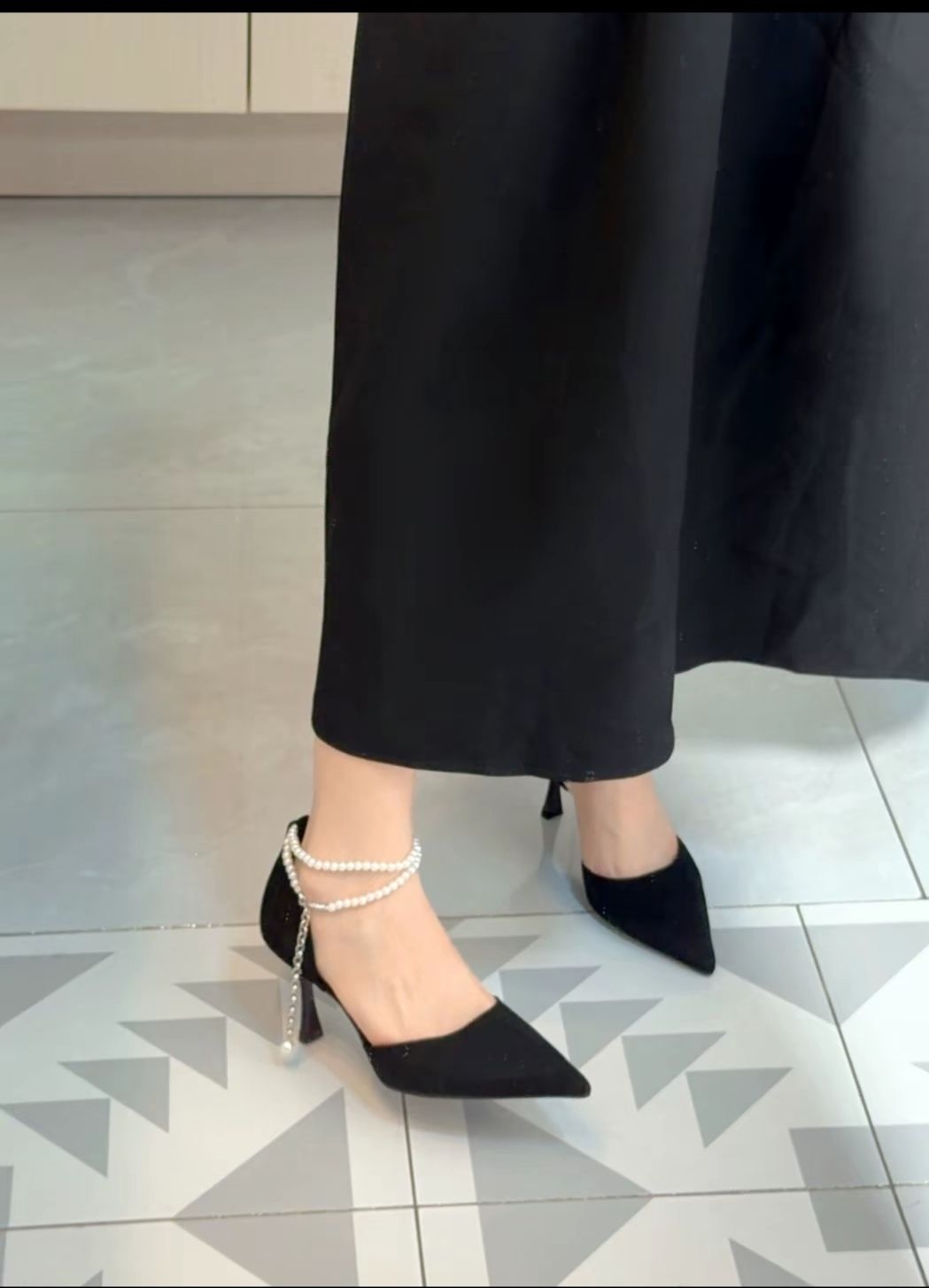 气质是有点加分了~ 则则 #ZHR 黑色鞋子搭配珍珠绑带 心机小Tips!设计很名媛! 上脚走路很舒服 不会觉得很累