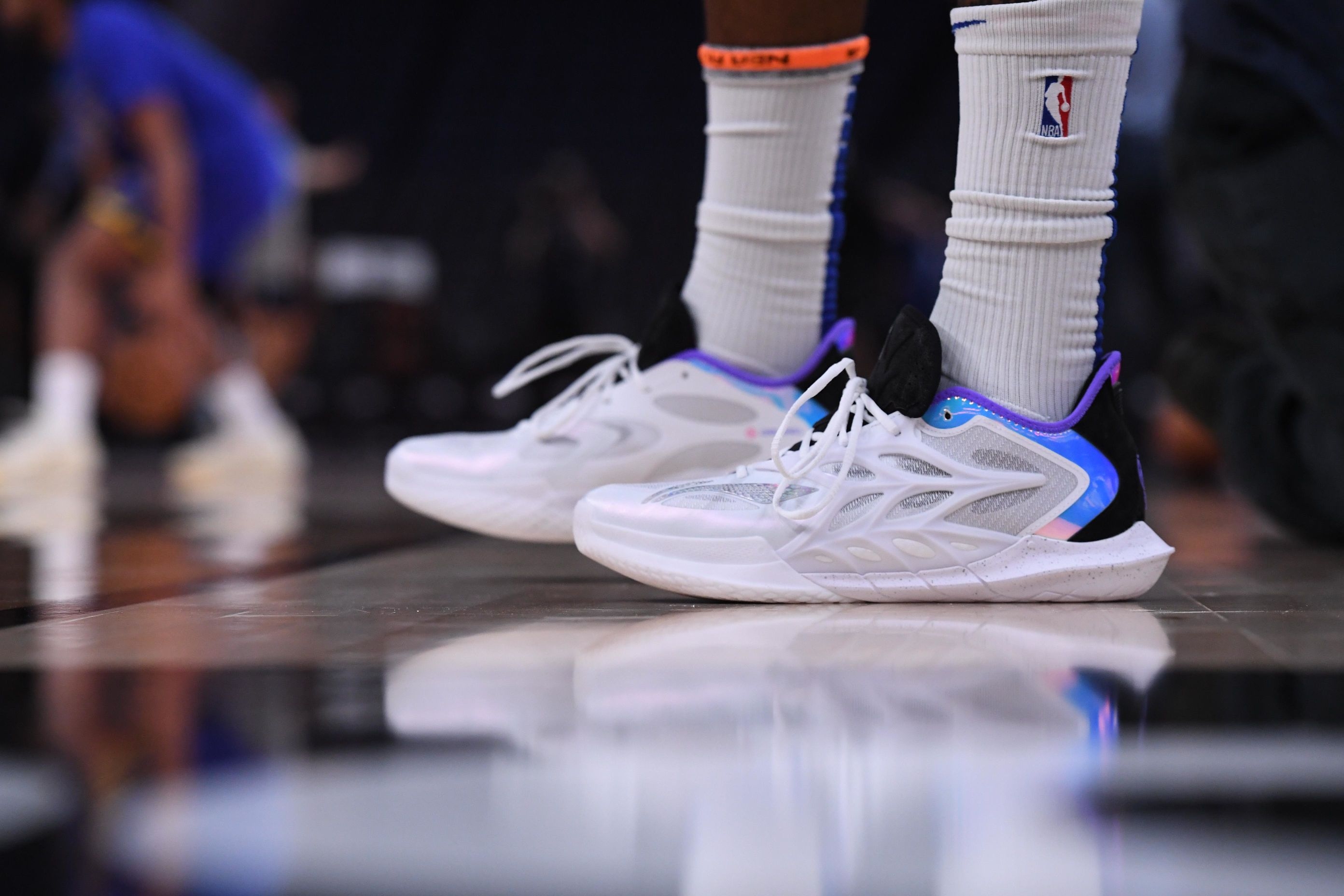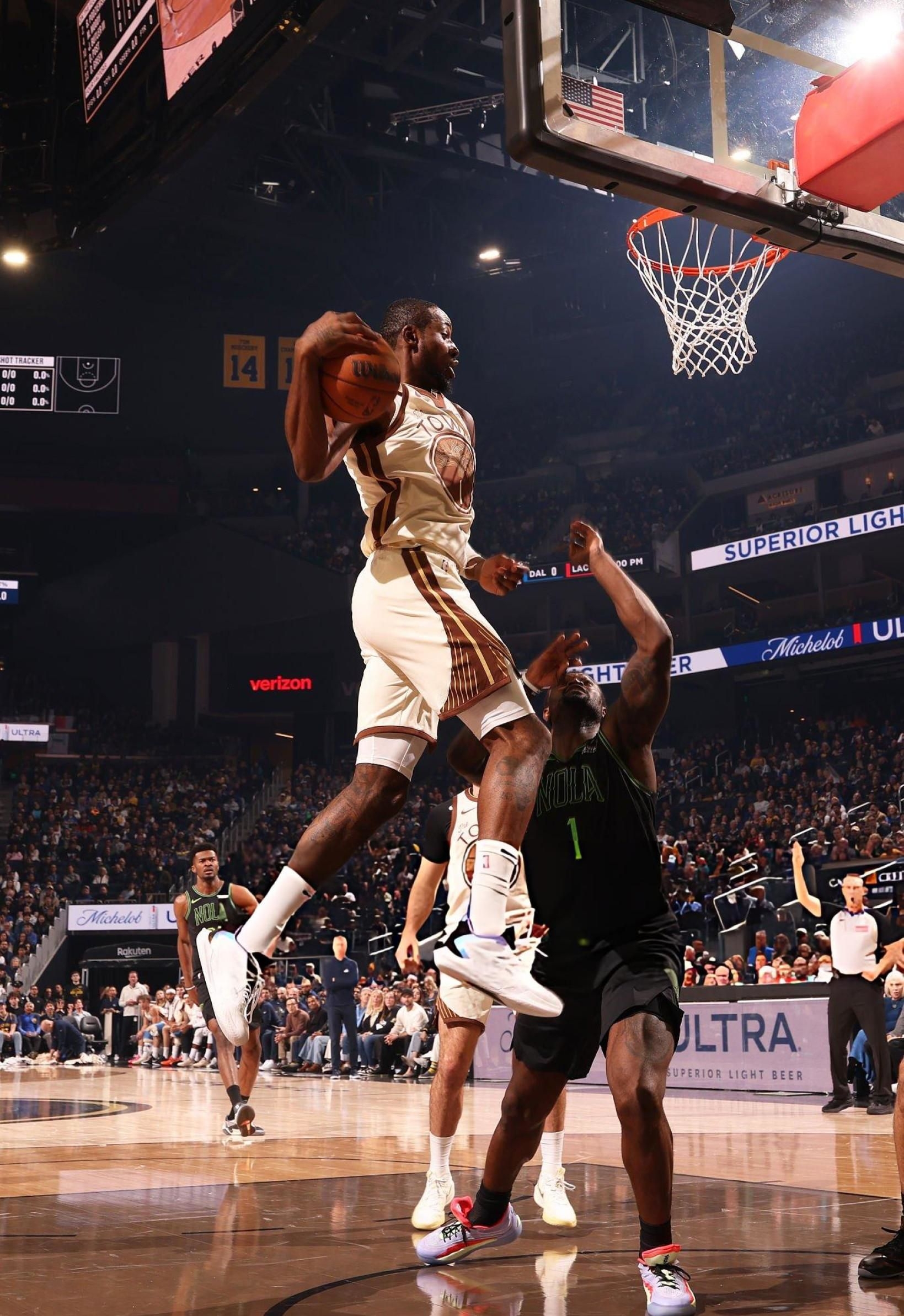 看勇士对阵雄鹿的比赛,库明加脚上的李宁闪击12存在感直接拉满——鞋身的白蓝撞色在赛场灯光下超吸睛,镜头给到脚部特写时,鞋型的流线感看着特别利落。 实战层面很直观:他多次持球突破时,鞋面支撑没出现明显形变,急停变向时鞋底抓地很稳,没出现打滑情况;作为锋线球员,他频繁起跳冲筐后落地,中底的缓震反馈看着很及时,没见他有不适的反应。 舒适度这块也能观察到,库明加整场比赛跑满30多分钟,全程没调整过...