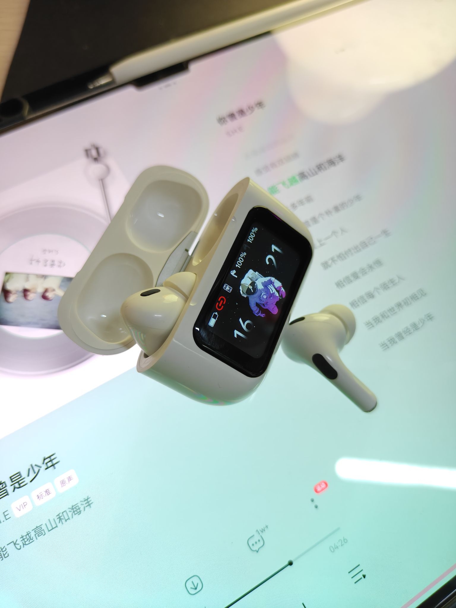 ⭐兄弟们,挖到宝了,耳机还带一个屏幕🖥️,刚开始以为只是看歌词用,结果功能真多啊 ✅他这个屏幕可以控制降噪开关、音量控制🔇、均衡器调节、查找耳机🎧、远程拍照📸、闹钟设置、锁屏壁纸等等,我说不完了,特别实用😍😍😍 ✅而且他的音质和降噪效果也是很不错的,我也没遇到过电流声或者断连的情况⚡⚡⚡ ✅续航能力也挺持久的🔋,我戴着出门逛一次街是没啥问题的 ✅整体来说这款性价比挺高的,推荐试试