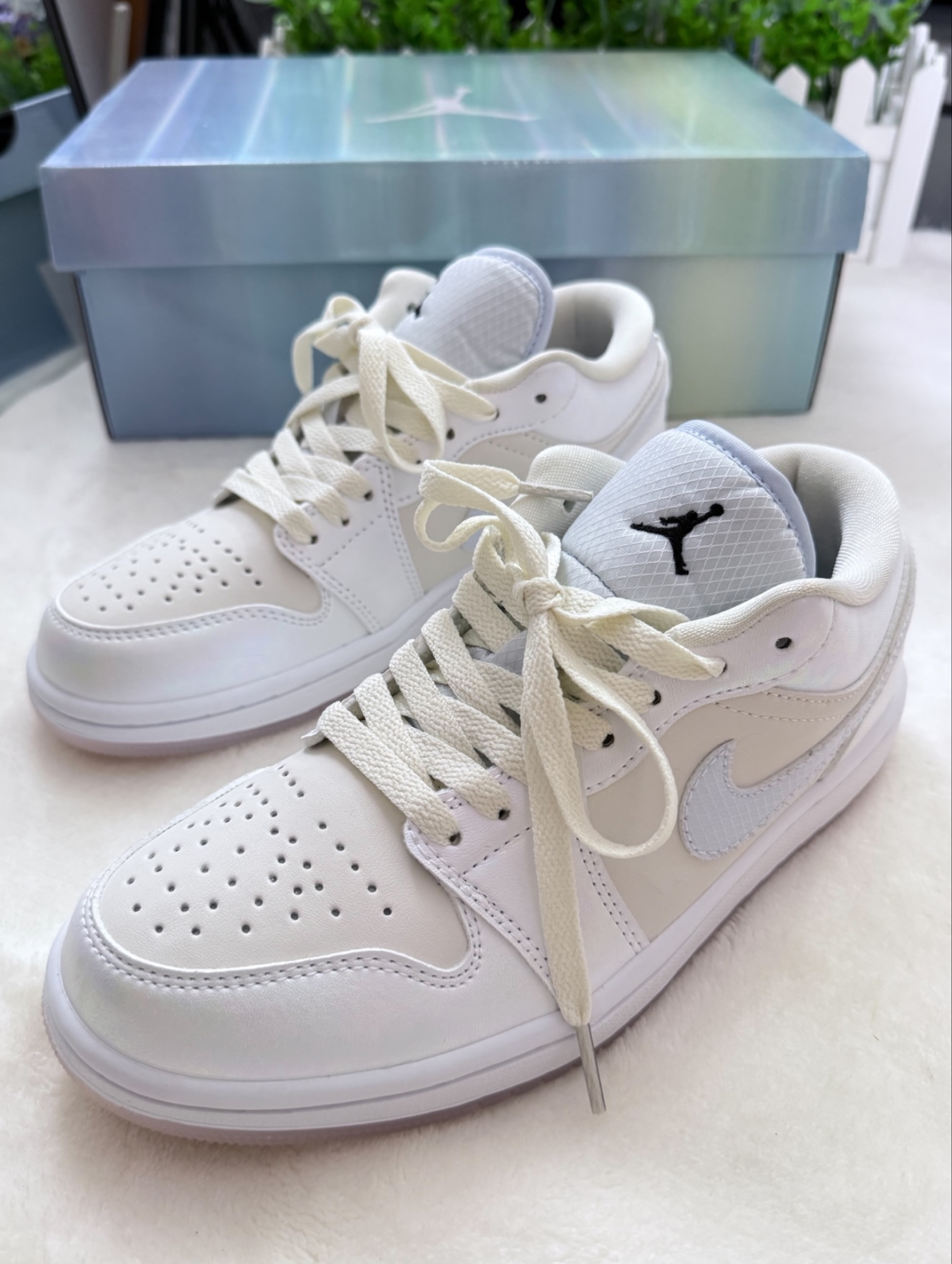 分享一双我最近超爱的AJ小白鞋~🤩 简约又好看,穿起来挺舒服,防滑效果也不错呀 搭配牛仔裤,搭配小裙子走清新甜妹路线,挺好看 日常出街穿舒适度也在线