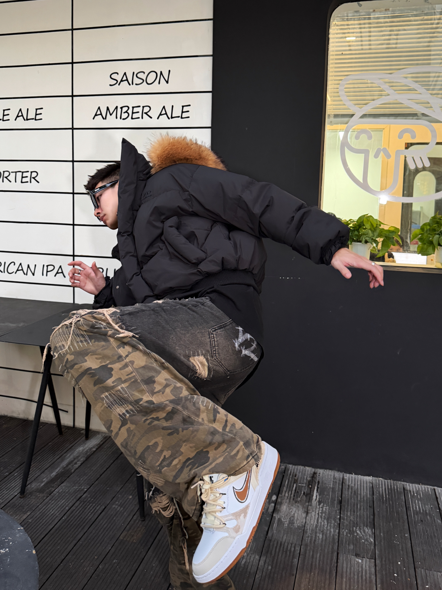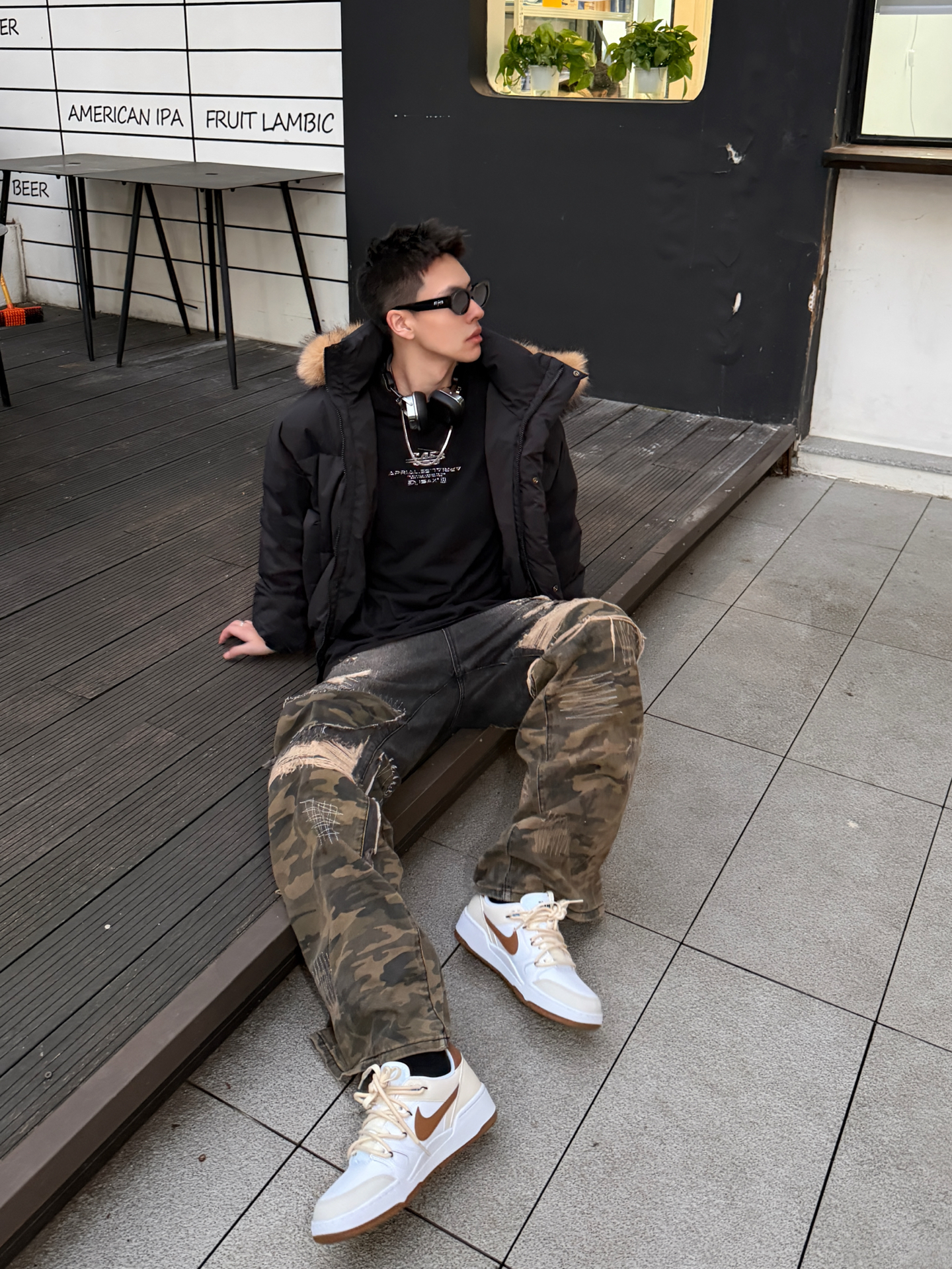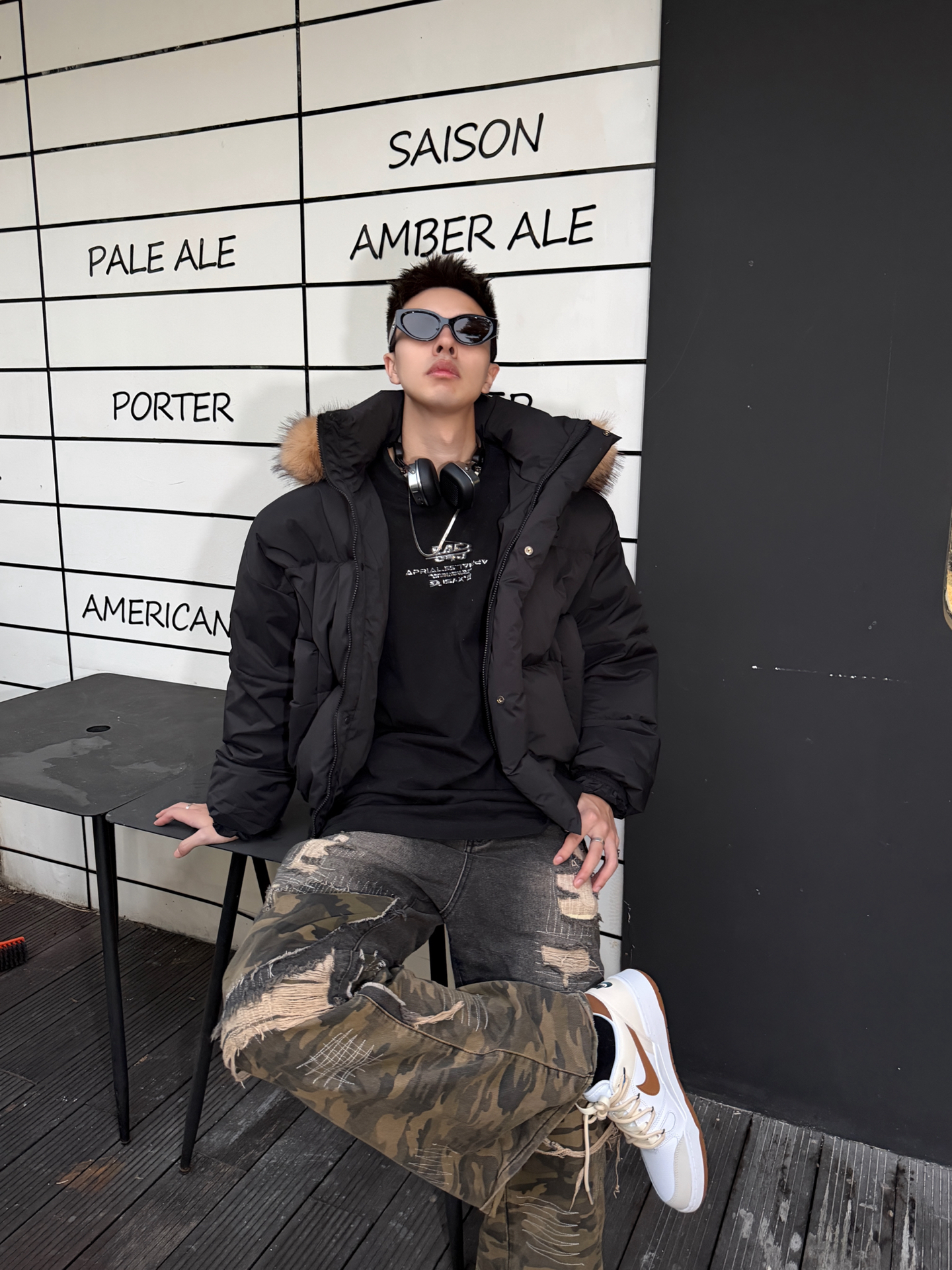 谁懂啊!黑羽绒服+迷彩裤+nike板鞋的搭配,直接把冬季街头感焊在身上——羽绒服毛领软糯又显松弛,哑光面料衬得高级不臃肿;迷彩裤做旧复古细节满满;定制款full force的复古配色太吸睛,鞋面质感细腻,脚感舒适,专属设计感直接甩烂大街款十条街。泼墨的点缀也是细节感满满,日常穿这双真的很🆒 不管是逛咖啡馆还是打卡街头场景,整套“酷而不刻意”的调性直接拉满,想穿得有辨识度又不费力的男生,这一套直接...