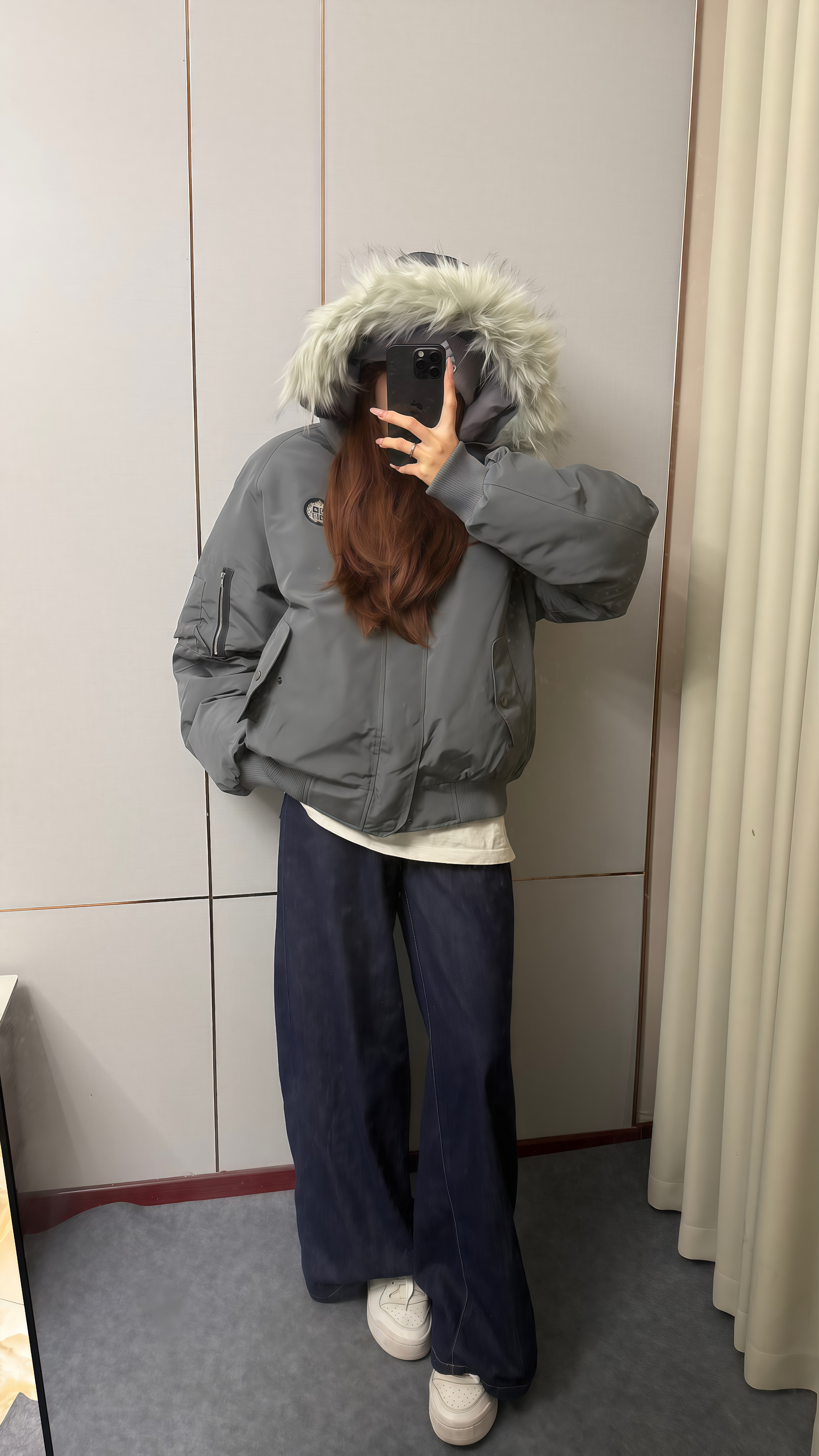 这件灰色系ac真帅!大毛领嘎嘎百搭!软乎乎的穿起来好舒服呀!