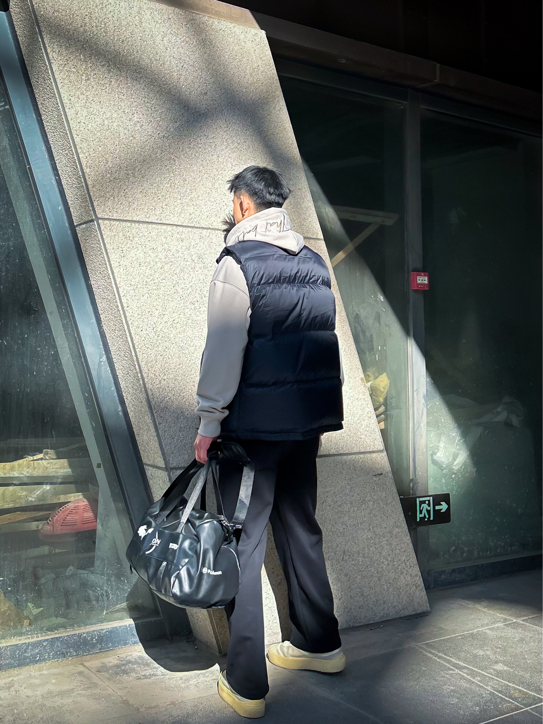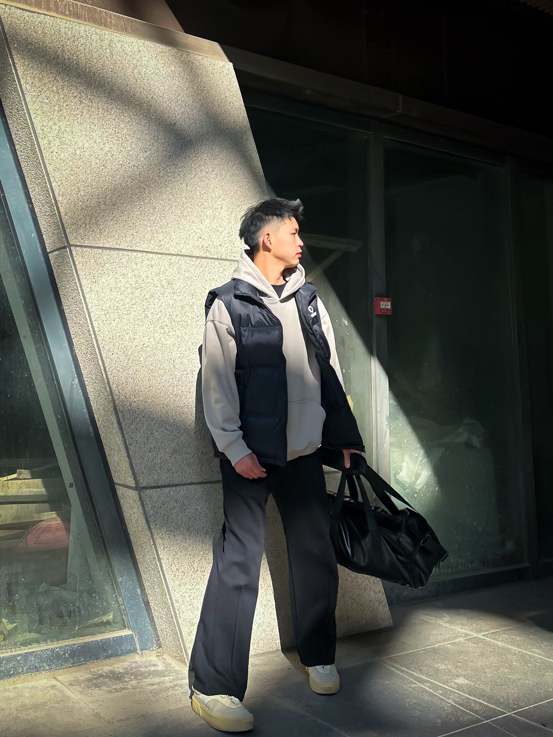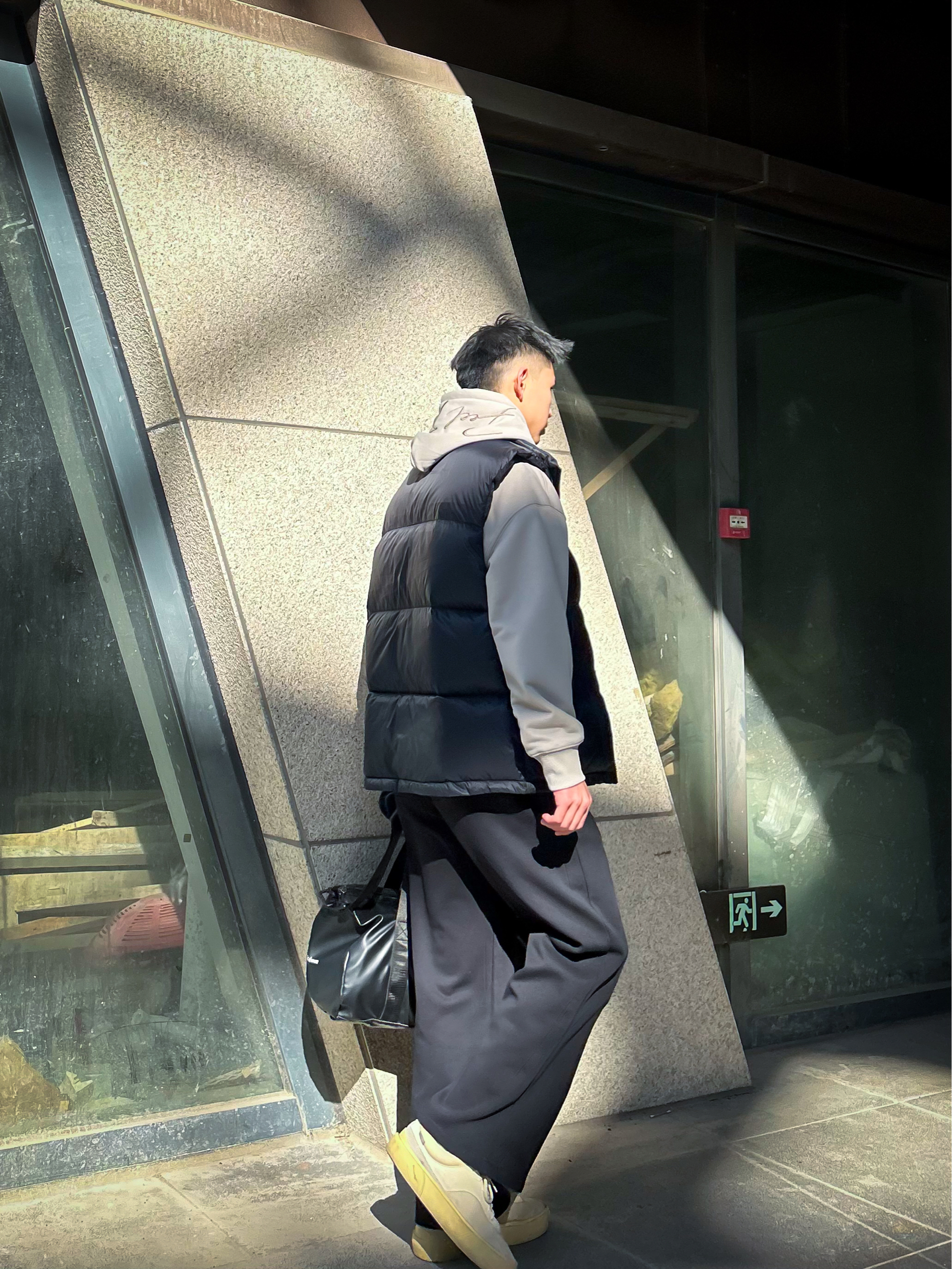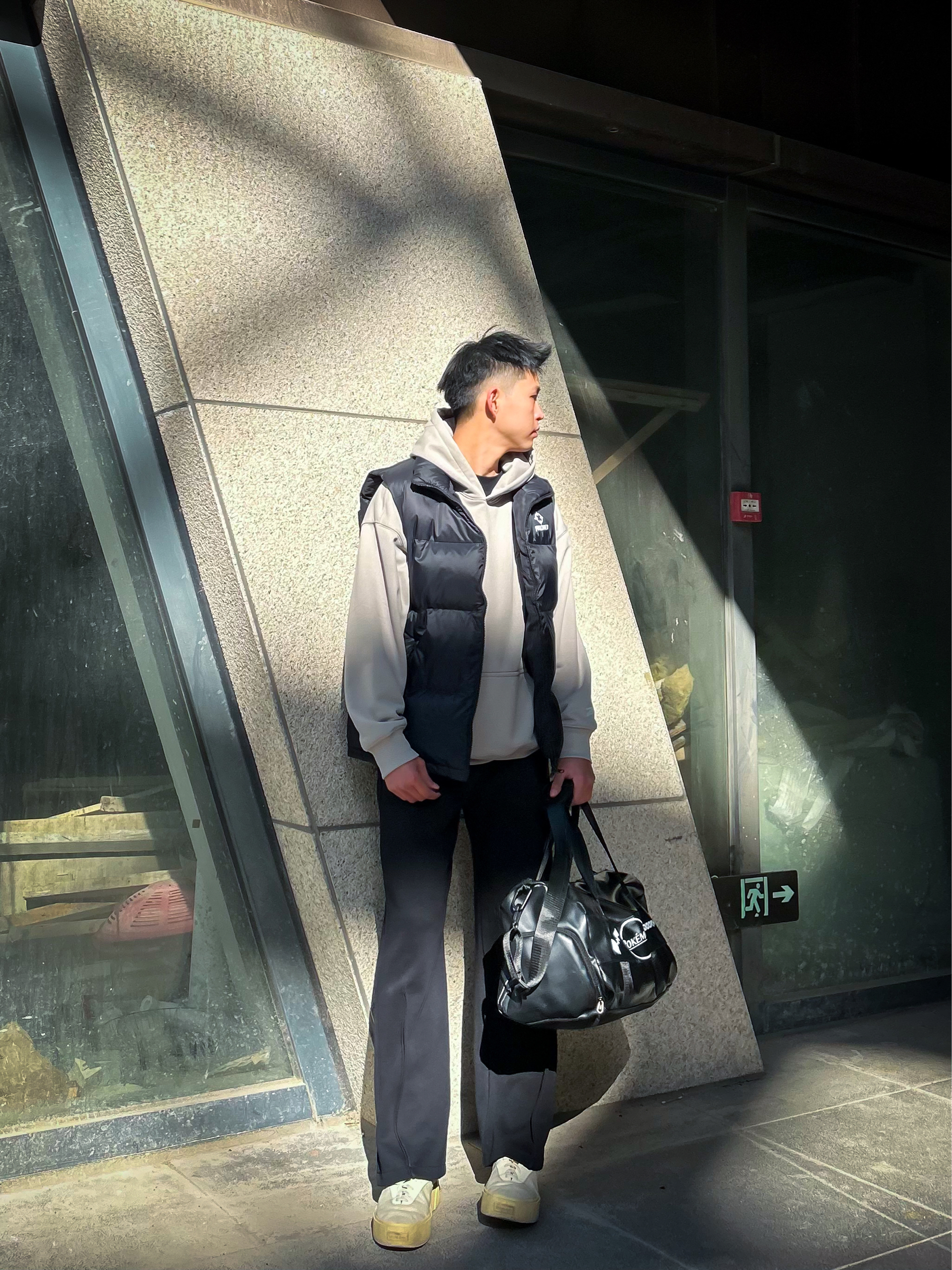 哈咯,这里是爱打球爱穿搭的卢_SG 年度穿搭秋冬叠穿运动休闲风安排上! 上身是连帽卫衣叠黑色羽绒马甲 卫衣渐变色调+帽口手写风装饰,自带松弛氛围感 马甲蓬松版型+简约无袖设计 保暖的同时把穿搭层次感直接拉满 下身搭黑色垂感阔腿裤 垂顺面料+宽松廓形,既能藏肉又能衬出利落腿型,不管是打球还是日常通勤都够舒服 配上黑色印花运动包+做旧厚底鞋 整体低饱和灰黑调+鞋款浅色系点缀 协调又带点酷感,秋...