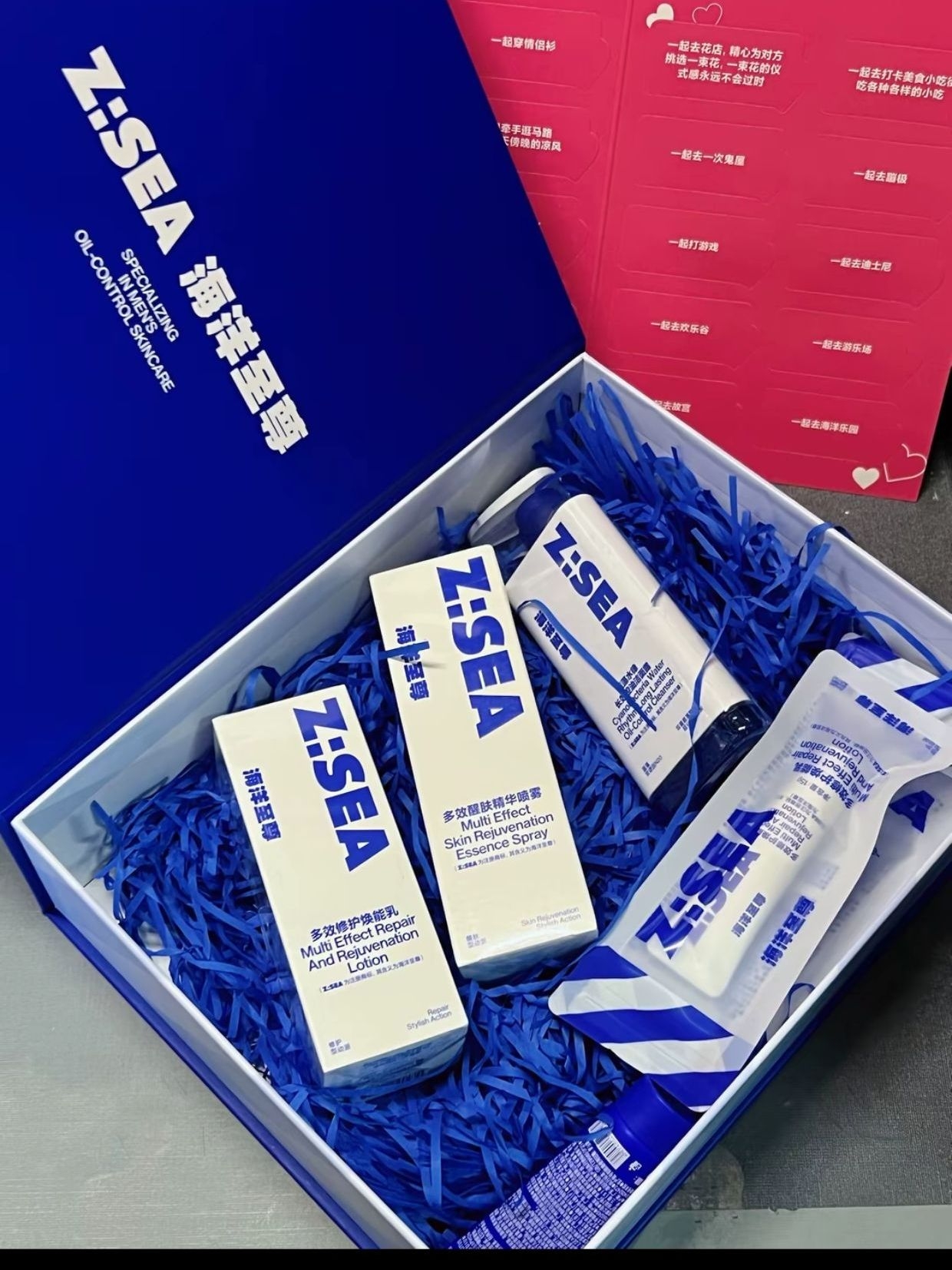 现在像这种换季皮肤都是最敏感的时候了,尤其像我男朋友的油痘肌的皮肤🫠我精挑细选l这个海洋至尊的控油套盒 这个真的蛮方便的直接懒人三件套了,有洗面奶泡沫🫧打出来很绵密清洁力很好➕水乳质地也很清爽,不会黏黏的,过一会就吸收了,控油效果很不错 现在这个还是殷墟博物馆联名的感觉很有特色!里面还有卡片可以和男朋友一起打卡好有趣
