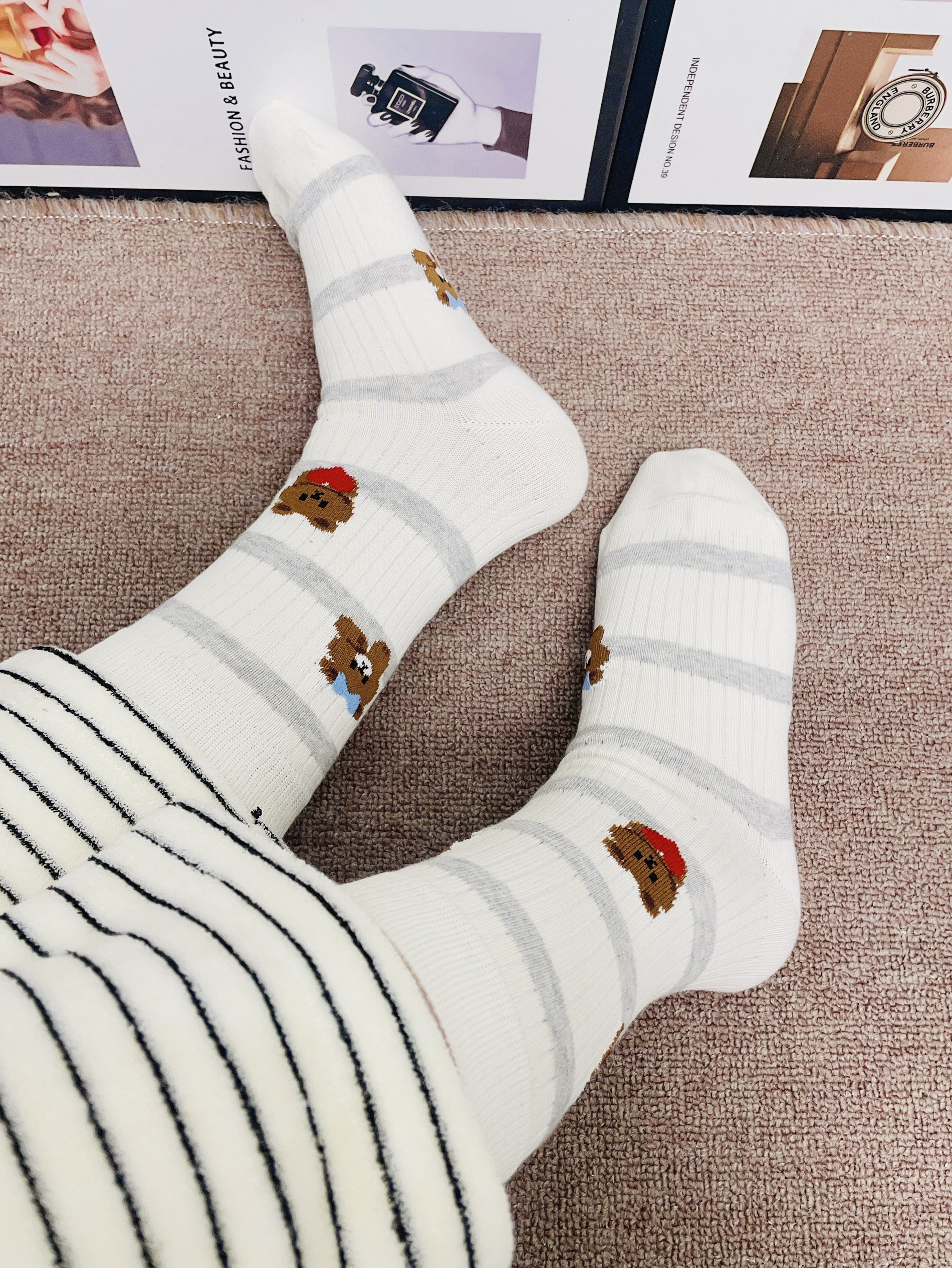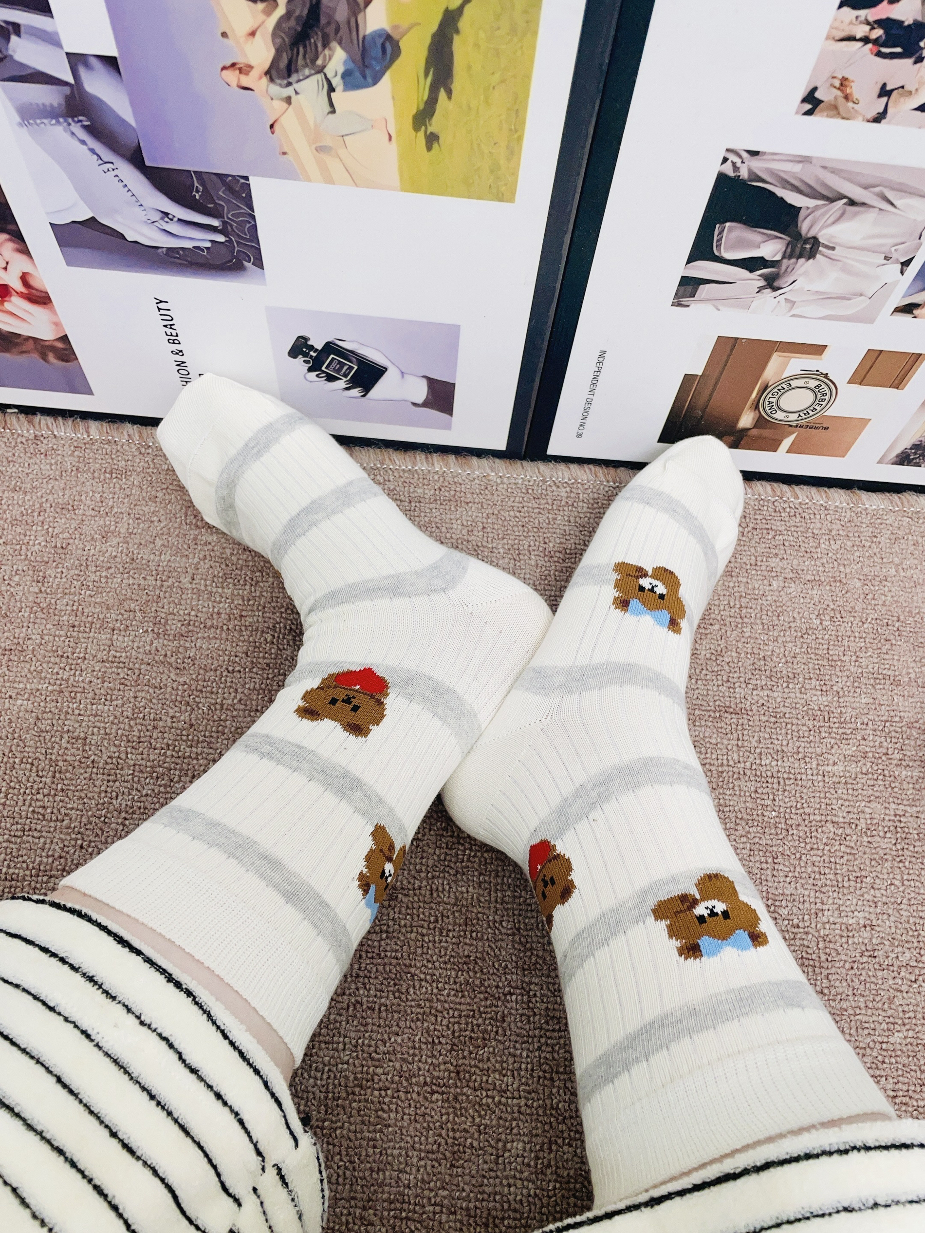 年末了又要开始新的一年 我给自己安排了新袜子穿 派米这款袜子配色都好好看 图案都可可爱爱的 我用手摸着面料hin柔软 细节做的可以 我看着不会有多余的线头 上脚穿了我感觉蛮舒服的 日常通勤随便搭耐克鞋子都不错