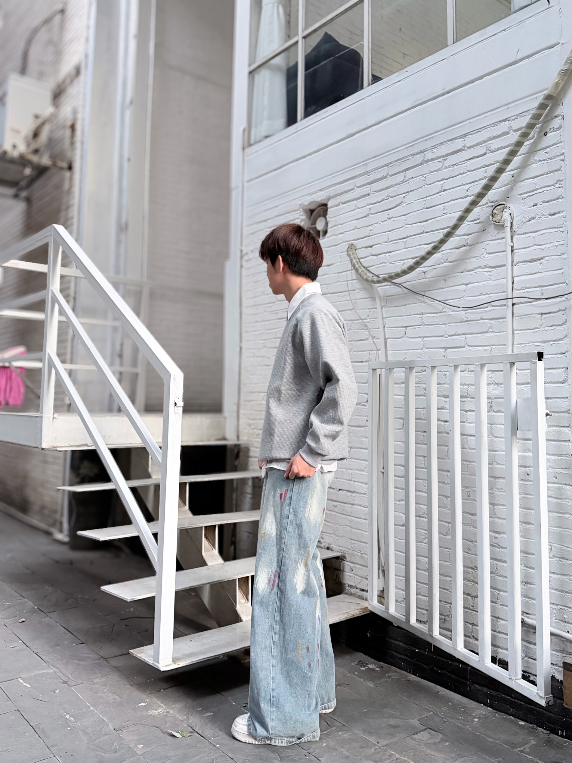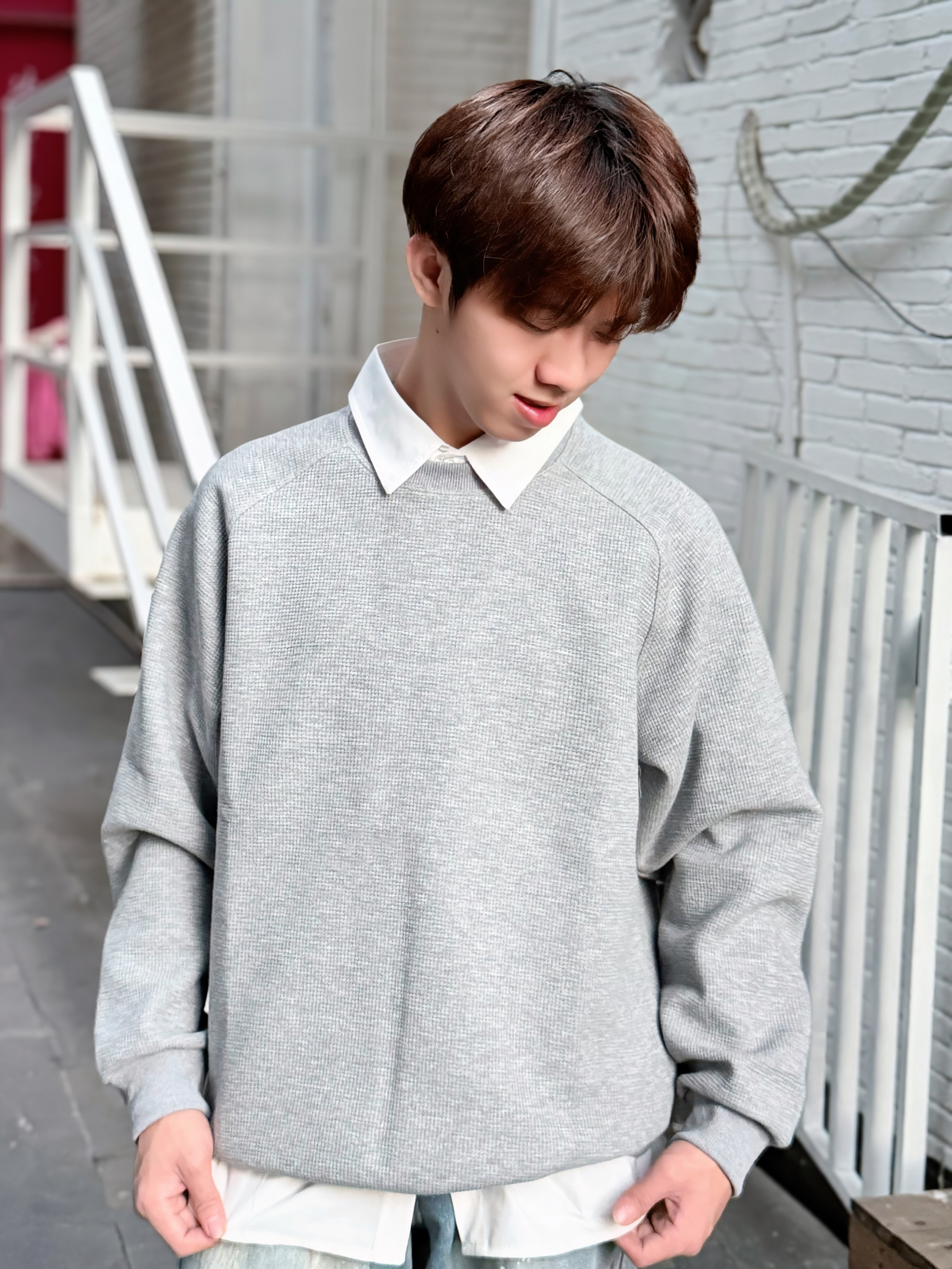 今天是低饱和的灰色圆领卫衣穿搭! 简约时尚高级感还得是老钱风的简约潮牌! 这件 我的速度WOOD SOON 🏠灰色卫衣好高级! 版型宽松好穿 纹路清晰可见 不挑身材不挑人! 面料柔软亲肤透气 上身不闷热 很适合秋季穿! 我可别喜欢在圆领卫衣上叠穿一件白色衬衫! 这样一搭好有青春少年感 很有活力且复古!