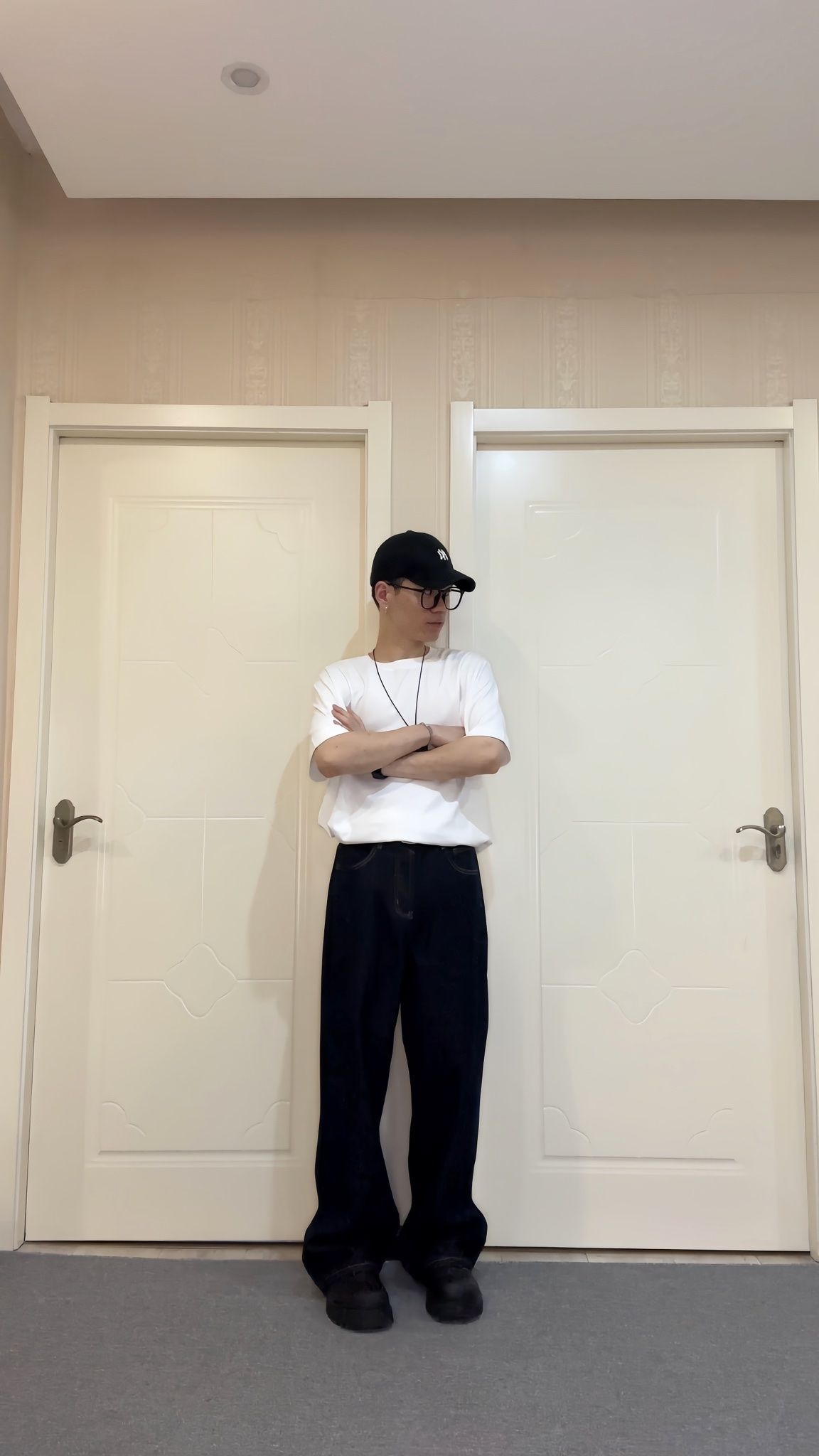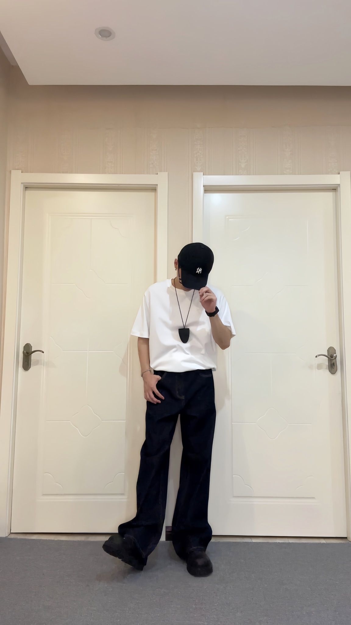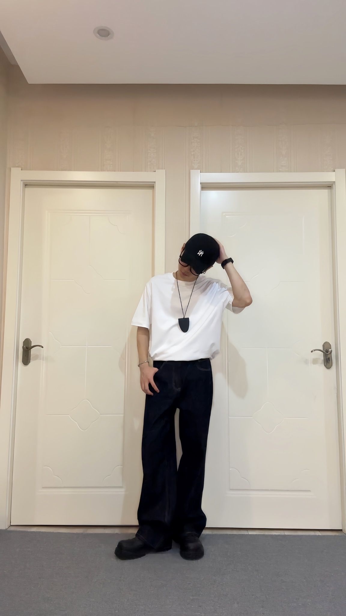 谁说基础款穿不出高级感?今天这套直接封神! 穿搭公式:宽松白T+黑灰渐变阔腿裤+老爹鞋+NY棒球帽 细节拆解: 白T: 垂坠感面料yyds,微透肤更显随性,宽松版型藏肉又慵懒~ 裤子: 黑灰渐变太戳我了!阔腿拖地设计拉长比例,走路带风超有气场~ 点睛配饰: NY棒球帽一秒get韩系欧巴,长项链打破单调,手表增加精致度! 💡搭配心机 上浅下深配色显瘦十斤! 裤脚堆叠在...