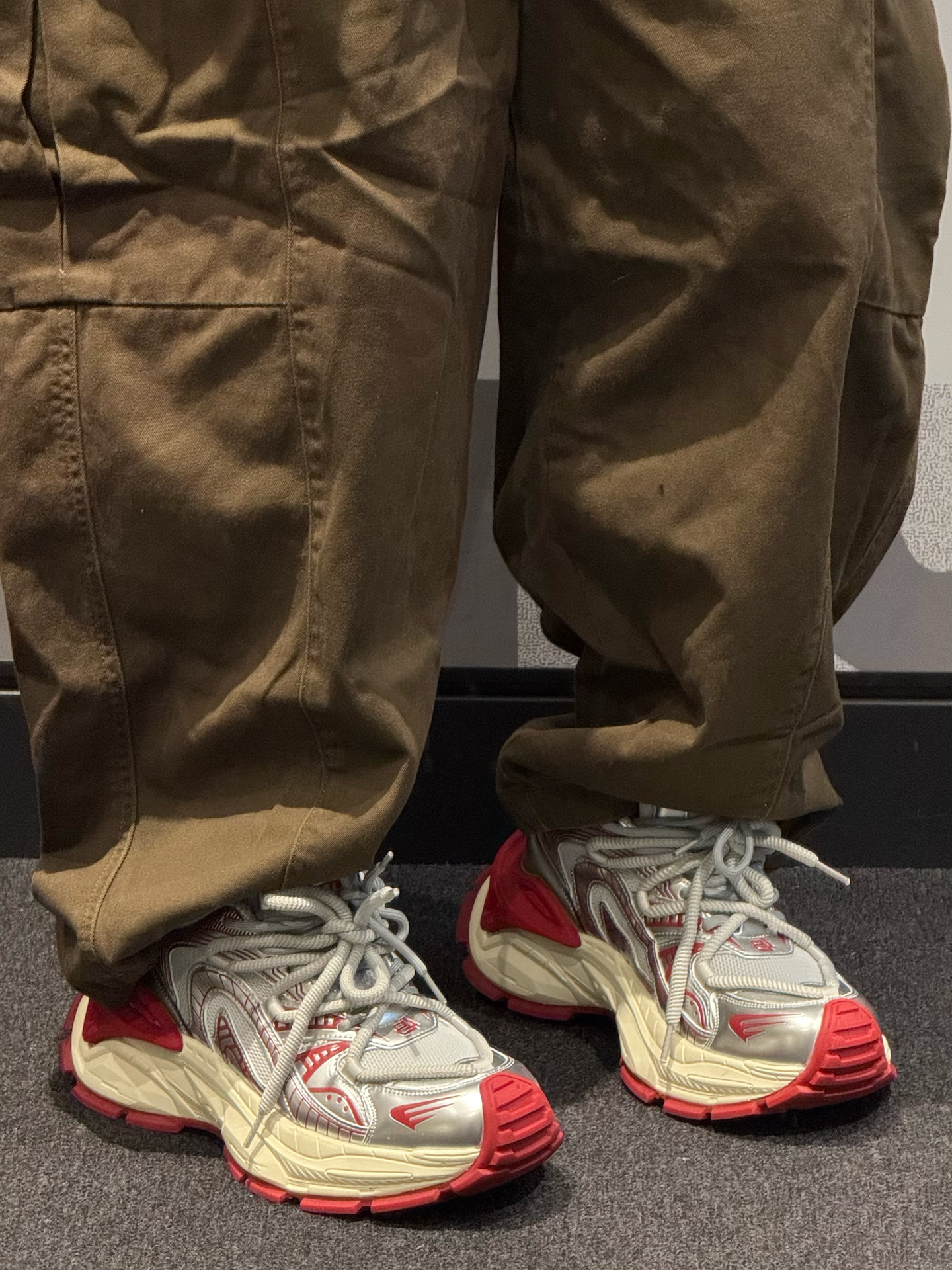 分享一双宝藏老爹鞋 #lilbetter 绯红配色搭配银色真的好酷~ 最近有点爱穿他 增高又百搭 脚感还不赖😉 双鞋带双鞋舌 个性感拉满💯 依旧是搭配同色系卫衣叠穿羽绒马甲 秋冬我就是最靓的仔~ #时髦蜈蚣精 #交出你的鞋靴链接 #Lilbetter鞋 #秋日鞋履焕新指南 #复古球鞋收藏家
