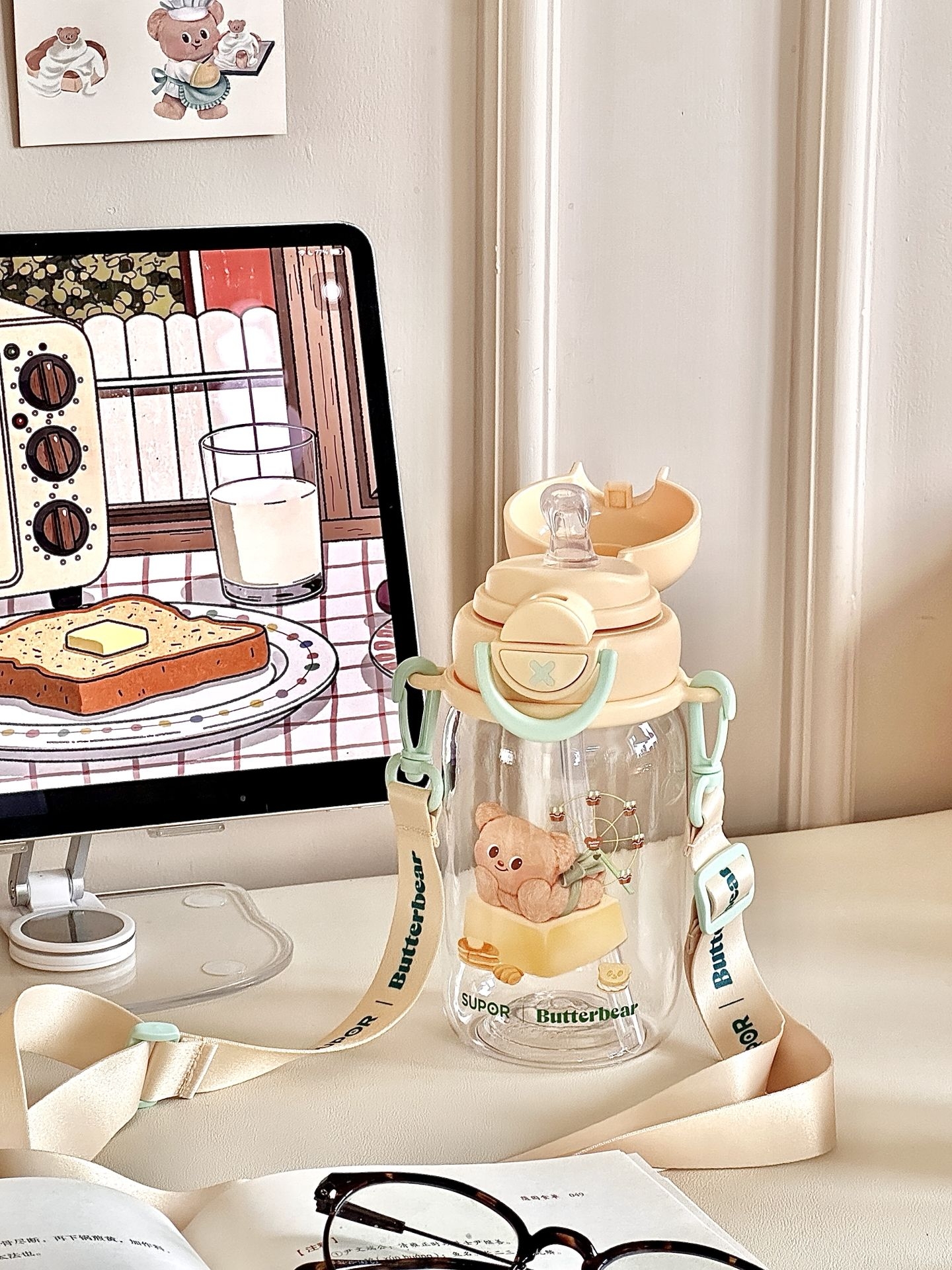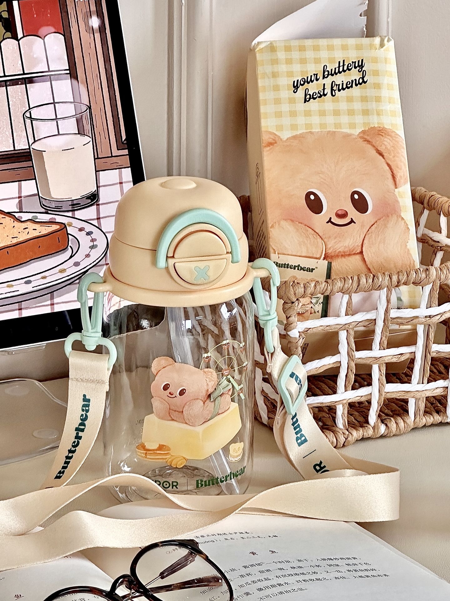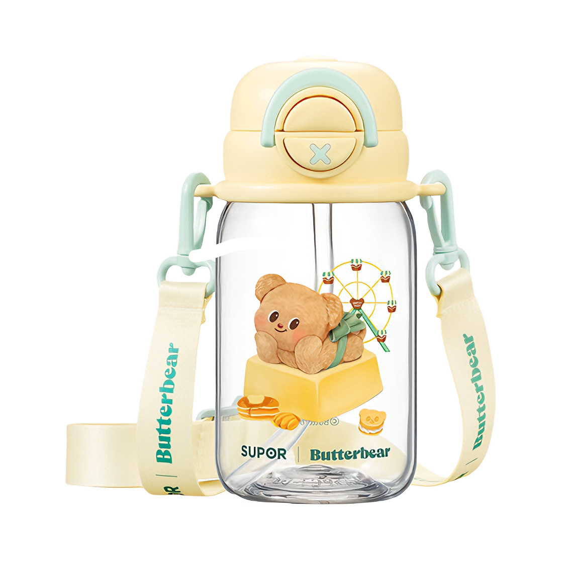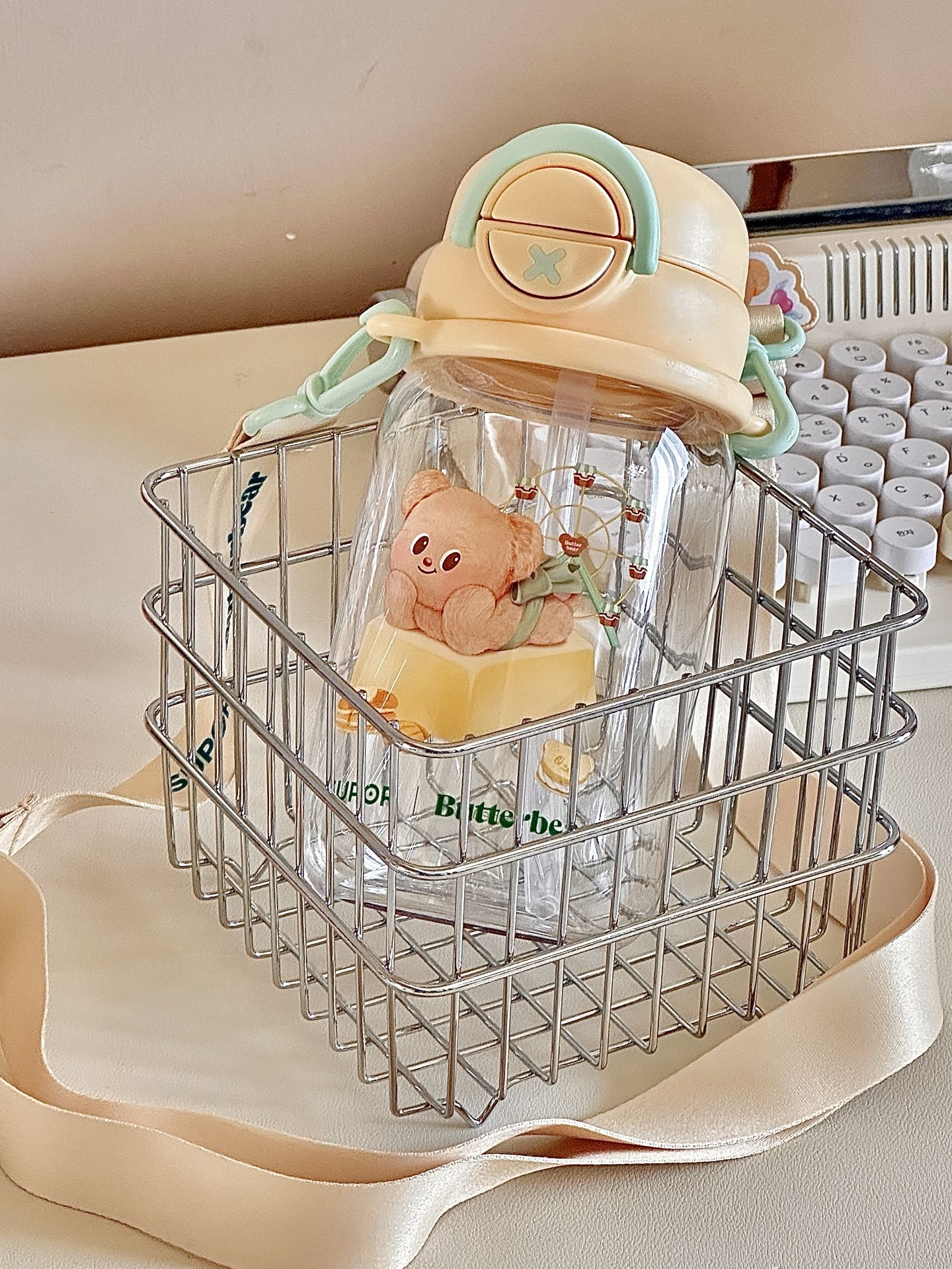 #一件入春的多巴胺好物 给你们展示一下我的黄油小熊水杯 夏天放上冰块🧊真的拒绝不了啊 而且我试过怎么晃都不漏水 我还专门选了这种背带款式 能够背着出门,用吸管喝一大口冰水 这高温天也太太太太太舒服了吧! #五一出游好物 #可爱卡通高颜值水杯 #适合做礼物的宝藏水杯 #夏日标配水杯