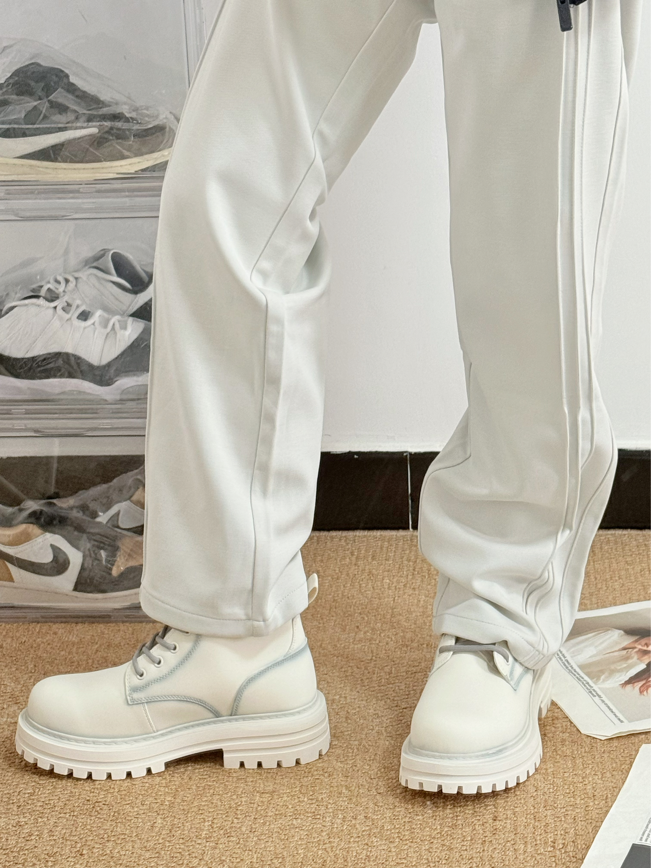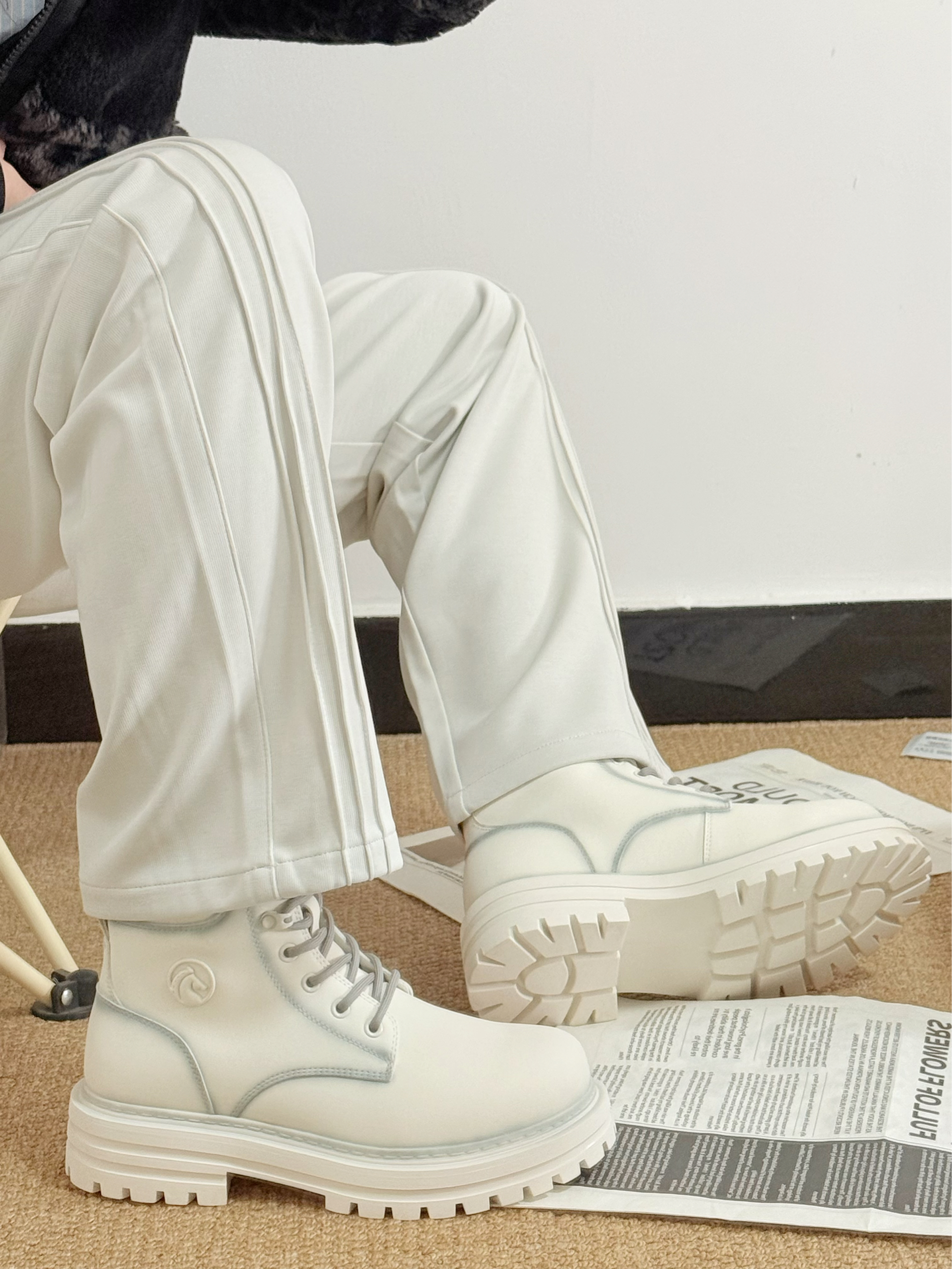 是到了交出我宝藏靴子链接的时候啦😎! 这双🧊冰白配色的马丁靴 在冬季穿妥妥的氛围感宝藏🎁 ⭐(✪▽✪) 🎨冬日穿搭我喜欢浅色裤子👖搭配这双浅色马丁靴👢 会有一丝丝冬季的冰冷感💯 ˃ʍ˂˃ʍ˂˃ʍ˂ 中筒靴相比较于低帮的来说 我个人感觉❄️保暖性会更好一些些~ 比着高帮会更轻便一些 😁 冬季要有一双帅气的鞋子朋友喔💗