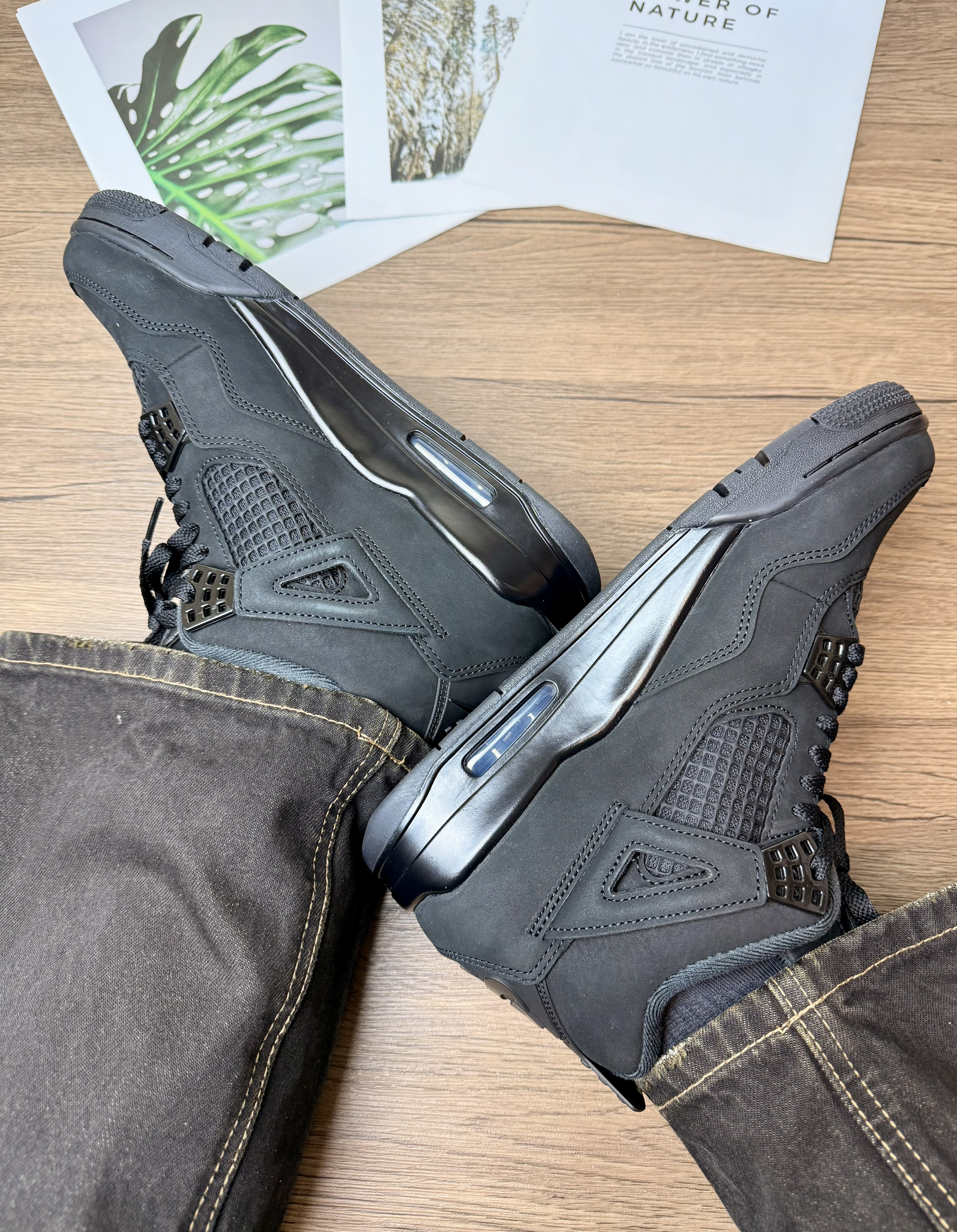 🤔话说复古的正代那么多,我却独爱AJ4这个鞋型,最近发现经典的AJ4黑猫配色也复刻回归了! 🤨那我必须第一时间搞来评测一下了,拿到手后确实被这个黑武士风格帅到了! 😍首先,先说优点,一黑到底,显高百搭,通体黑色,脚感扎实,视觉上还能拉长腿部线条。不管配黑色牛仔裤还是灰色运动卫裤,都能压得住秋冬厚重的外套,比如羽绒服或者牛仔夹克,整体很协调。 🥰其次,鞋面用的是麂皮材质,哑光的质感比普通皮革看起来更...