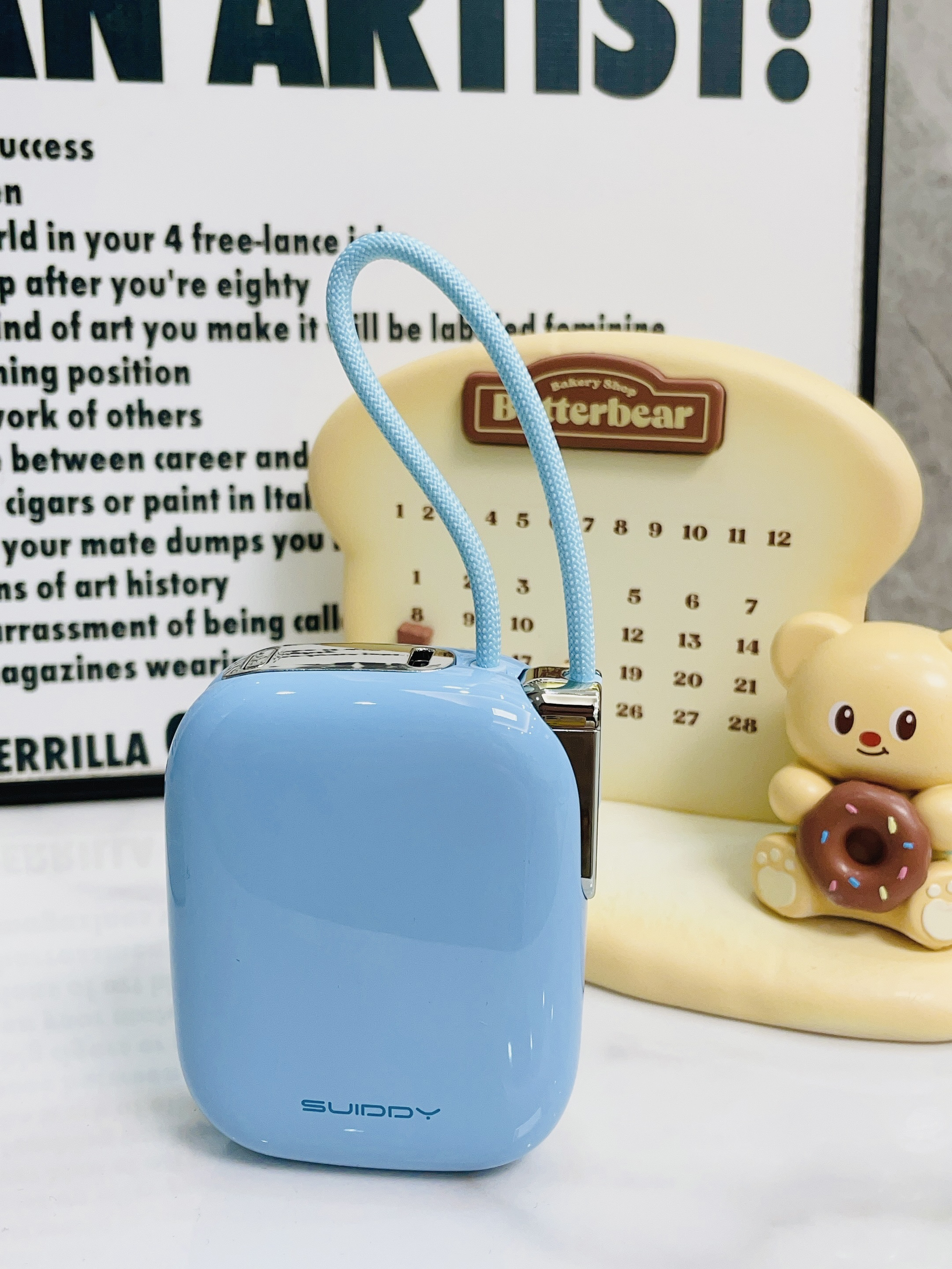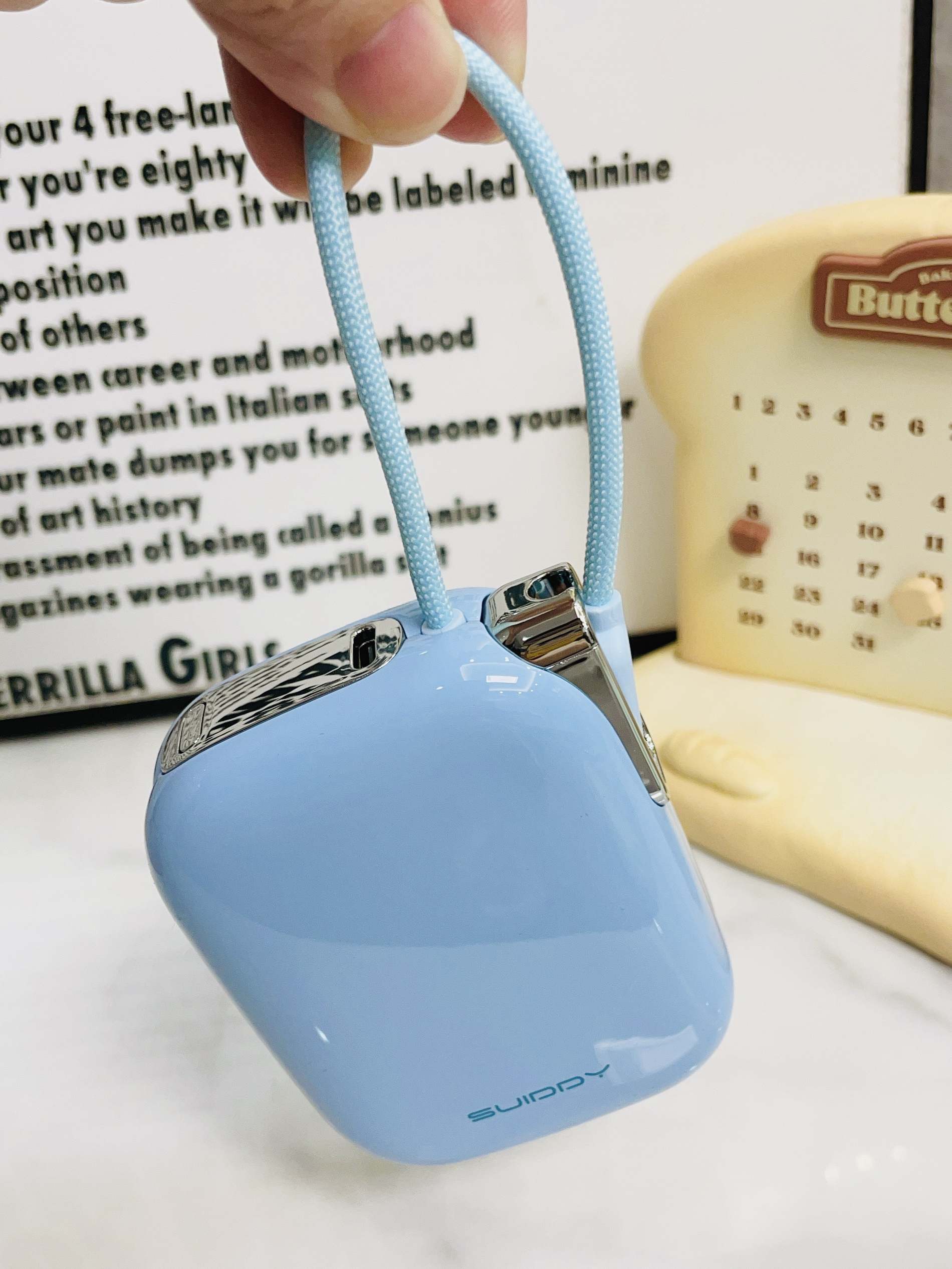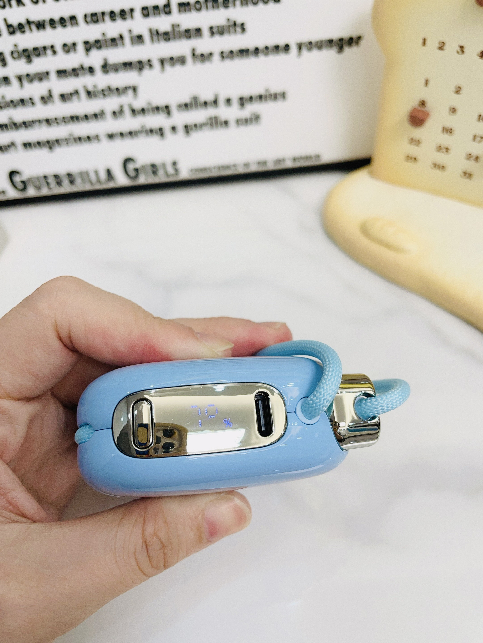 这不十二月啦又是年末的时候 我给自己安排了新的充电宝 这款充电宝蓝色好好看啊 双头数据线可以一次性充两个设备 我感觉还蛮方便的 1w毫安的容量能用蛮久的 小小一个 出门携带放包包都可以 盒子包装 圣诞用来送礼也可