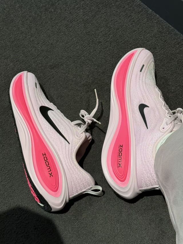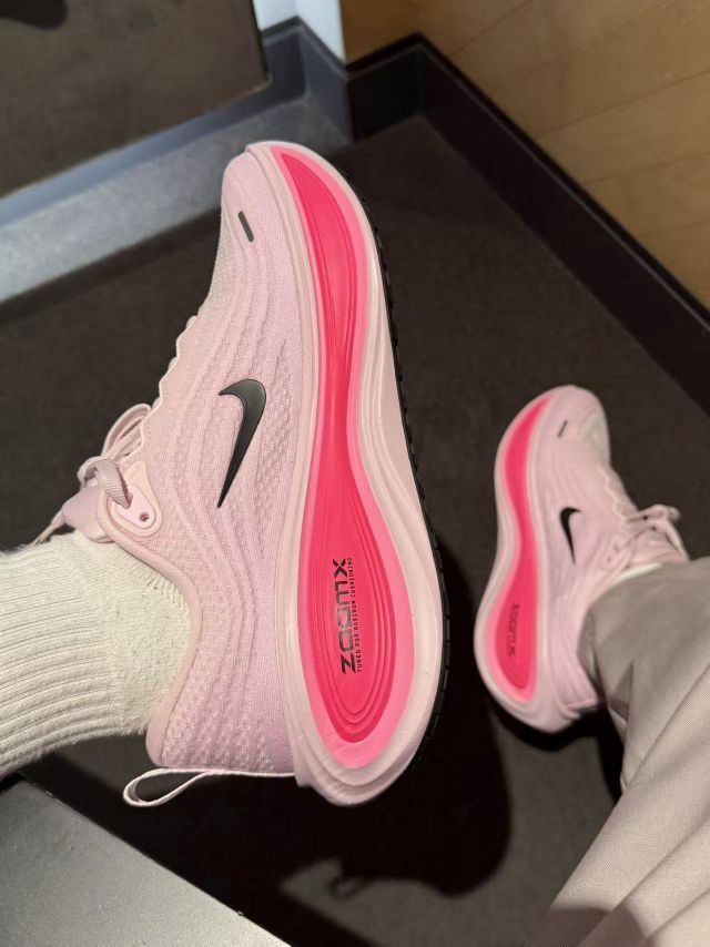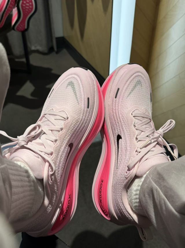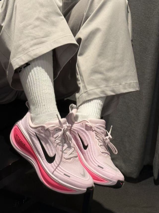 谁能拒绝一双粉粉嫩嫩的Nike跑鞋?浅粉鞋面搭配荧光粉中底,视觉冲击感拉满,ZoomX的缓震科技让每一步都像踩在云朵上,颜值和实用性直接拉满!