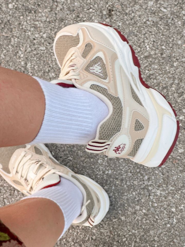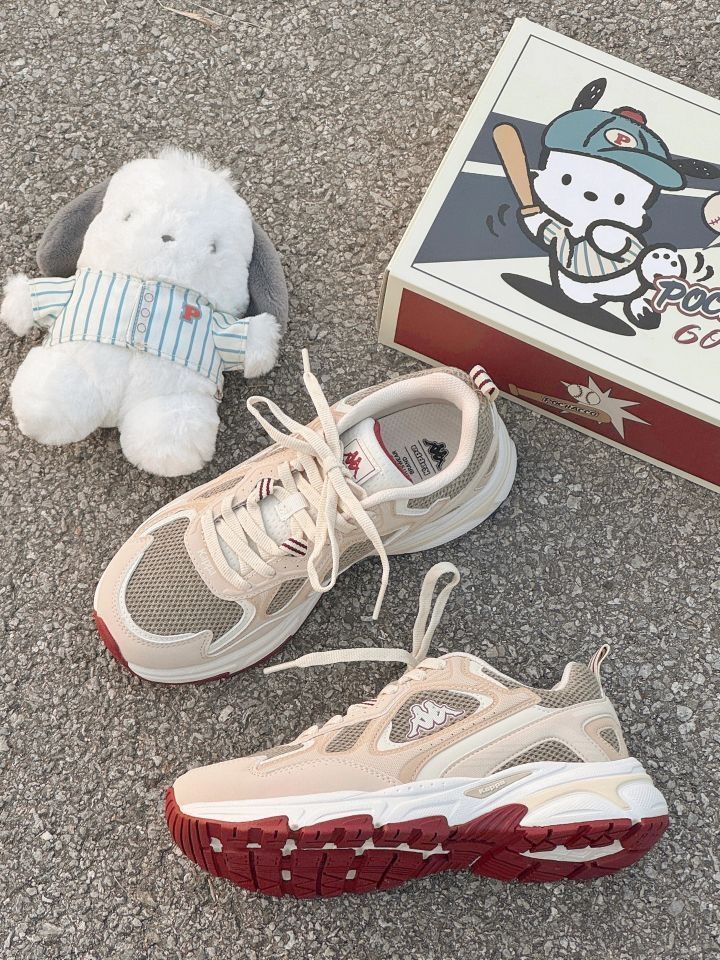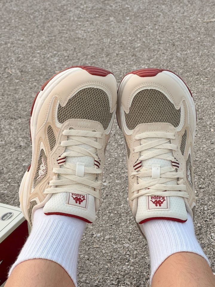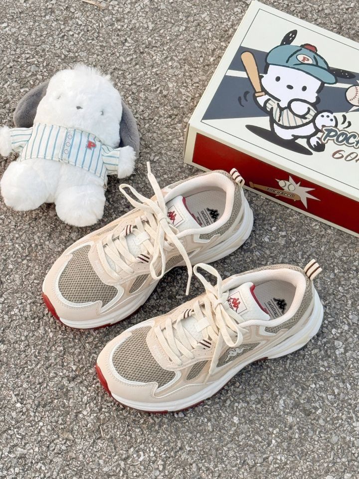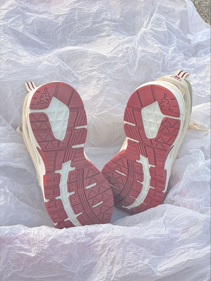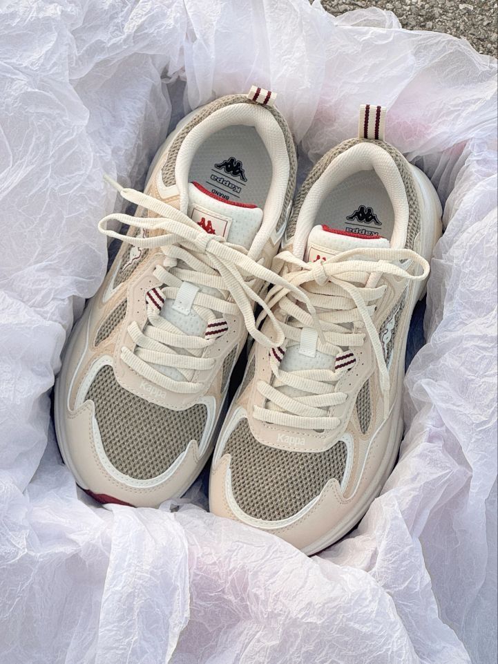 这双Kappa老爹鞋直接戳中我的心巴! 奶杏+浅褐的低饱和配色,自带“韩系松弛感”滤镜✨ 网布+皮革拼接,脚感软到像踩棉花,厚底悄悄拉腿还不累脚~ 酒红小细节撞得超有质感,搭白袜秒变街头潮人,舒适度颜值双在线,这波入股不亏!