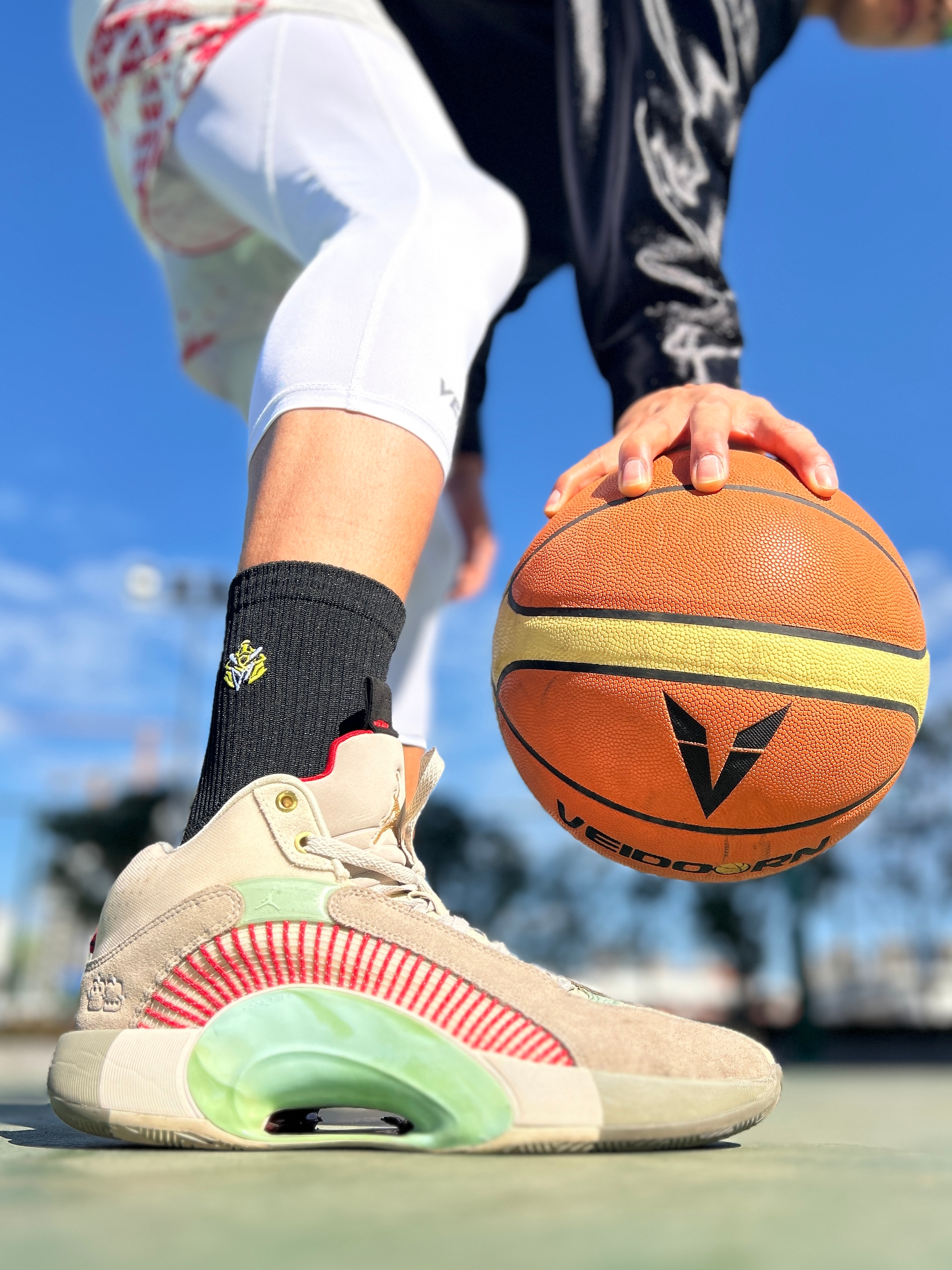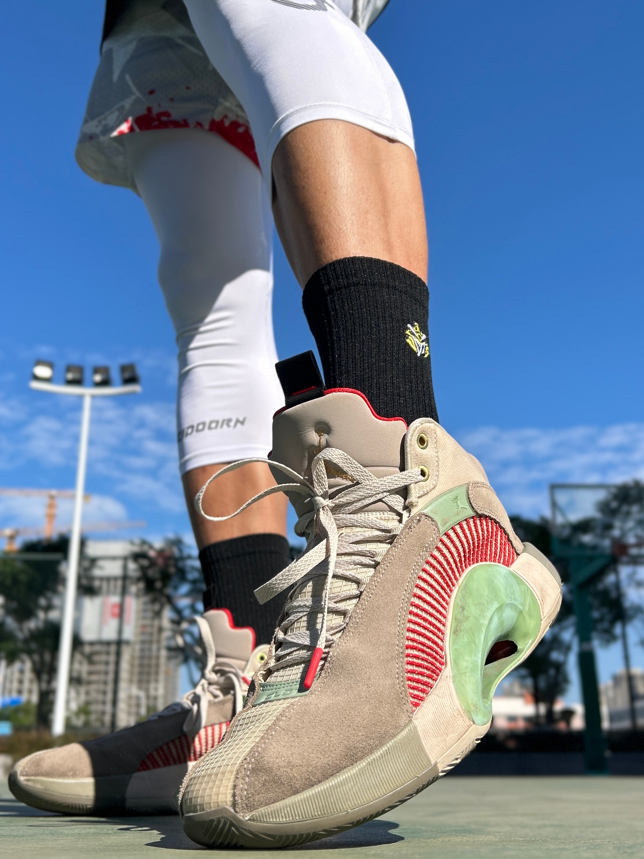 hi~是18啊! 入秋后球场风一吹就透, 这双#维动 VEIDOORN 高筒袜是真的舒服😁🌬️加厚的袜帮暖乎乎的不灌风。 🏀急停变向时,毛巾底牢牢贴住球鞋, ⛸️脚底没的防滑纱效果真不错, ⭐脚背上还有透气网,打完半场也没闷汗, ✨高强度训练两个多小时,袜子还是干爽的, 🌞耐磨度也在线,秋冬实战穿它太稳了! @维动穿搭助手 #维动VEIDOORN #维动甲胄篮球袜 #潮星运动计划 #篮球热力追...