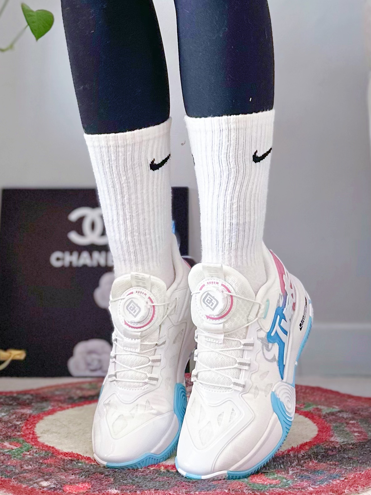 太喜欢这个冰淇淋配色啦 拿到手就迫不及待的穿上啦📸 蓝粉配色果然是球场上最靓的仔 鞋底有支撑,而且包裹性真的好✅ 运动时防滑耐磨 日常出街颜值也是杠杠哒✌️ 旋转扣免去系鞋带的困扰 真是各方面性能都满分💯 #艾弗森篮球鞋 #打篮球当然要穿实战鞋 #篮球热力追踪 #硬核球鞋实战派 #书包里的篮球鞋