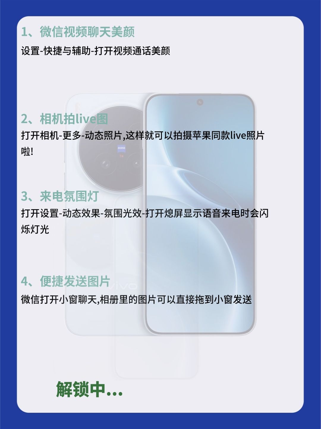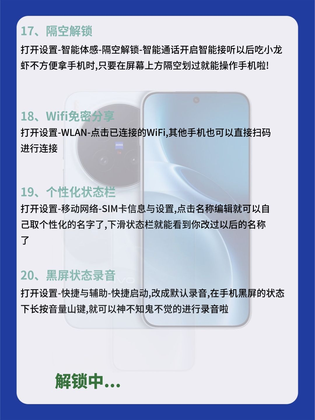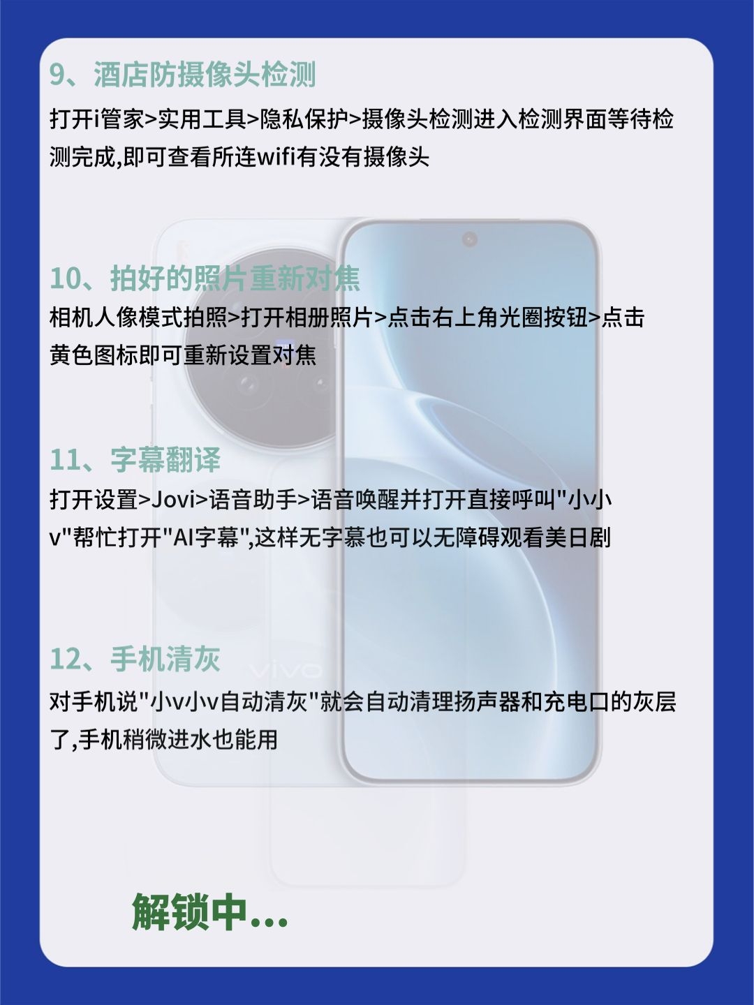 99% vivo 党都不知道!这32 个隐藏功能,快来试试吧! 宝子们!用 vivo 这么久才发现,手机里藏着超多宝藏功能!以前真是白用了… 今天把压箱底的 32个隐藏技巧全扒了!从刚需到彩蛋,每一个都超实用 【效率开挂】:三指截屏 + 花式裁剪,文档批注直接写,跨设备复制粘贴超丝滑,办公学习直接提速! 【实用刚需】:照片一键消路人,隐私保护锁重要文件,酒店防偷拍检测神器,日常用着超安心!...