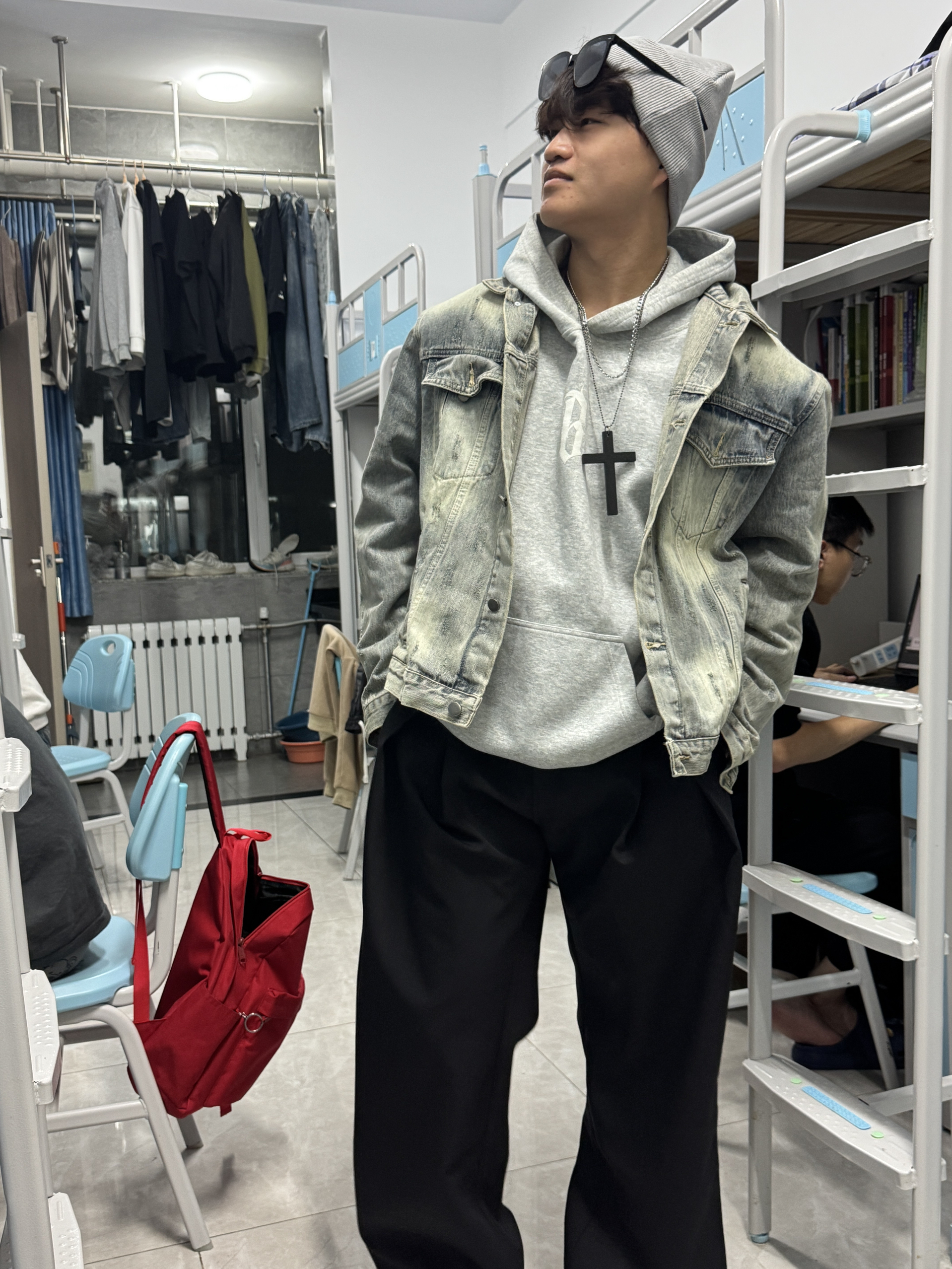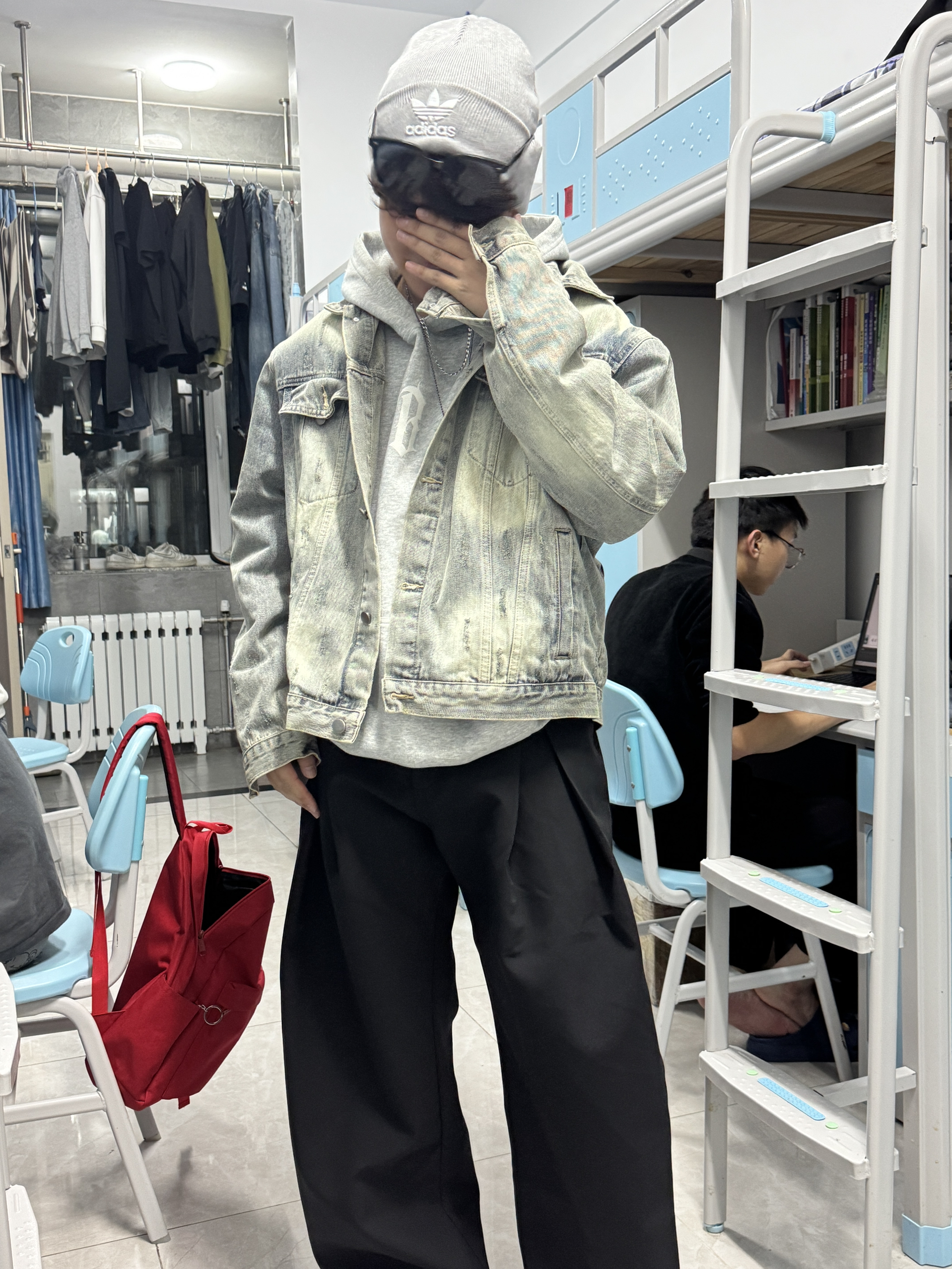 今天在水母馆被朋友抓拍,满屏都是“舒服到想焊在身上”的信号📸 这条黑色直筒微喇裤真的赢麻了: ▪️版型是那种“腿在裤里晃”的松弛感,但不会垮得没型 ▪️黑色自带显瘦buff,微喇裤脚刚好盖过鞋帮,悄悄拉长比例 ▪️搭简单T恤+小白鞋,随便一站都是“毫不费力的好看” 果然好裤子的标准是:既能装下逛展的步数,又能装下镜头里的氛围感✨