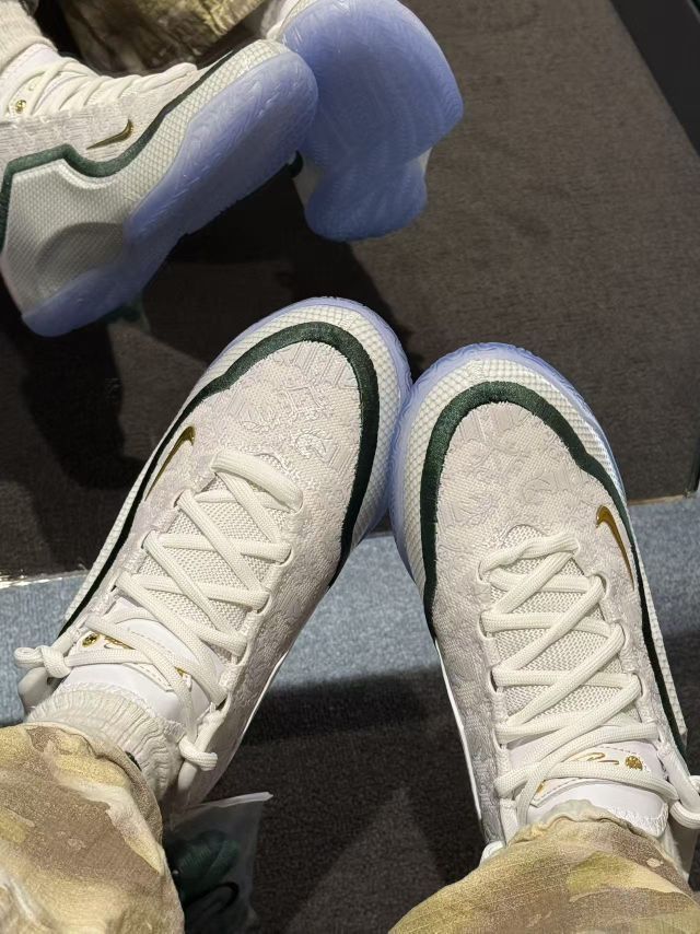 一眼沦陷的LeBron 20白绿金!白色鞋身搭配墨绿线条,金色Swoosh做点缀,质感和颜值双双在线,上脚既百搭又有辨识度,实战党和收藏党都冲就完事了!