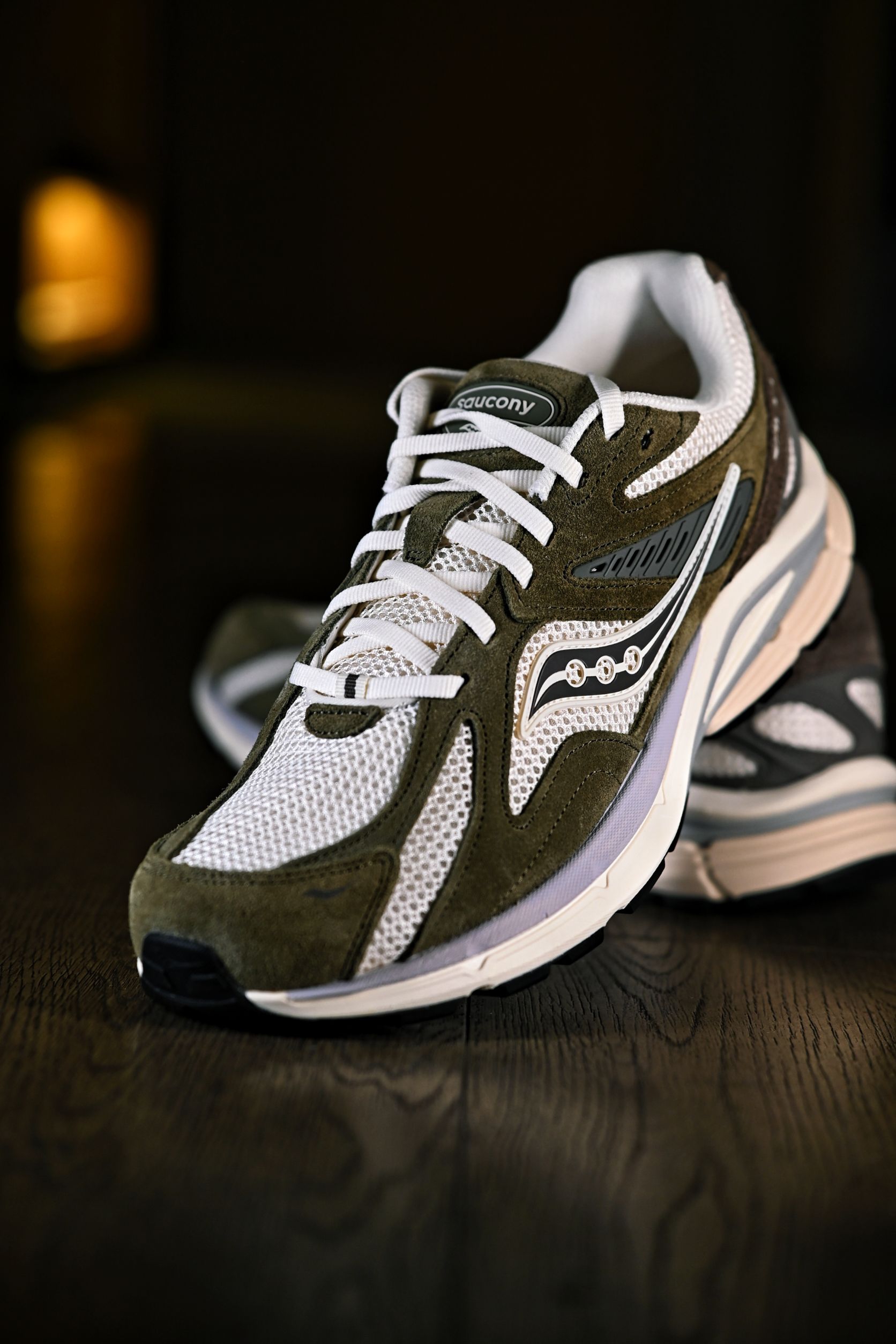已经是不知道多少次推这双Saucony的K4了 日常通勤穿真的很爽😋所以趁上回活动又买了一双,我对复古慢跑鞋的确没啥抵抗力 每天都是一条运动裤加一双慢跑鞋 墨绿色的麂皮和白色的网面看起来还挺搭的,加上辨识度极高的河流标 整体看起来非常清爽 三四张的价格都是蛮值的,尺码方面咱们正常选择即可