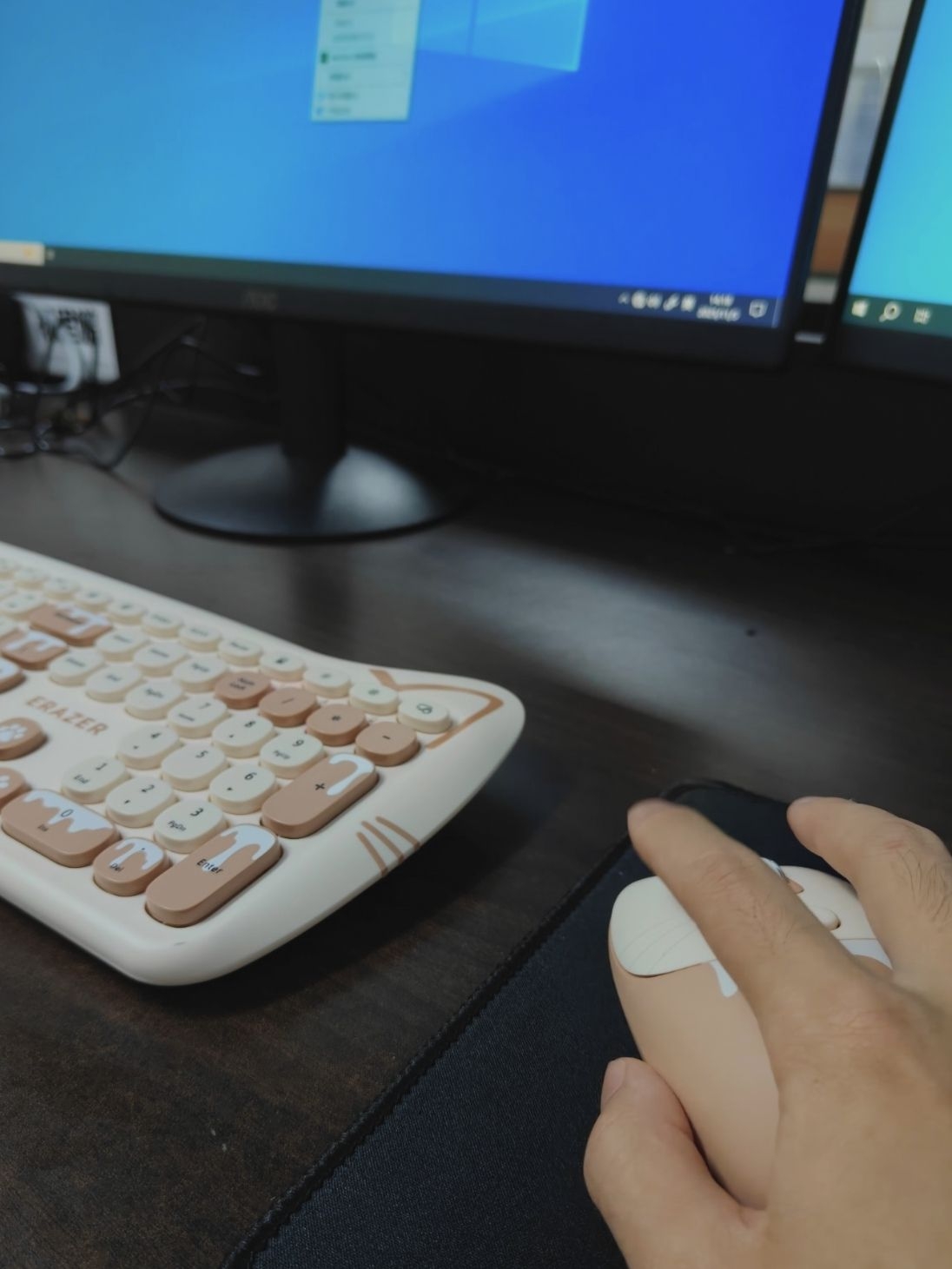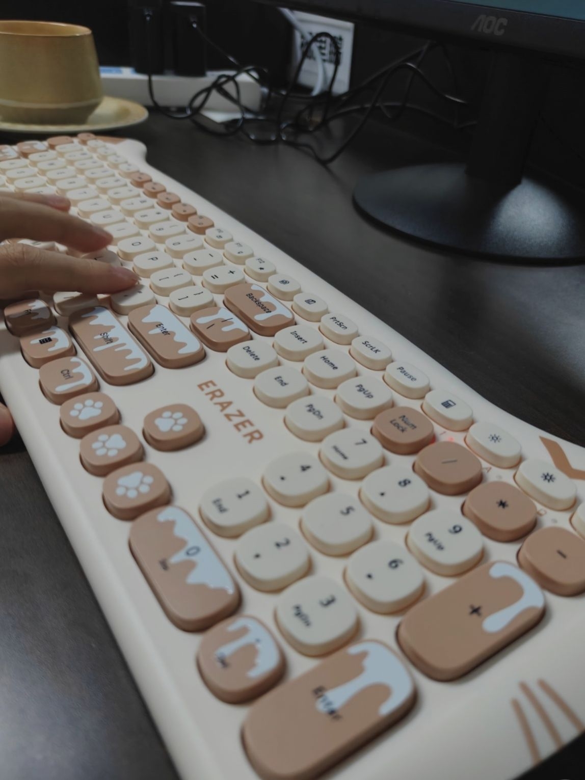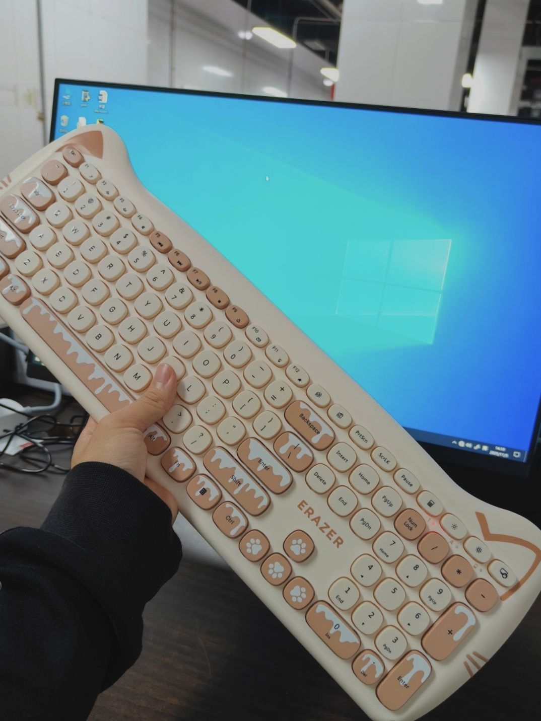 ⭐兄弟们,这款联想家的键盘⌨️是真的好懂我们的审美🌸,冰淇淋的配色好好看呀🥰,还有两个猫耳朵🐈 ✅他是电池款的🔋,我放工位用的不多,用一学期是能用过去的😊,如果正常每天都要使用,大概能用一两个月 ✅他的声音也特别小,敲击感是木质感🌴,中午或者晚上用来办公作业都不怕打扰别人,如果用来玩游戏的话电竞感不强📱 ✅虽然是USB接口连接的,但是反应也挺快⚡,正常看不出来有延迟,而且无线的用起来也不会显得桌面...