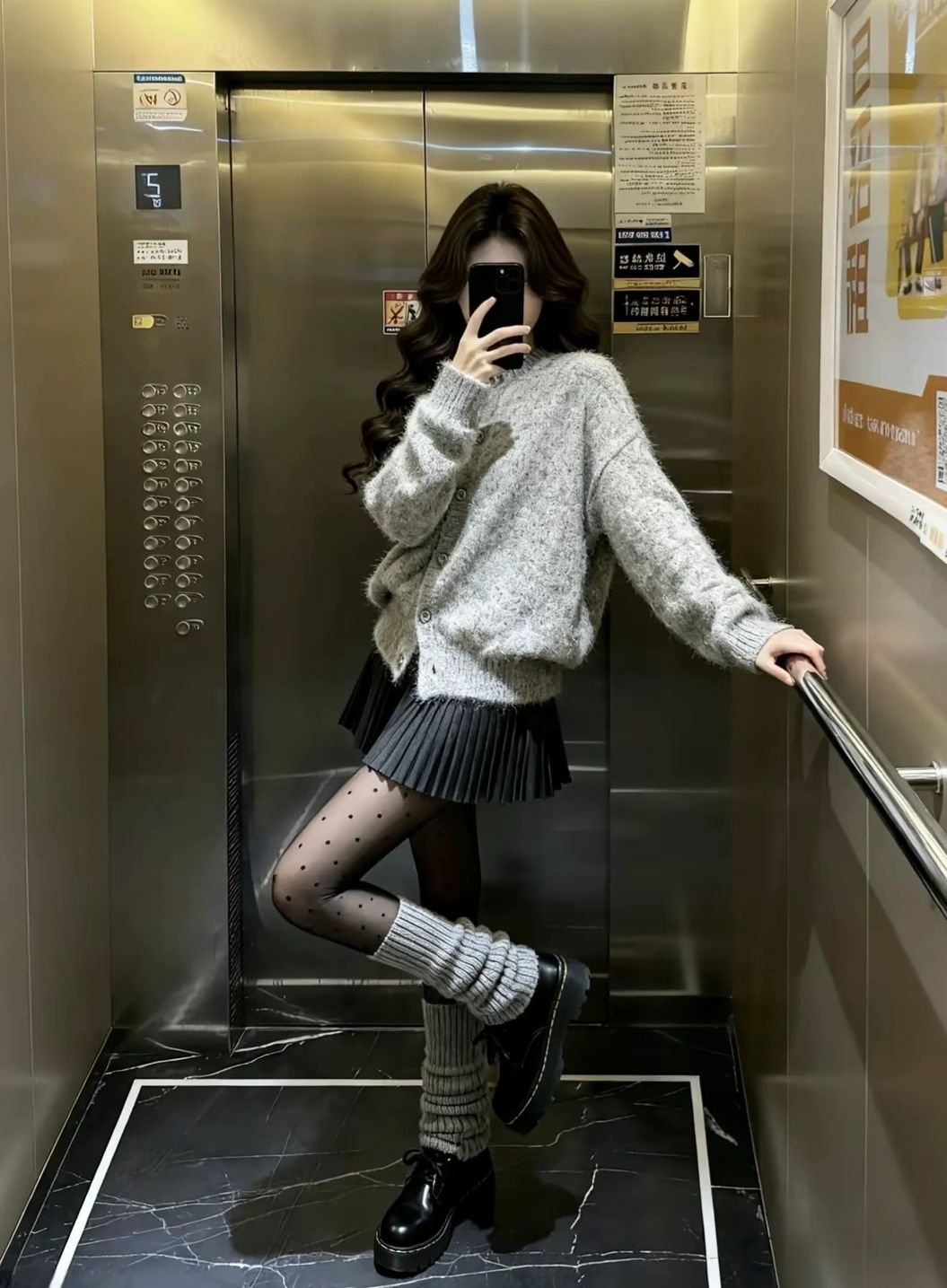 今天是被毛绒开衫绑架的温柔小偷👀 灰fufu软到想rua,搭百褶裙秒变甜妹 波点黑丝+堆堆靴是甜酷暗号 踩上厚底鞋直接把‘韩里韩气’焊在身上 电梯自拍都能出片,这穿搭公式我能穿到过年🧨