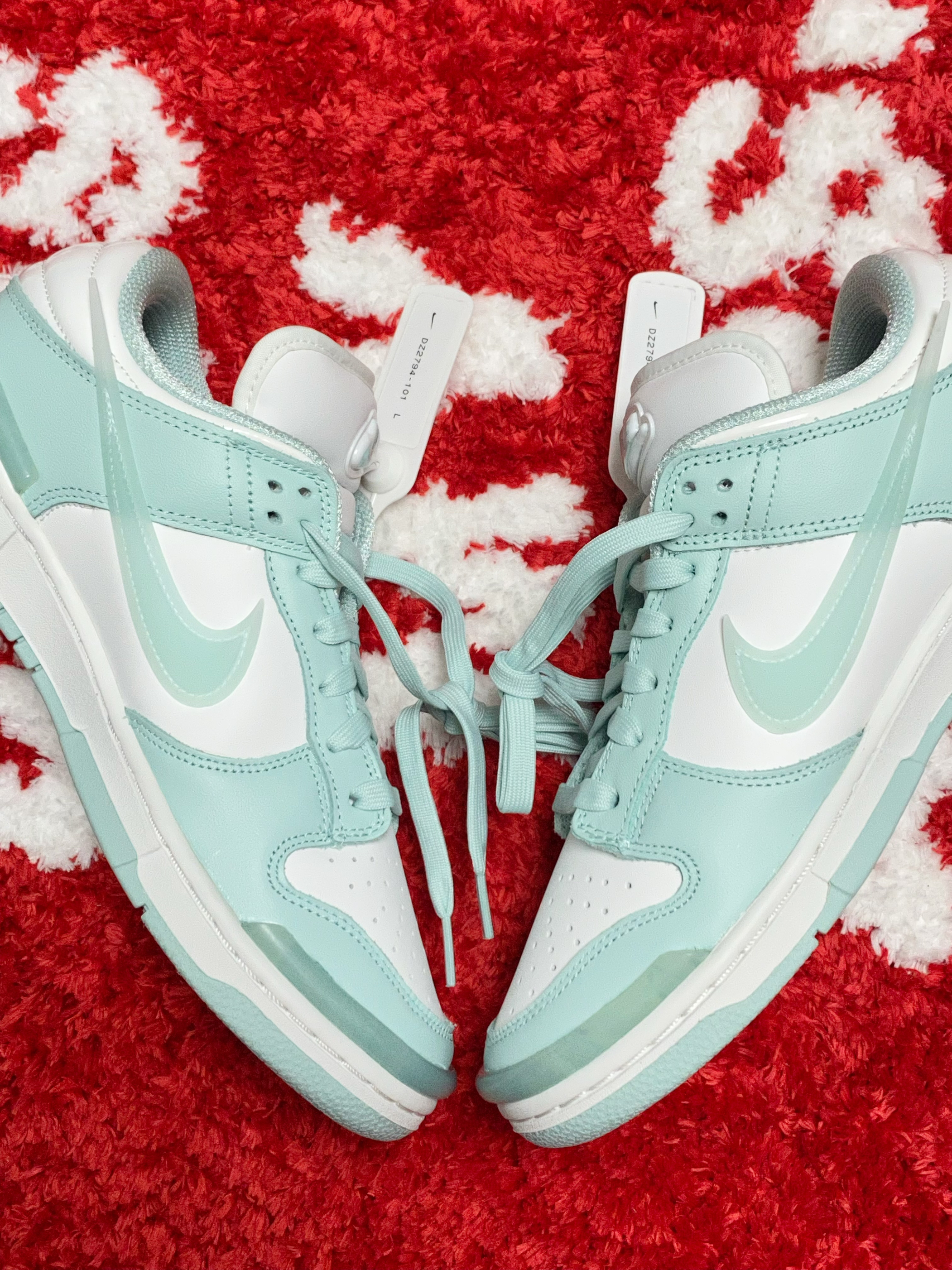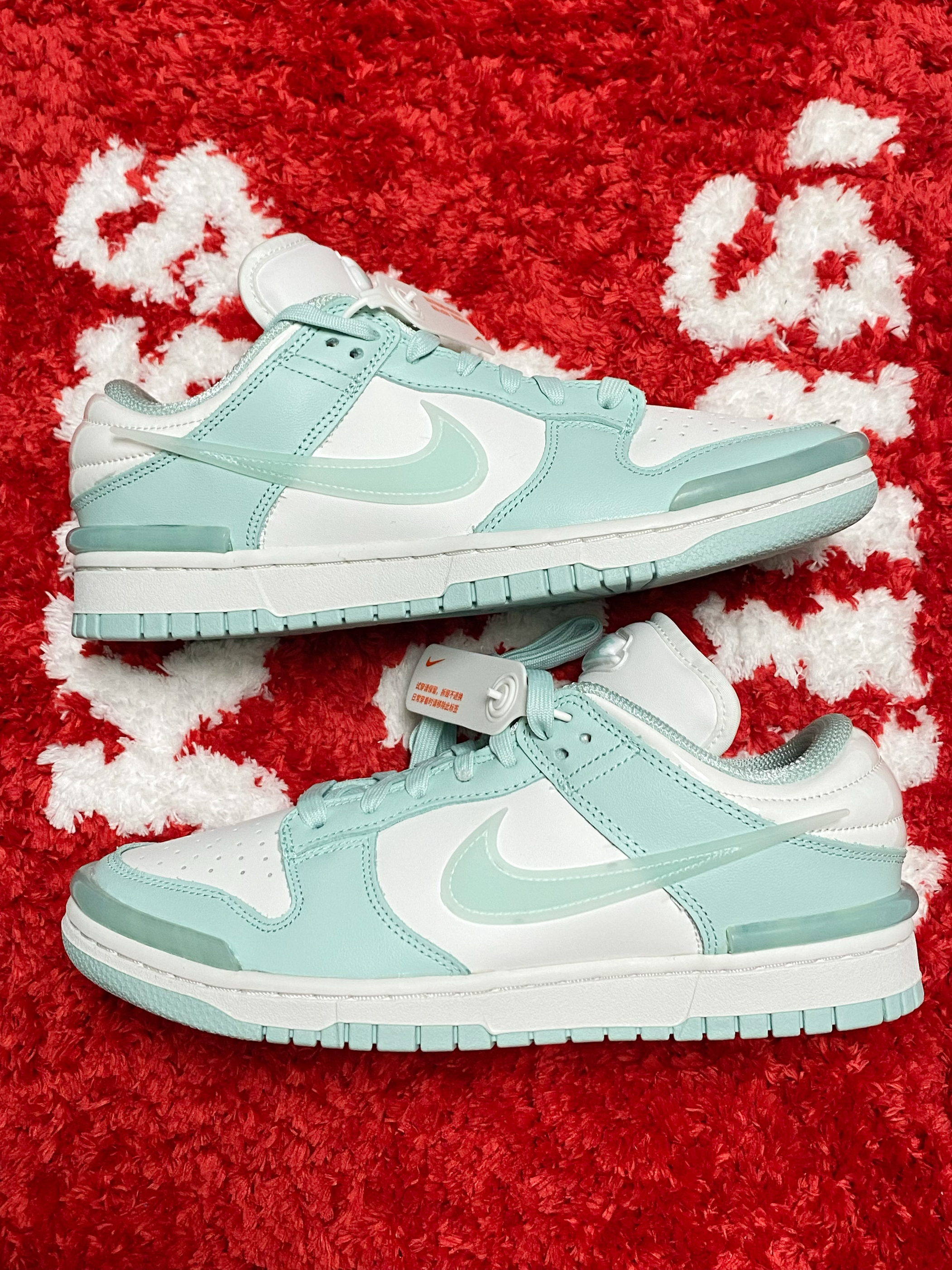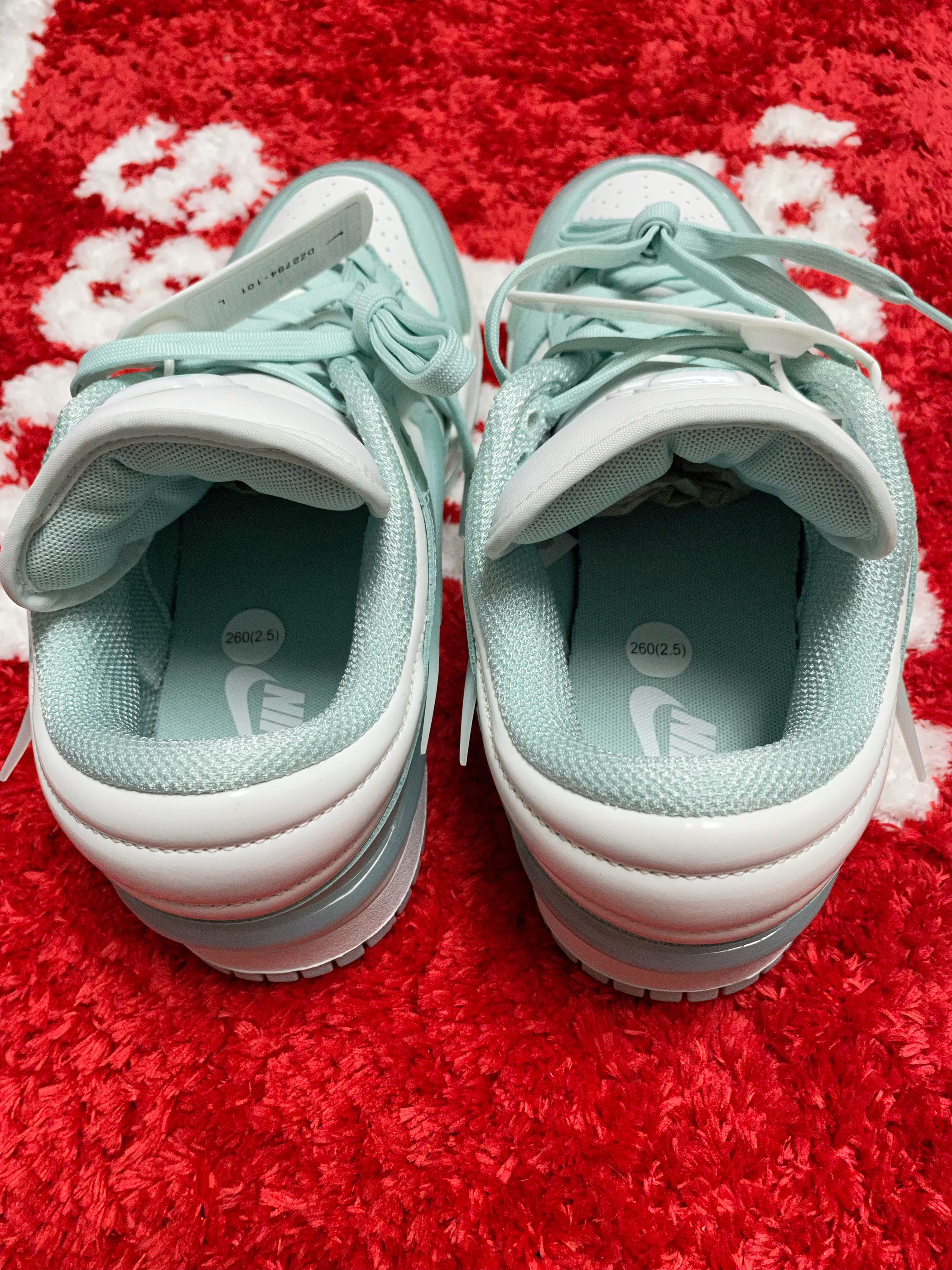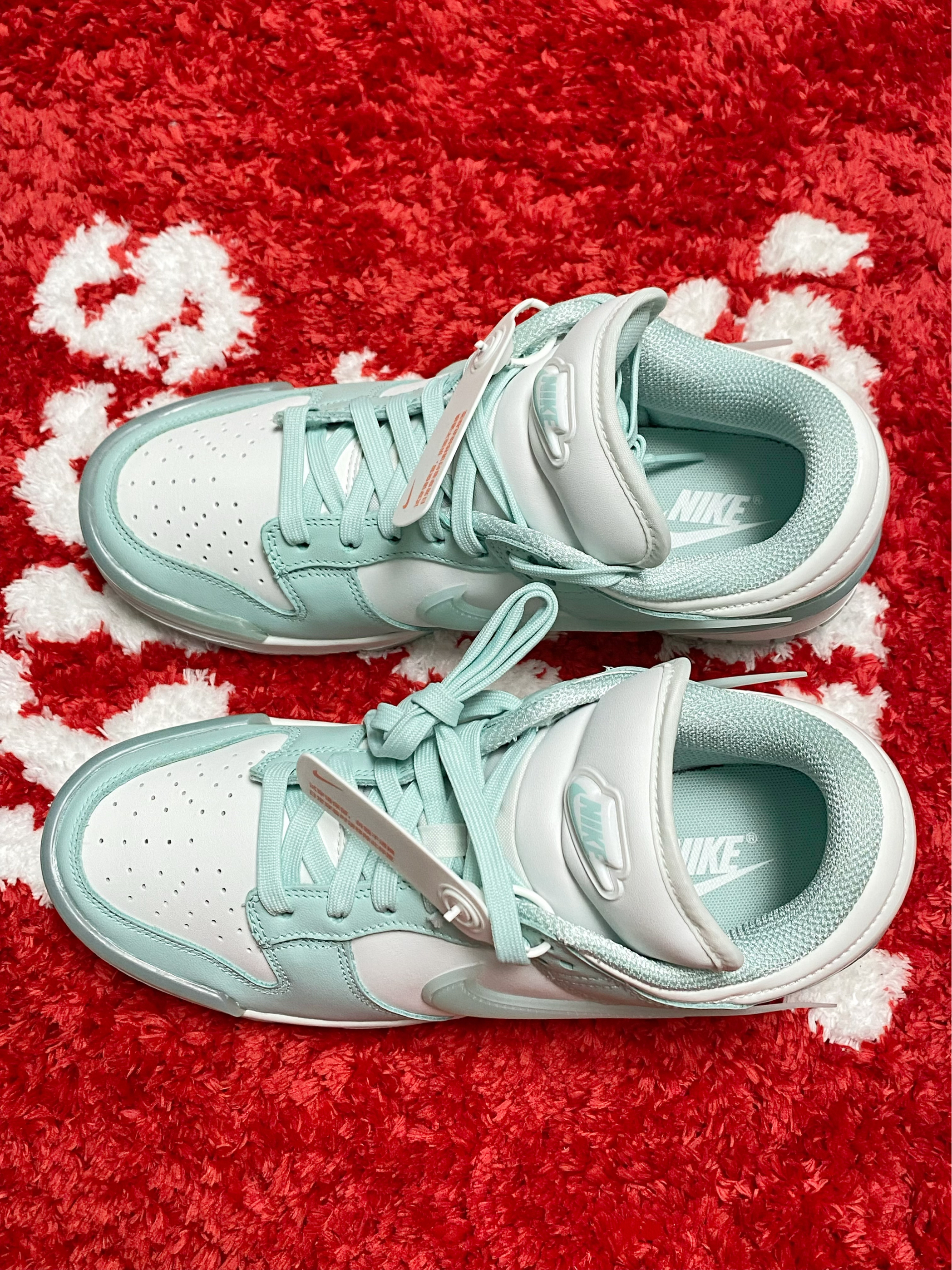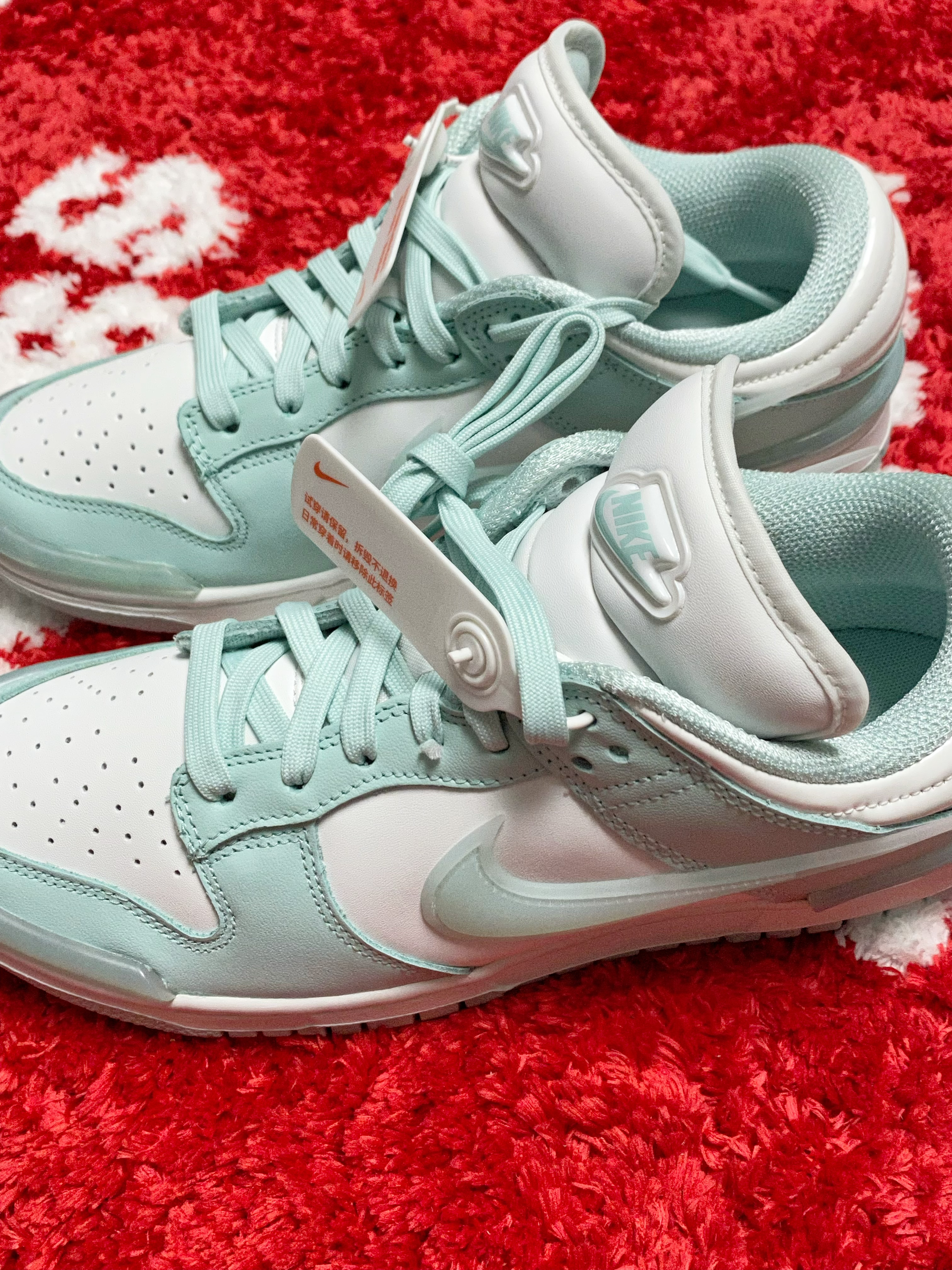 淡淡的像湖水一样的蒂芙尼蓝好漂亮 搭配白色看起来特别的干净清爽 侧边的Swoosh还是半透明的 鞋头做的圆嘟嘟的,鞋型也很有特点 上脚挺百搭的,女生夏天搭配裙子很显气质 全皮面材质打造,舒适耐穿也比较好打理 尺码不偏码,正常码选择即可 这样一双高颜值的Dunk,大家能打几分?