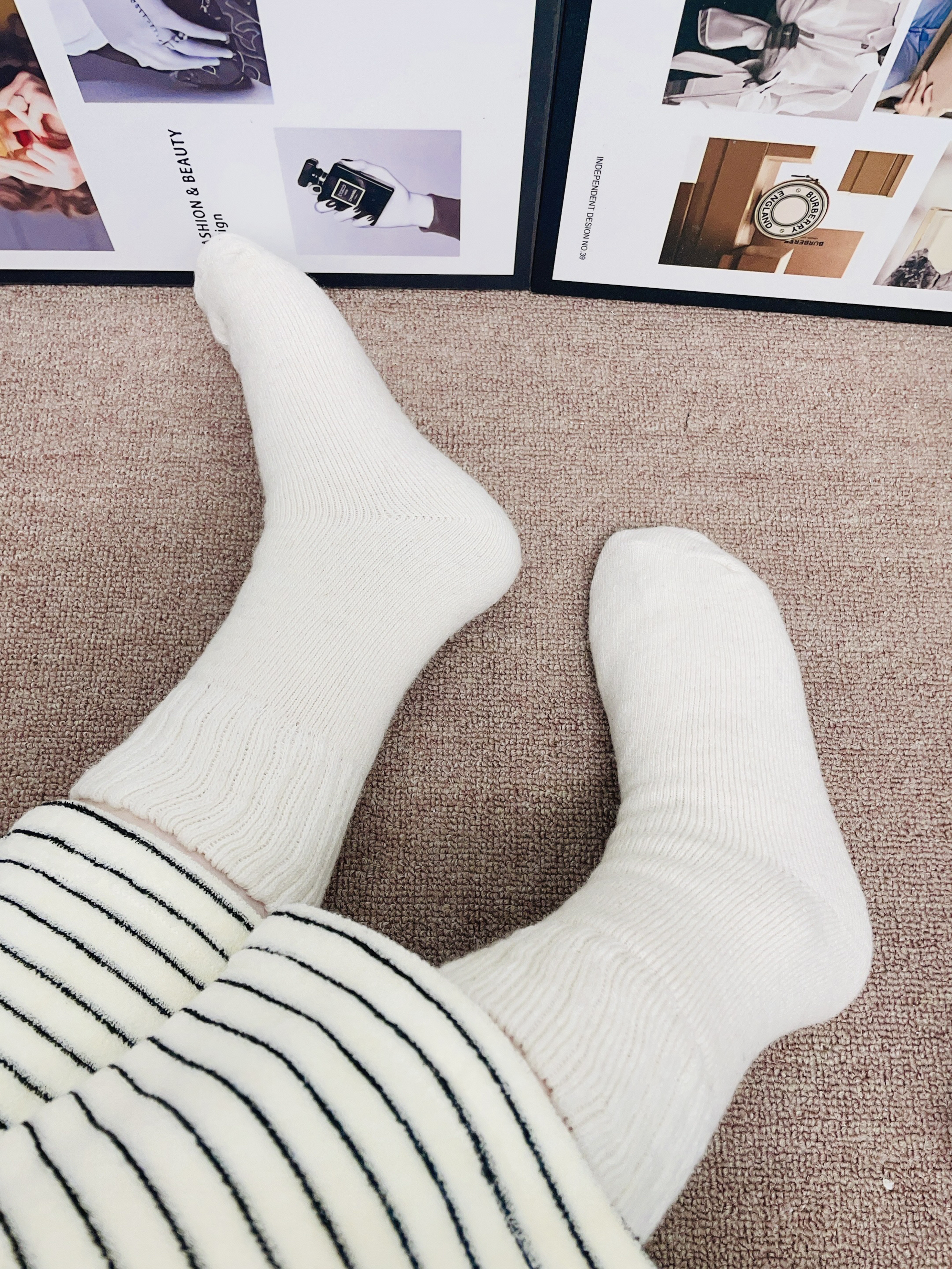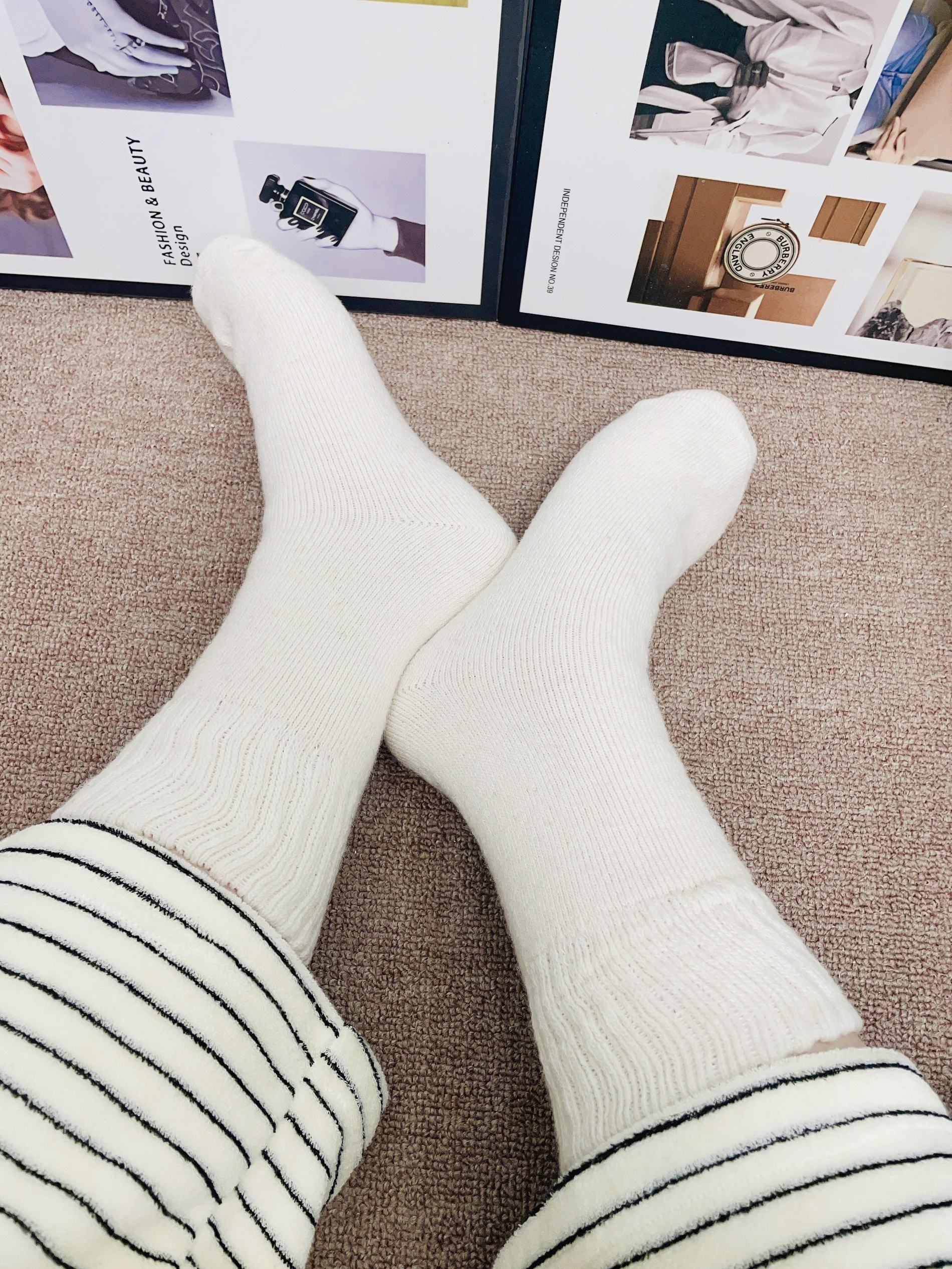 年末了又要开始新的一年 刚好这两天下雨了好冷 我给自己安排了新袜子穿 派米这款袜子白色简约都好好看 我用手摸着面料hin柔软好厚实 细节做的可以 我看着不会有多余的线头 上脚穿了我感觉蛮舒服的又暖和不用担心冻jio 日常通勤随便搭鞋子都不错