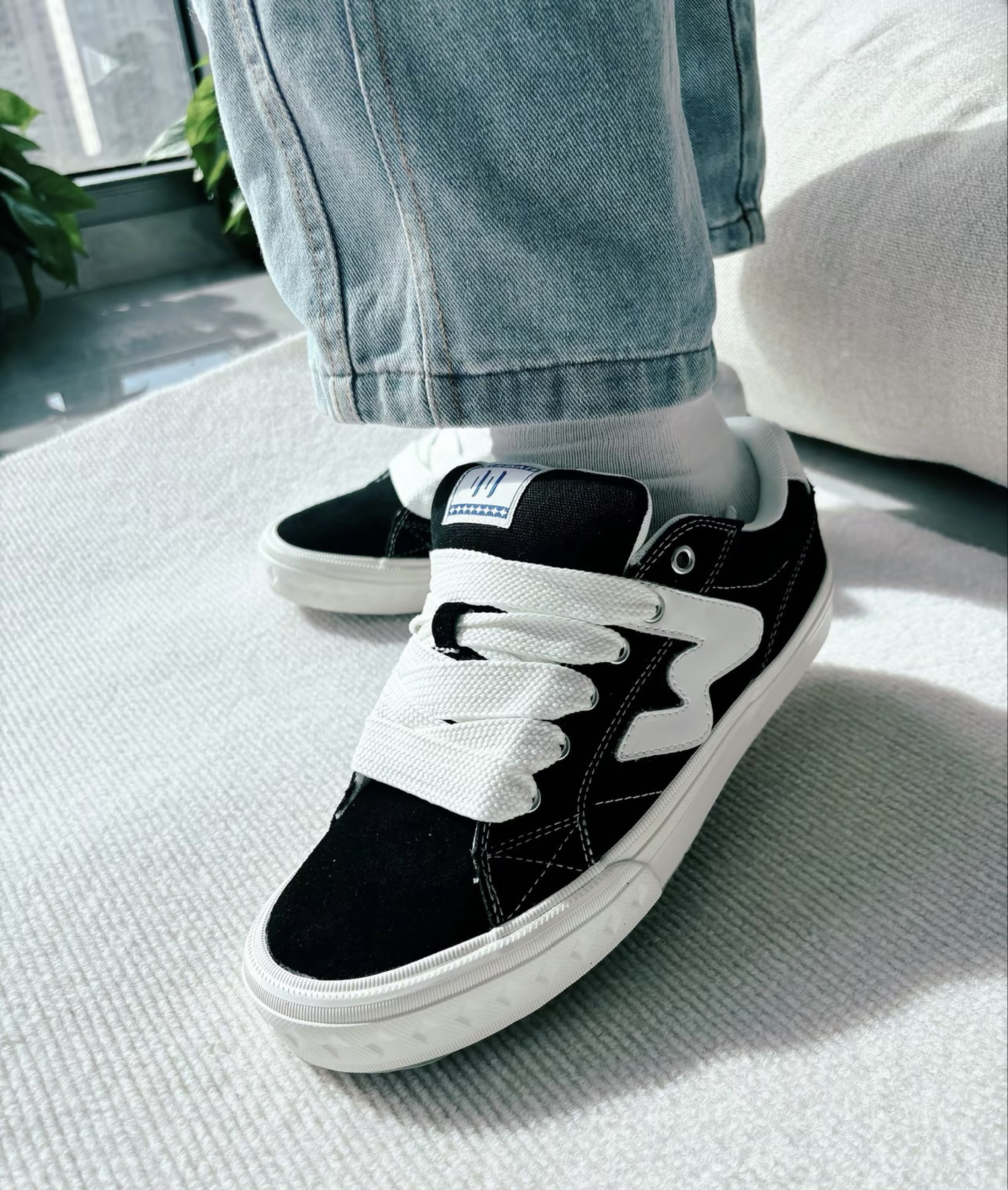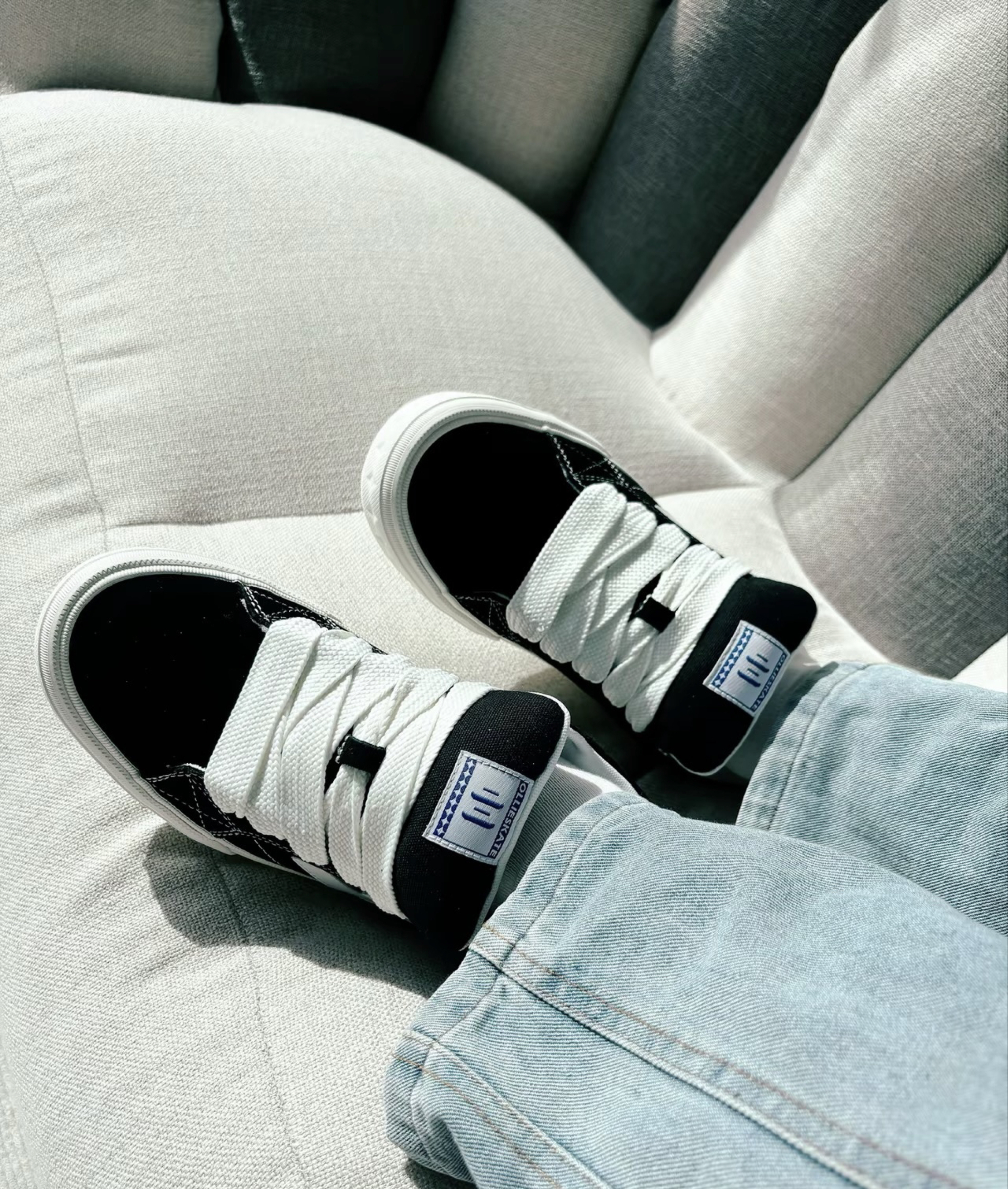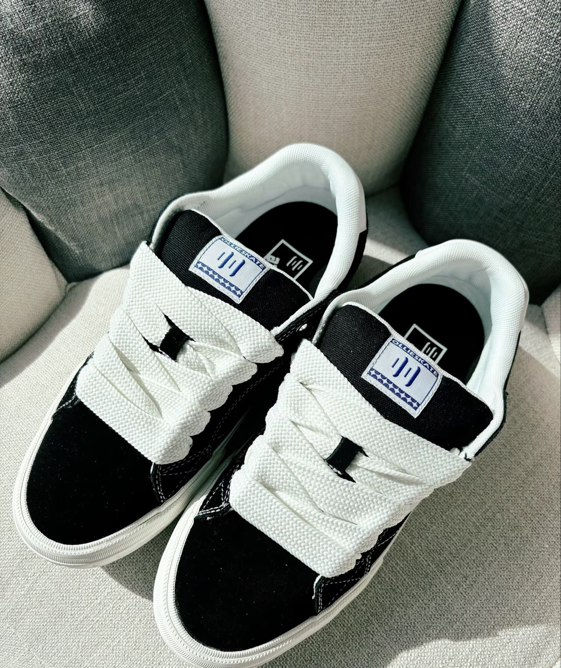 今天分享的是顽刻美式滑板鞋,黑白的搭配经典又好看!鞋面是皮革➕帆布的材质,上脚很舒服的同时还显质感!车线很工整,鞋侧和鞋舌的logo相呼应,走在路上辨识度满满!鞋垫踩上去很柔软,暴走一天都不会累!尺码的话大家正码正拍就可以!在日常生活中,我们无论是搭配运动裤还是工装裤都是不错的选择!