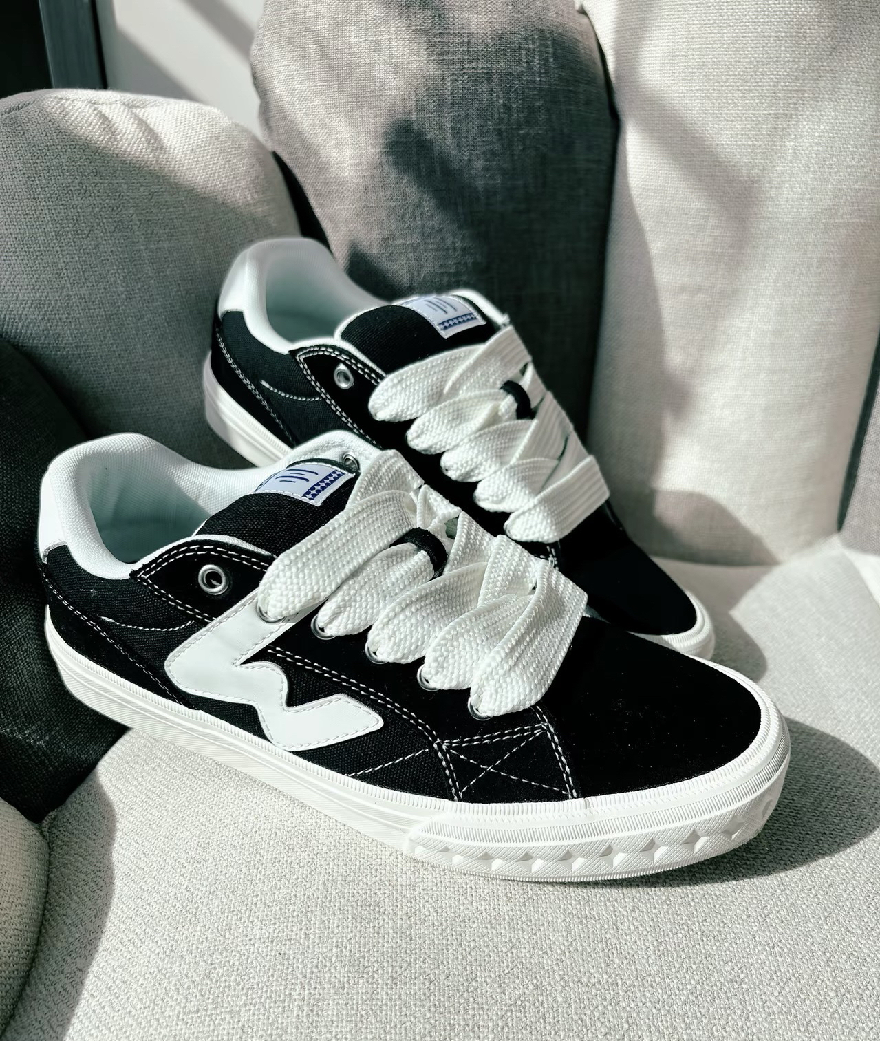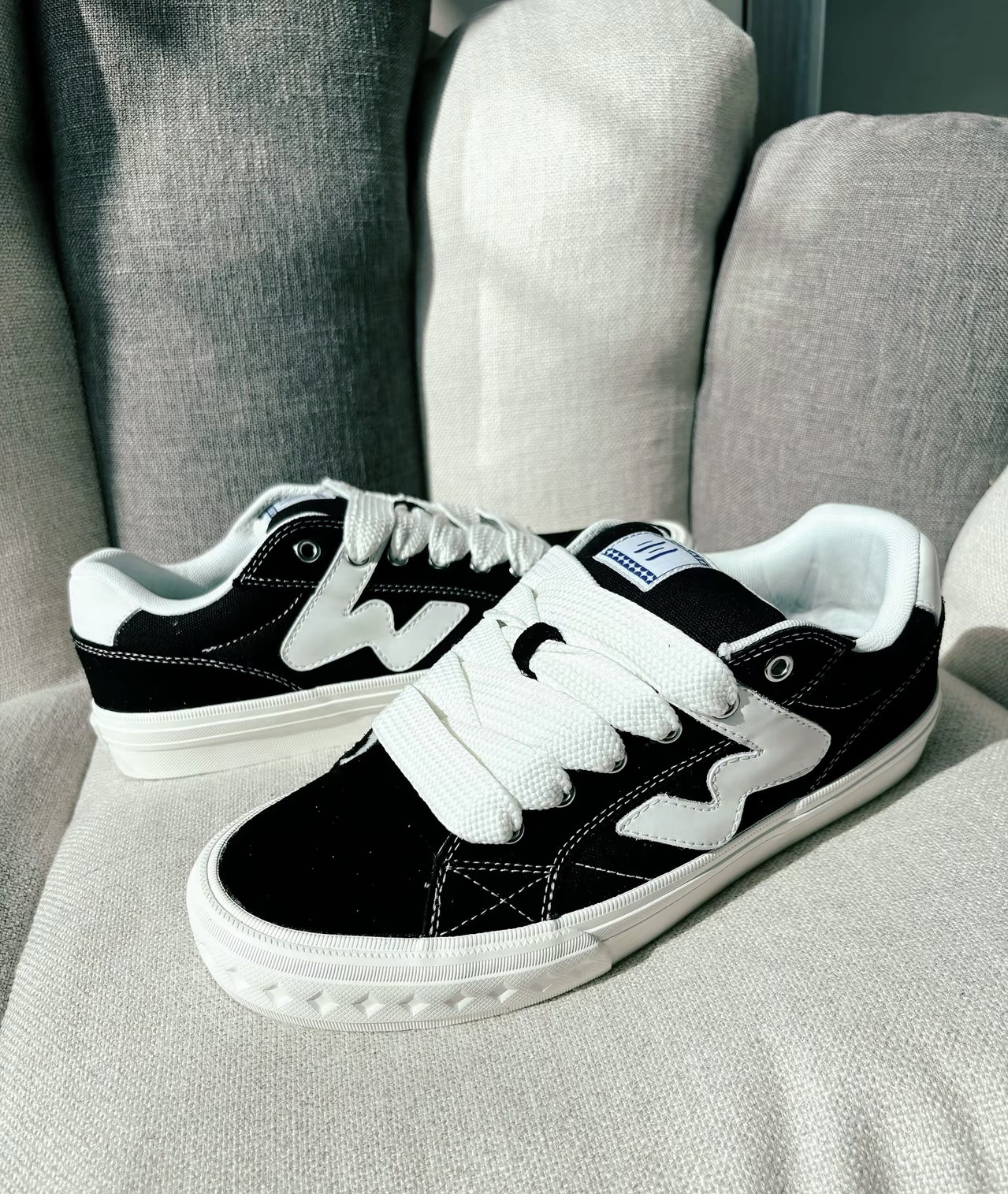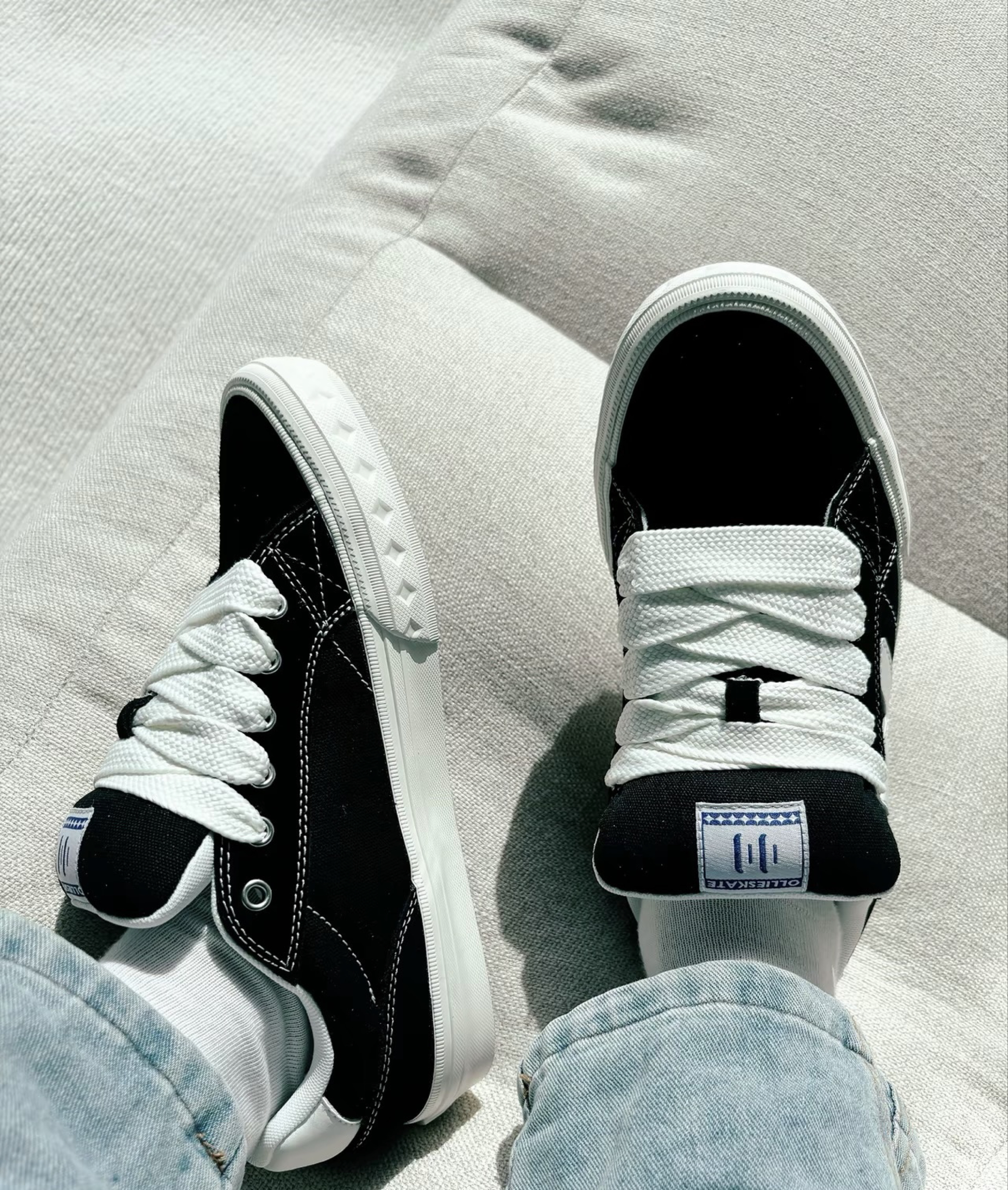 今天分享的是顽刻美式滑板鞋,黑白的搭配经典又好看!鞋面是皮革➕帆布的材质,上脚很舒服的同时还显质感!车线很工整,鞋侧和鞋舌的logo相呼应,走在路上辨识度满满!鞋垫踩上去很柔软,暴走一天都不会累!尺码的话大家正码正拍就可以!在日常生活中,我们无论是搭配运动裤还是工装裤都是不错的选择!