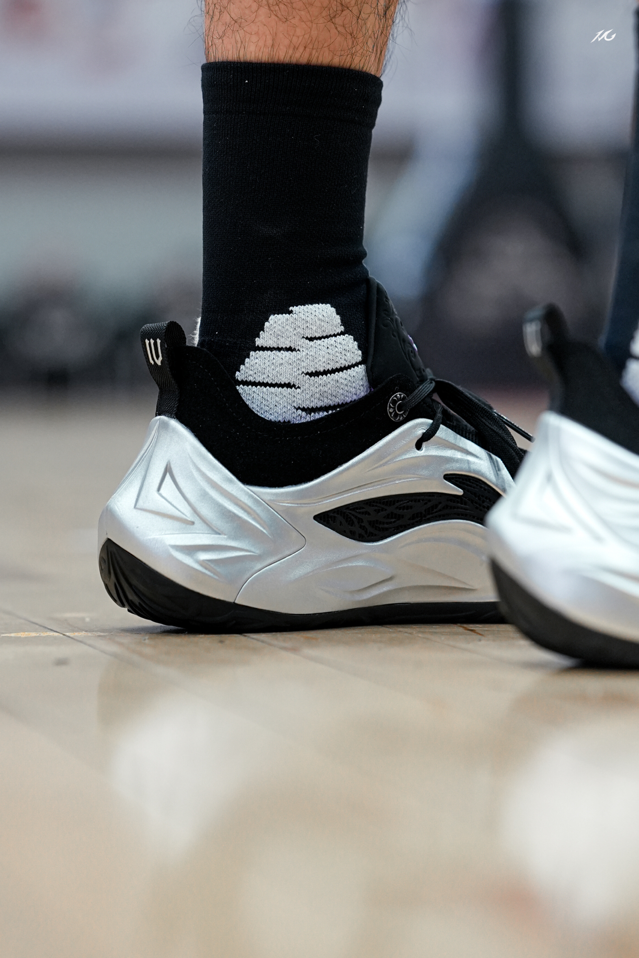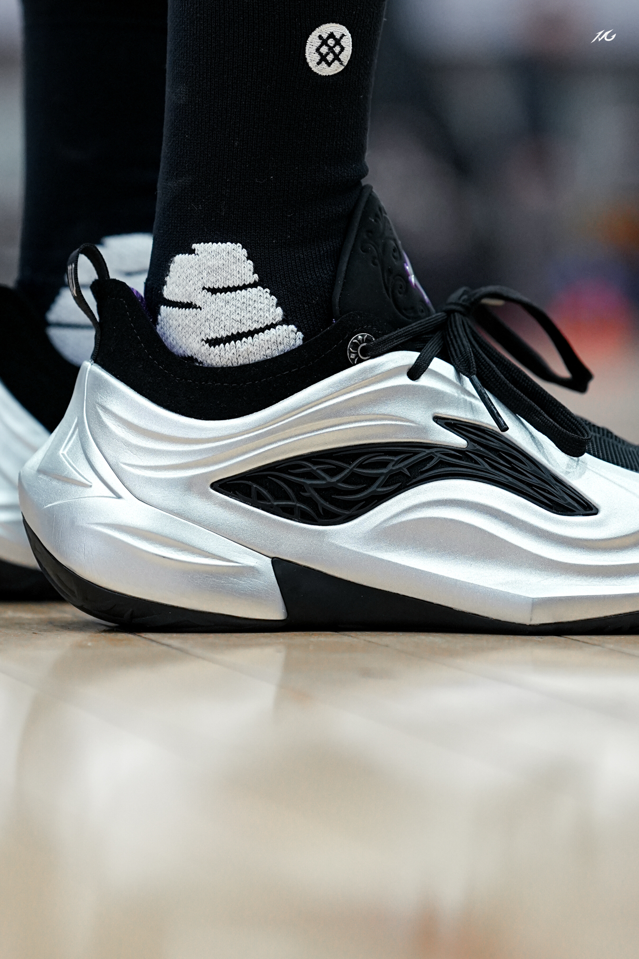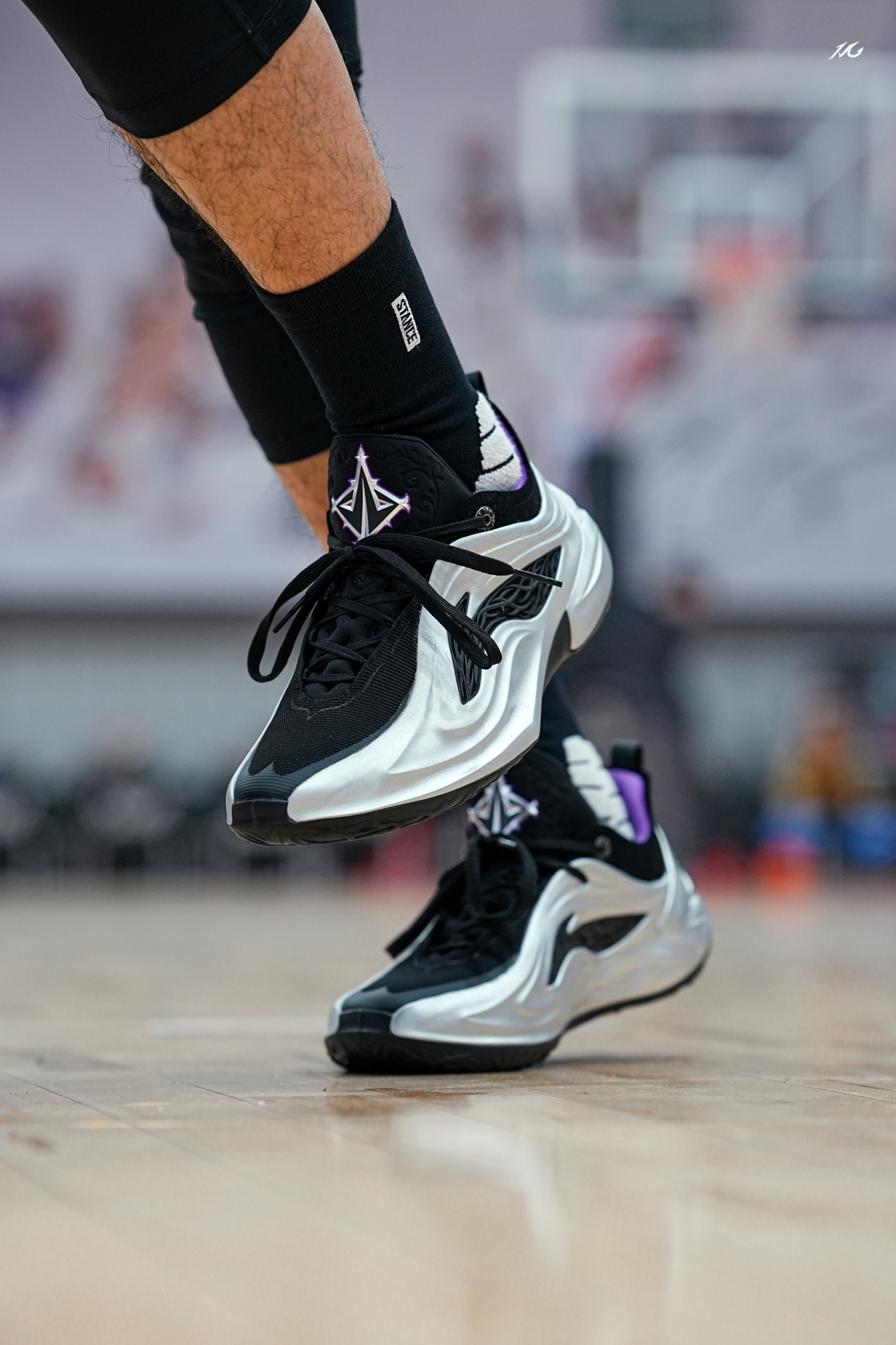 我觉得巴特勒第四代是李宁再次迈出新材料新造型新框架的一个尝试,外观上真的是把硬核之美发挥到了极致! 今天上脚的荆棘配色,银色框架搭配紫色内衬这对比度就有点绝了,上脚配个黑球袜真心无敌,科技感十足! 实战性能上它的定位注定不会有很广的兼容性,有点偏针对冲击型的锋线高强度局内使用,早期需要磨合,合脚以后的稳定性和冲击感会达到一个适合自己的平衡点! 配置上也是属于国产顶配的一双了,不知道兄弟们觉得自己能...
