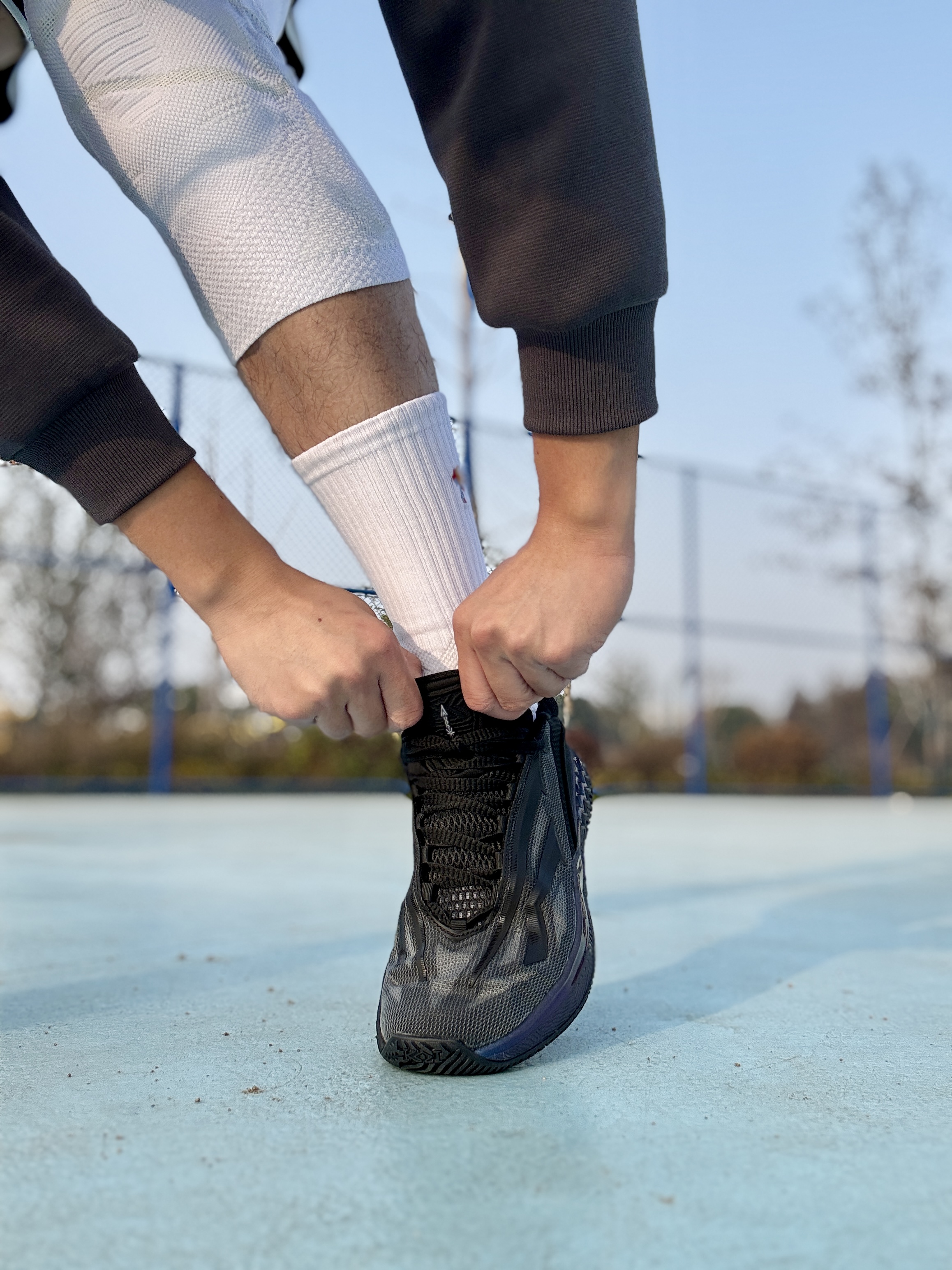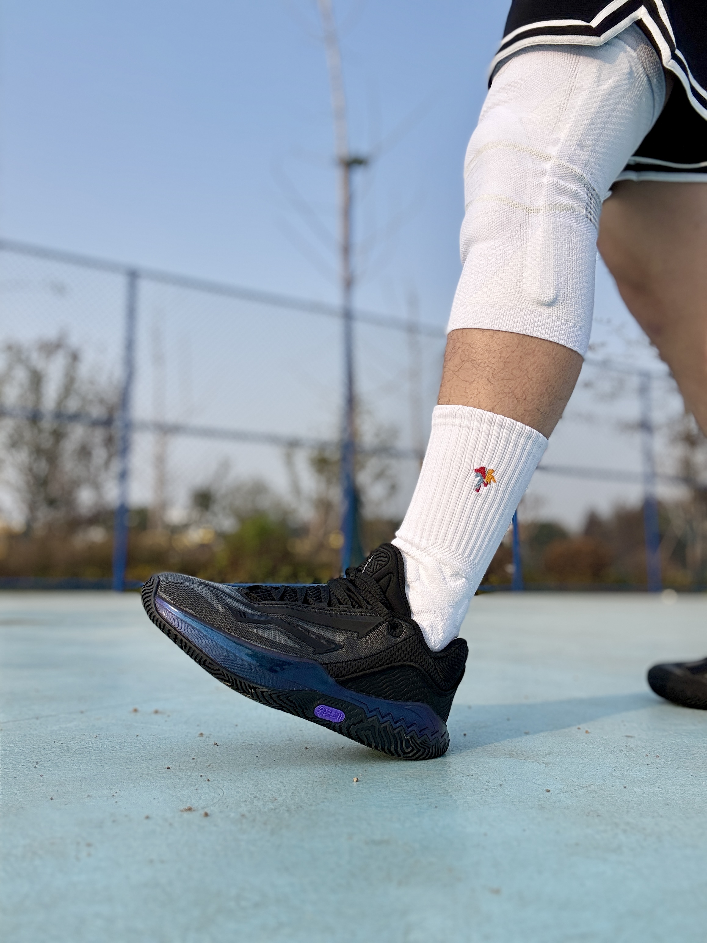 👀hello,大家好,这里是刀刀,今天打球穿的是 #安踏 欧文先驱二代黑武士配色,以及新入手的 #hidefxxx 的威尼斯限定款篮球袜🌈虽然是黑武士,但是镭射效果的TPU搭配上白色球袜,非常帅气⛹🏻♀️脚感属于薄底快靴,重心很低,包裹因为篮球袜还是非常充分的,袜子的防滑包裹也很足,属实是加成了,一起来看 @HideFxxx #篮球邪修好招 #实战球鞋天花板 #安踏欧文先驱2代 #欧...