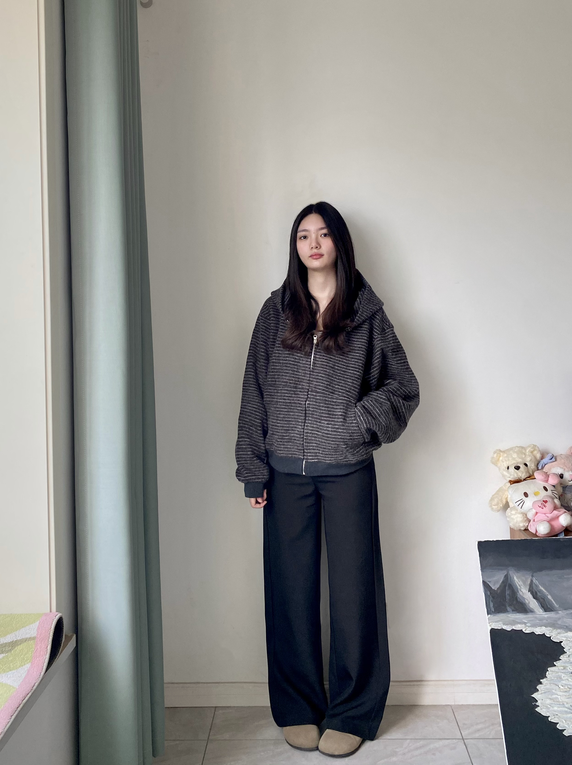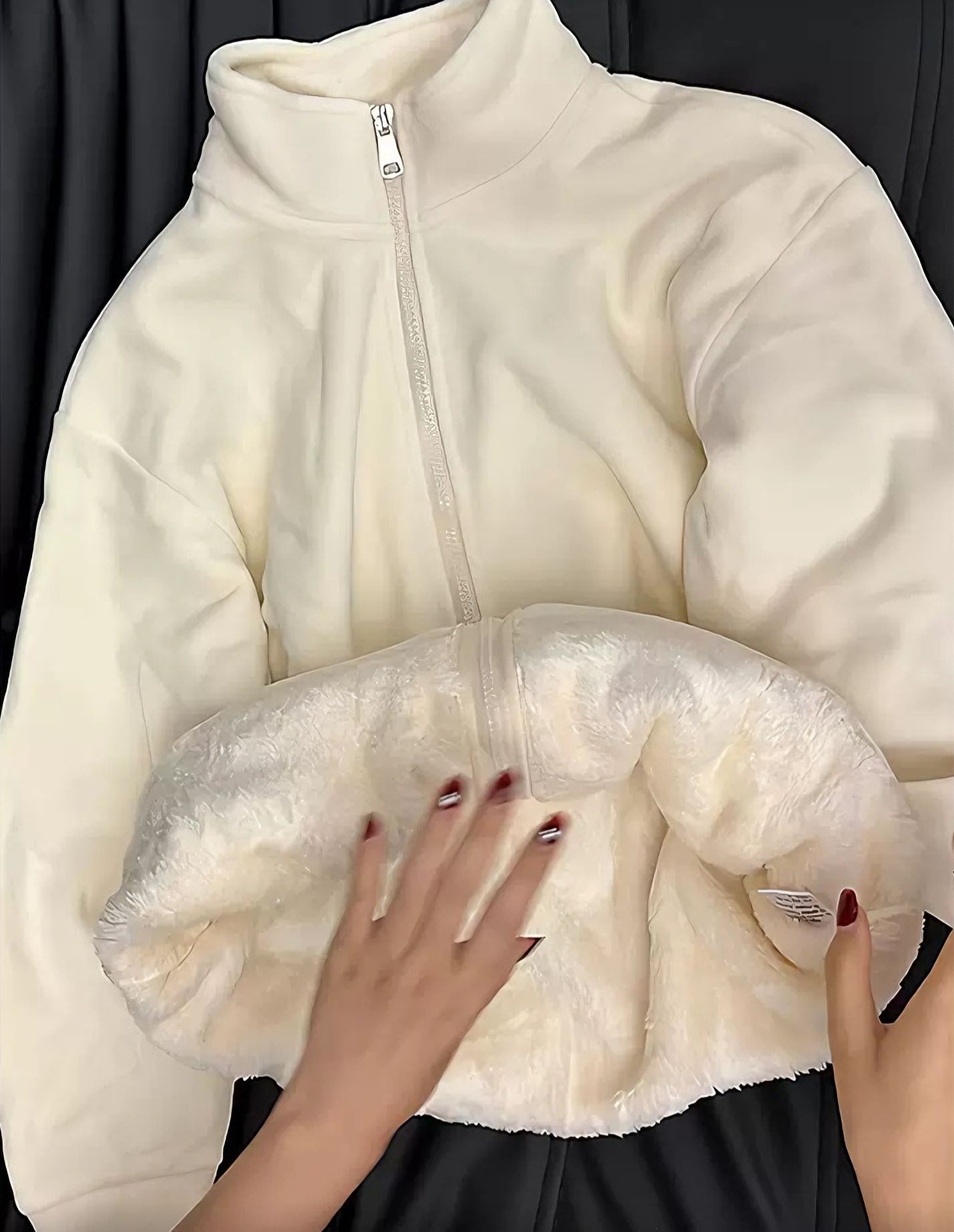 杏色摇粒绒外套?和秋天太搭啦!宽宽松松的版型很休闲显瘦哦!我166穿的是L码,刚刚好!外套很有质感软乎乎的,感觉冬天也嘎嘎抗冻!!正面和背面都有小设计不会很单调哦~搭配上白色直筒裤穿也嘎嘎板正~