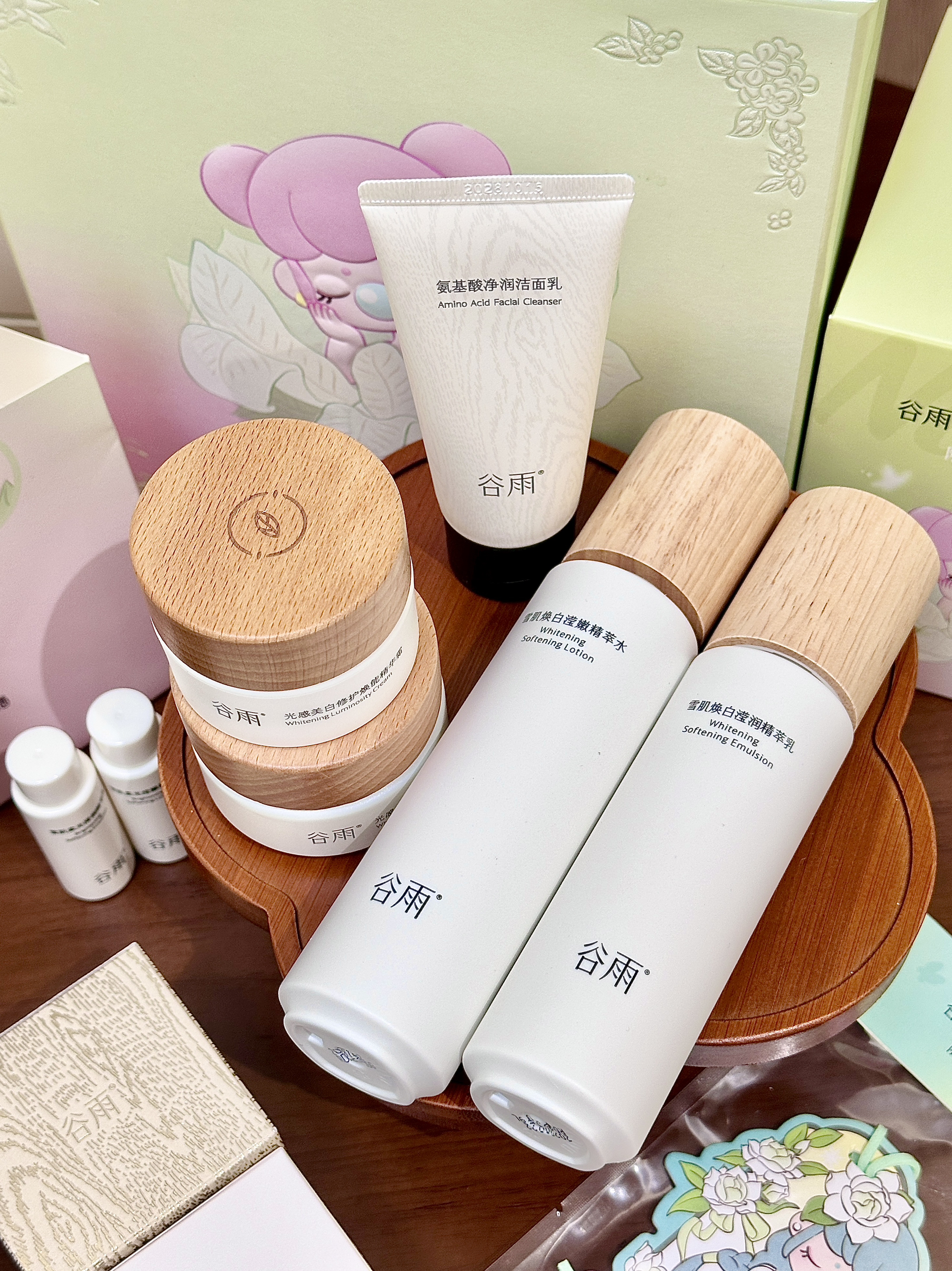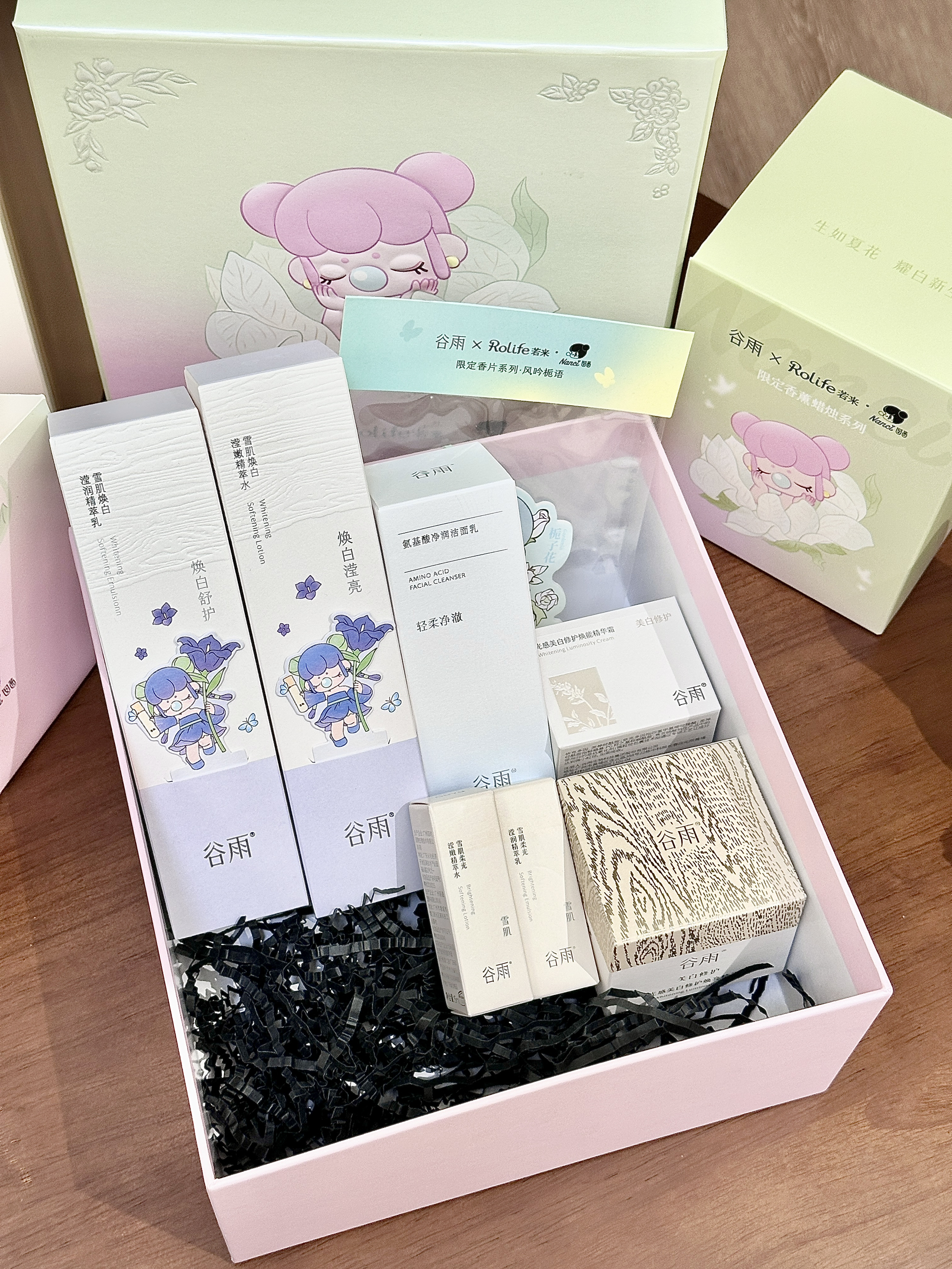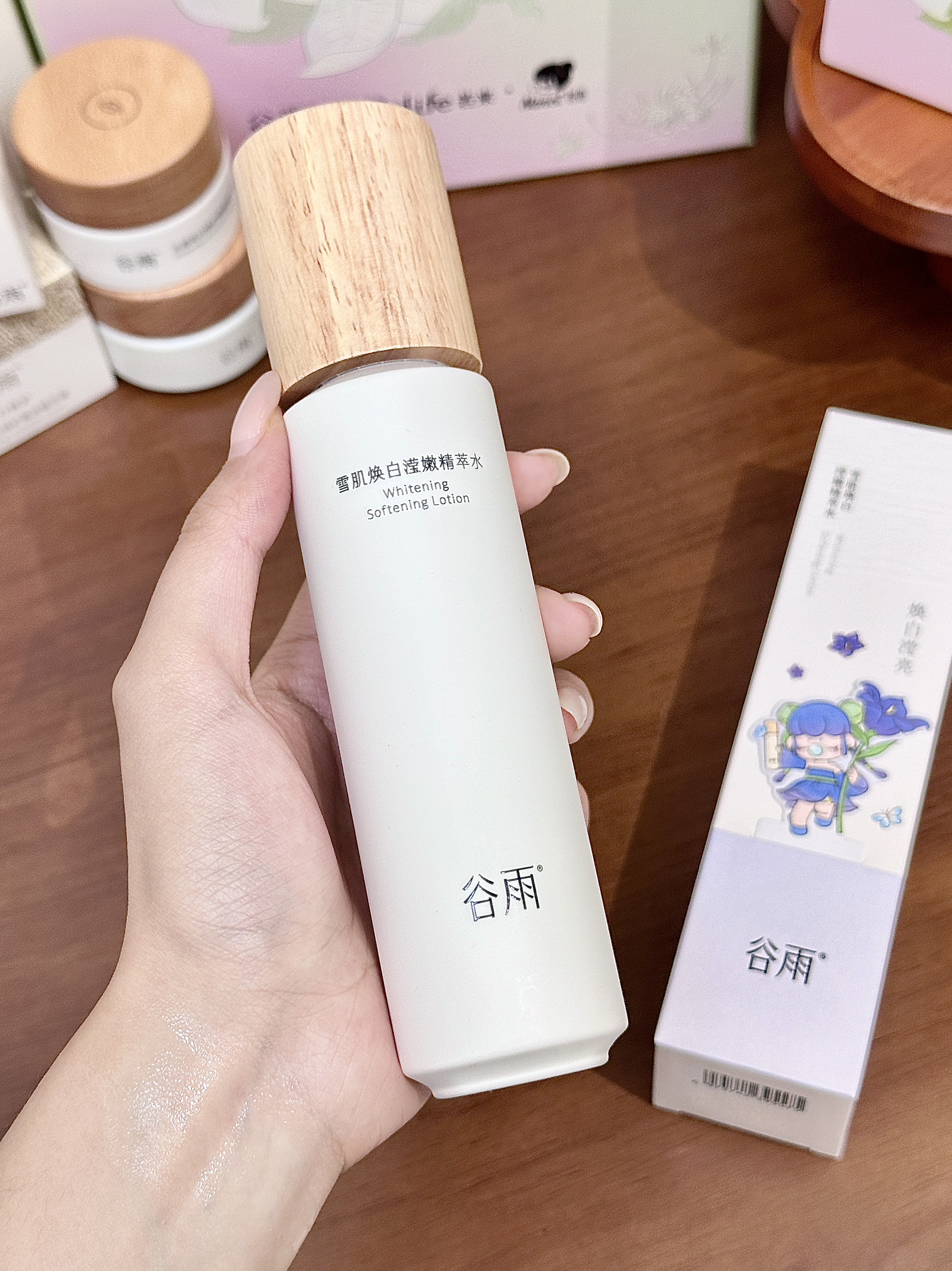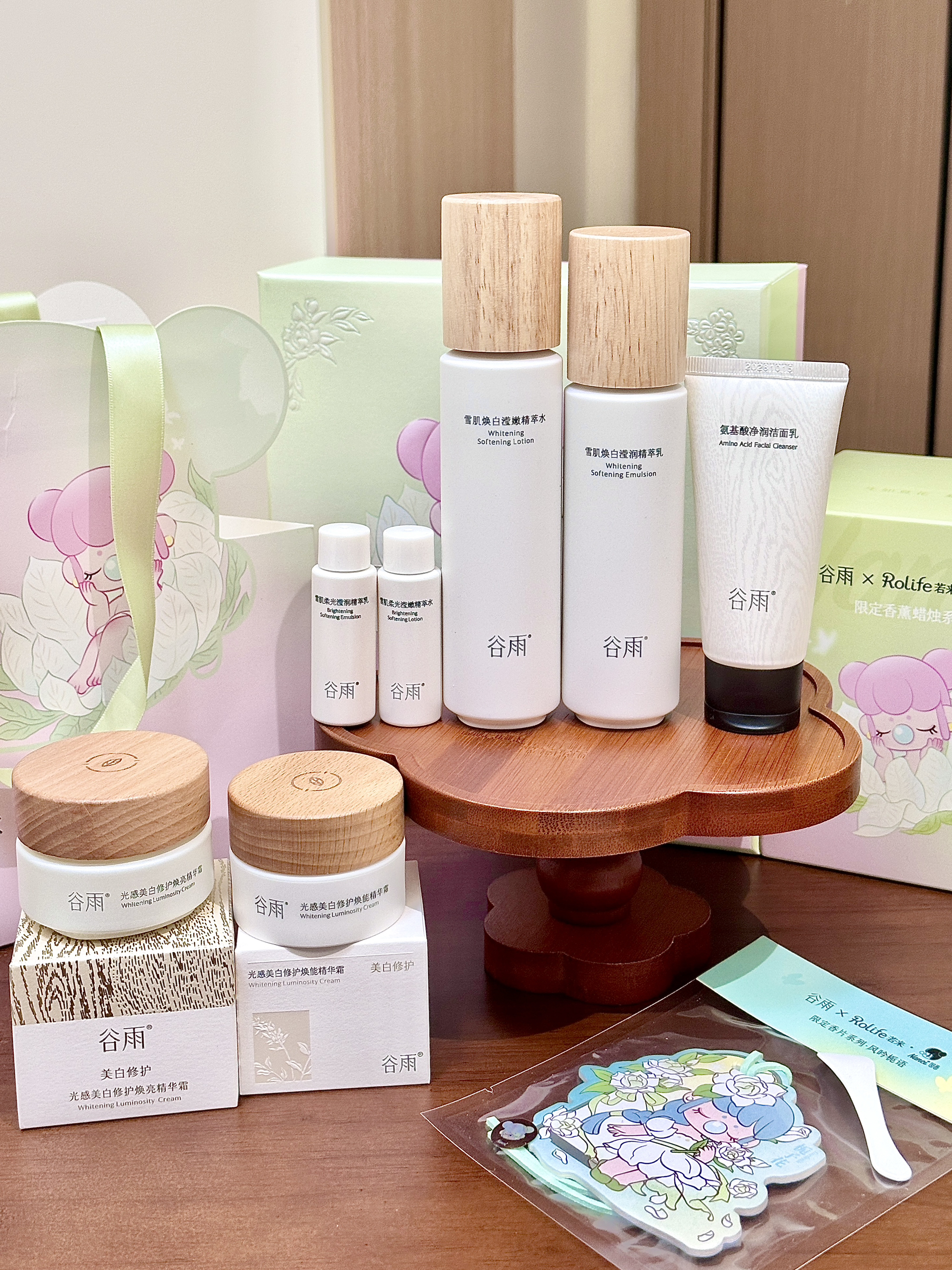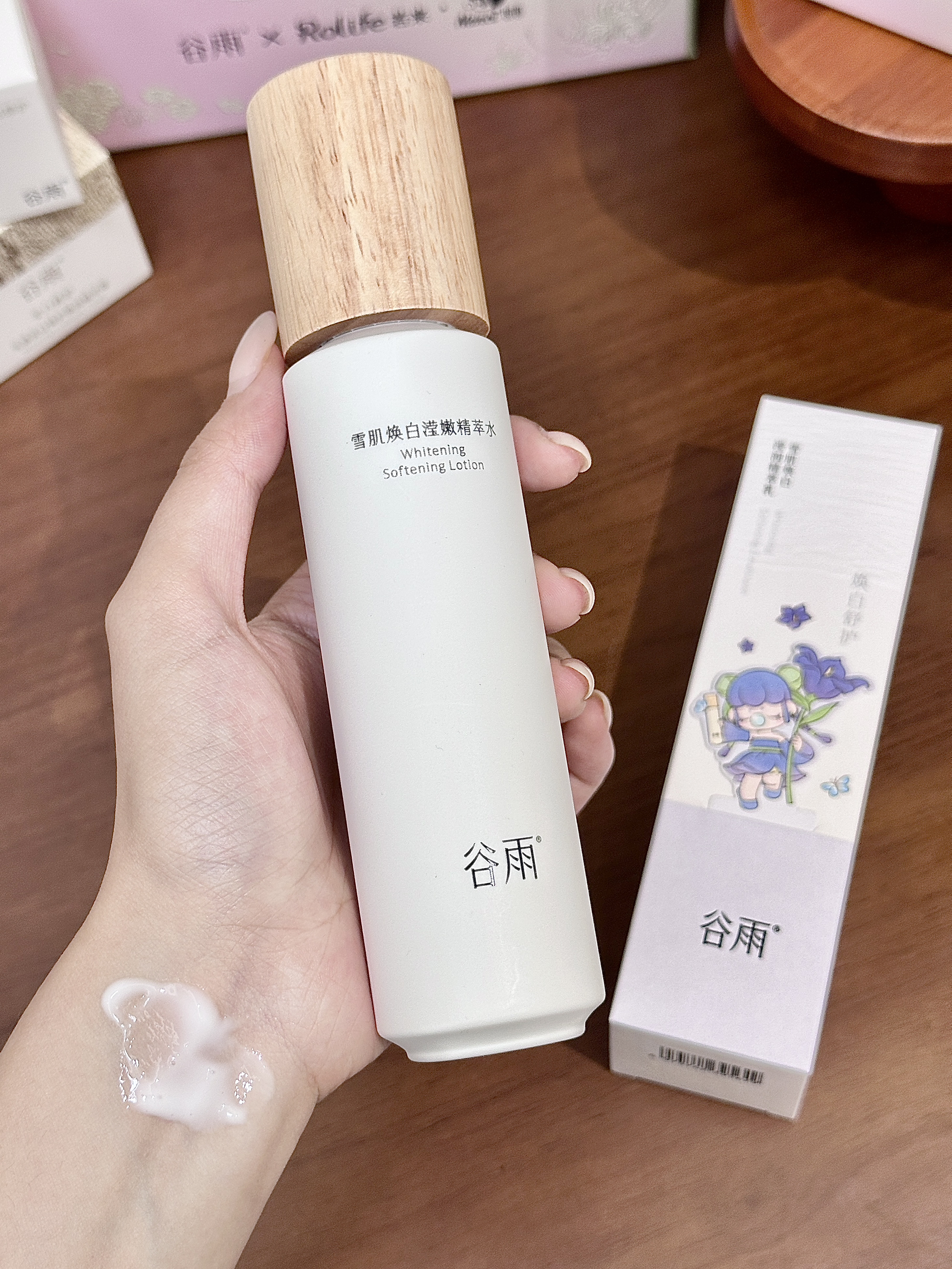 现在这个季节连空气都是干燥的🥲 我的脸蛋子摸上去和雪梨纸一样糙 还好提前准备了介个谷雨雪肌水乳套装 是和若来的联名礼盒耶~吼可爱! 雪肌水质地轻盈,我是混油皮用起来也蛮清爽 雪肌乳润而不油,晚上我一般会再厚涂一层奶罐面霜🥛这样第二天起来脸蛋子又润又透 保湿的同时还阔以去黄气 我觉得这套礼盒自己用或者当圣诞礼物都蛮合适的🎄