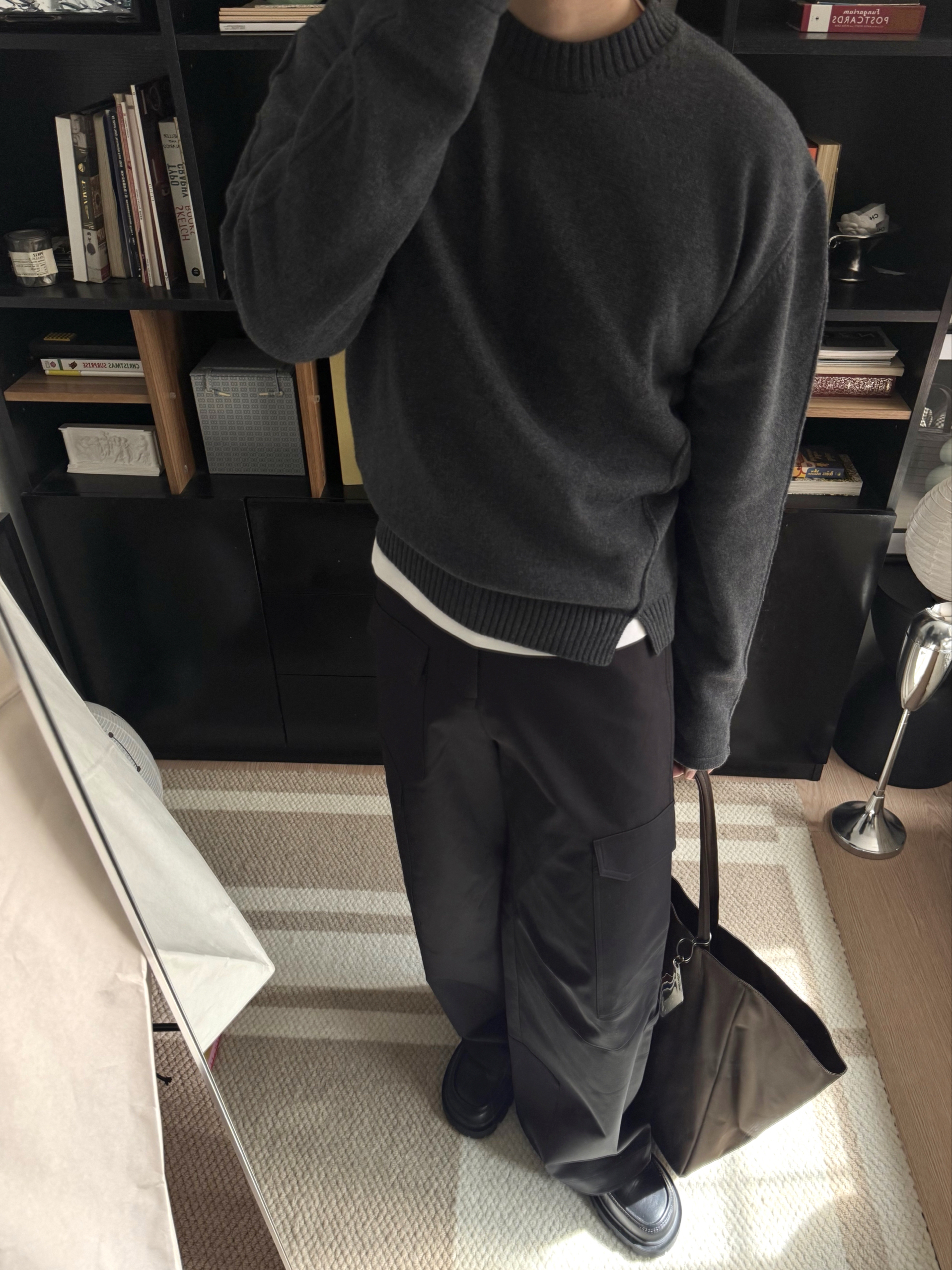 秋冬怎么能少得了一件灰色毛衣暖暖过冬。 一套不同层次的灰调穿搭